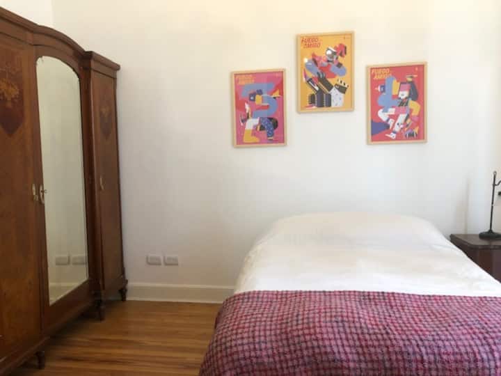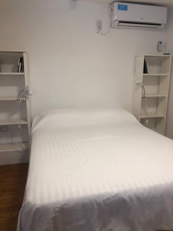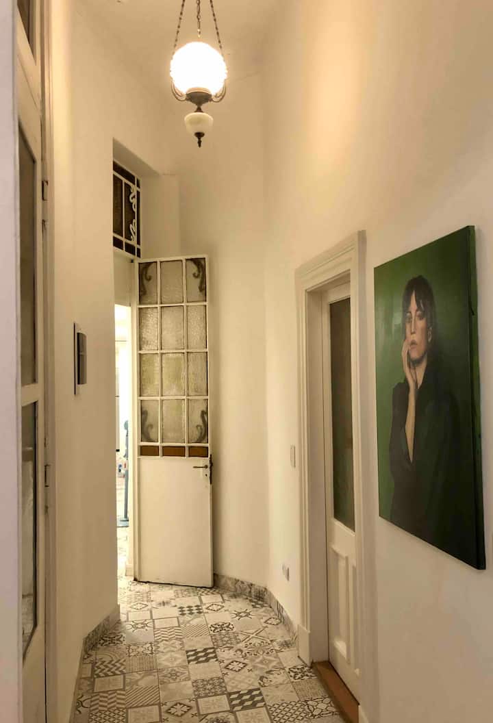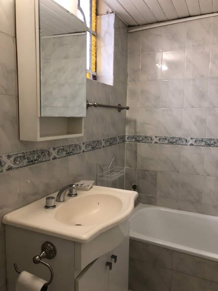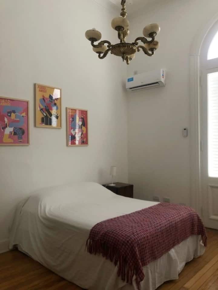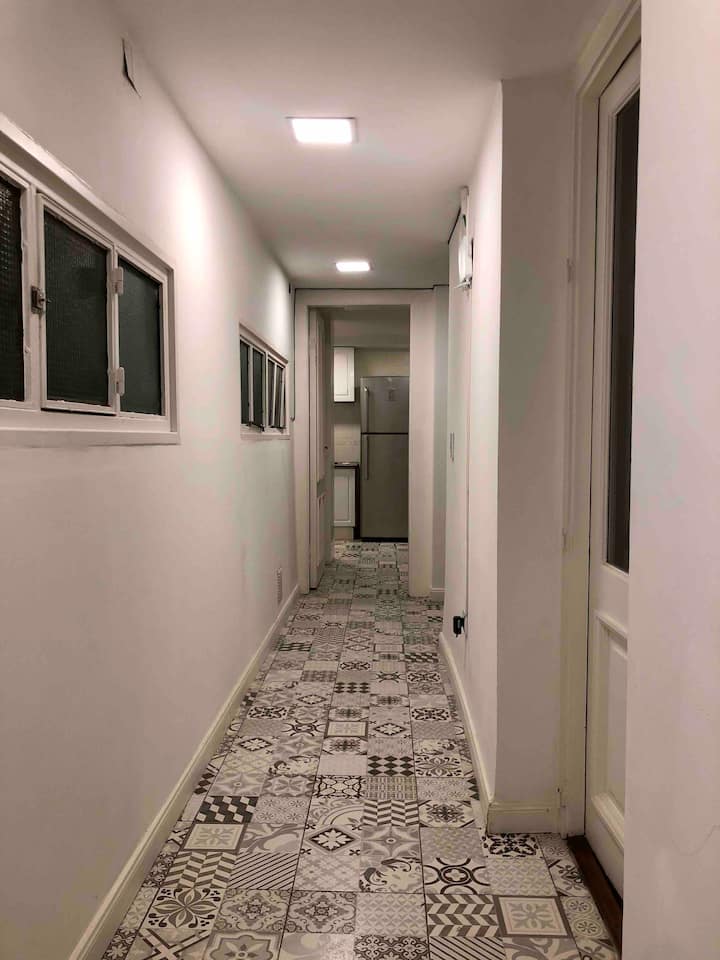Departamento renovado en un edificio antiguo. Tiene 4 dormitorios, comedor, living, cocina y 2 baños completos. La disposición incluye escaleras para acceder al 4° dormitorio. Está en el 3° piso, sin ascensor. Cuenta con aire acondicionado frío y calor en todas las habitaciones.