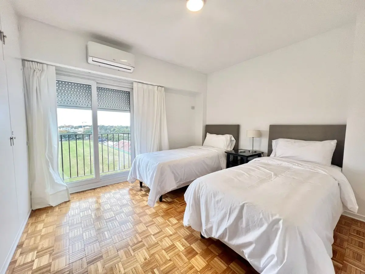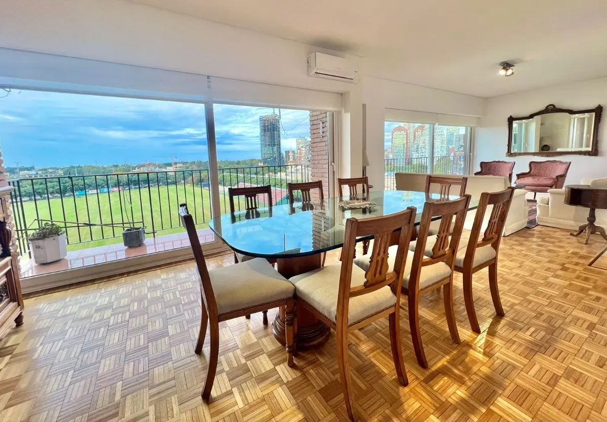 Departamento recientemente renovado de 4 dormitorios y 4,5 ambientes, con 2,5 baños. Se alquila completamente amoblado y equipado, con capacidad de hasta 8 personas. El alquiler incluye expensas del edificio, ABL, agua, servicio de internet wifi, electricidad y gas con tope de consumo. El edificio fue construido en los años 70 y la unidad fue renovada en gran parte, con ventanales y vista a la cancha de polo y jardines en Las Cañitas.