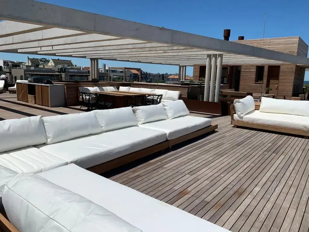 Departamento en San Nicolás con 4 dormitorios en suite, cocina y living comedor. Tiene una terraza de 200 m² con parrilla y vista al mar. El edificio cuenta con gimnasio, SUM, piscina climatizada, sauna y sala de masajes, además de cochera con servicio de lavado de auto, servicio de limpieza y conserje 24 h. Febrero: USD 25.000 por quincena.