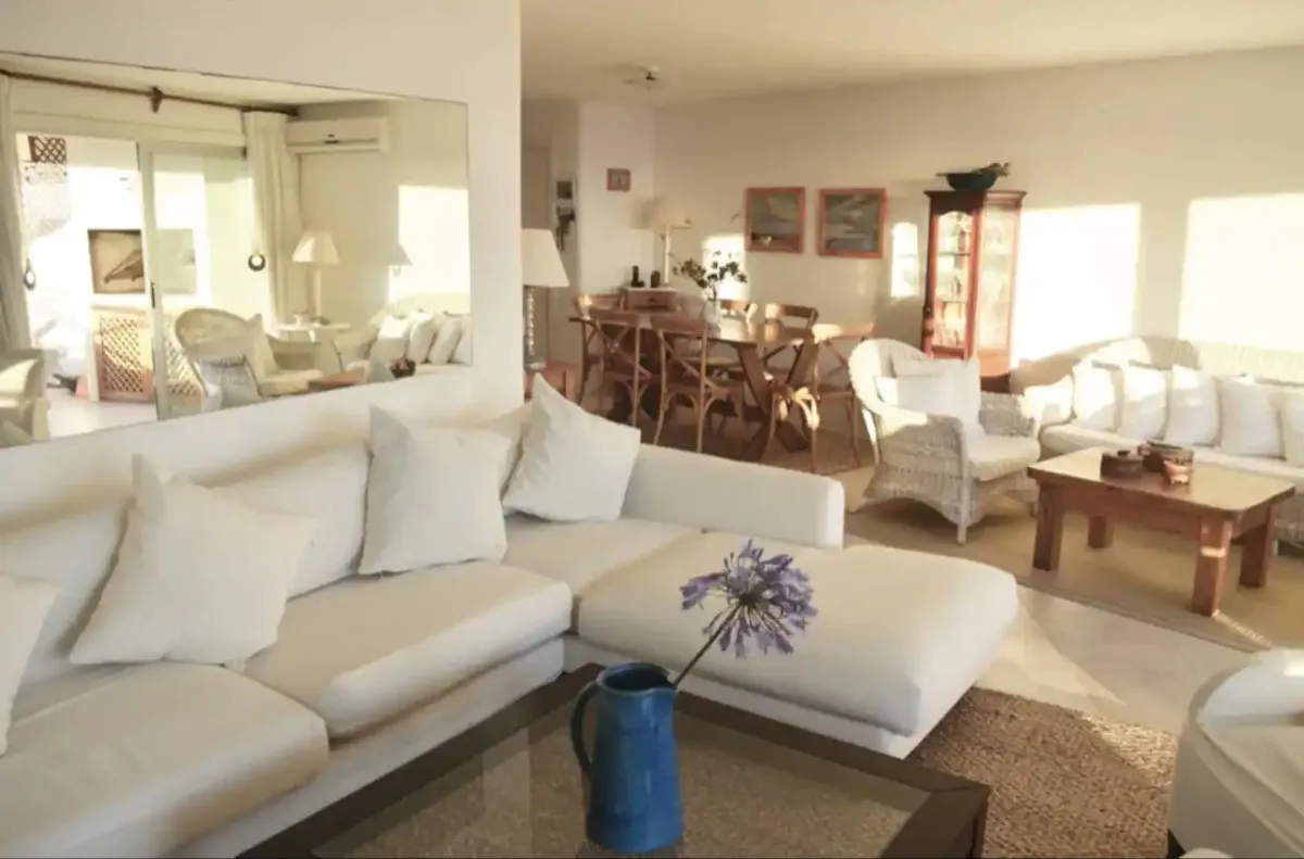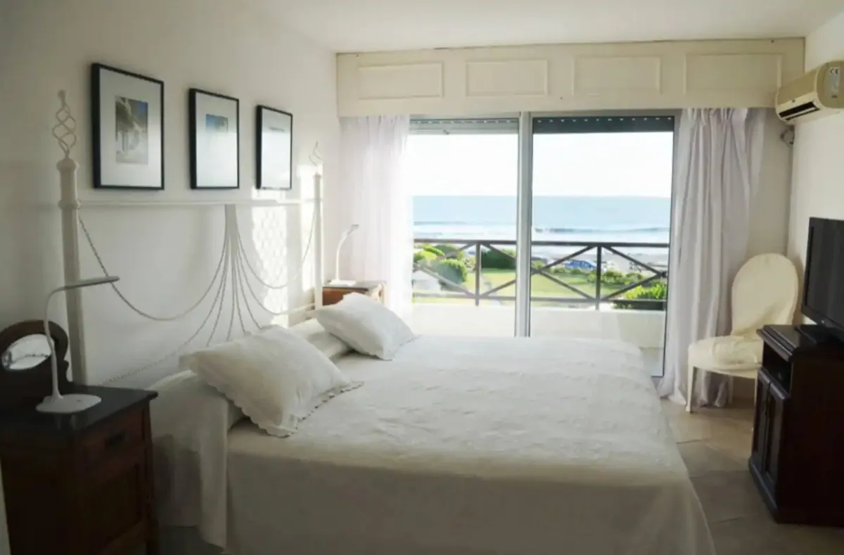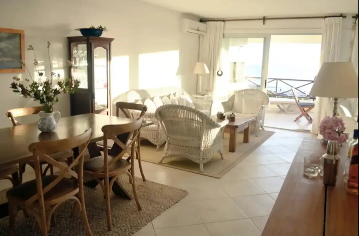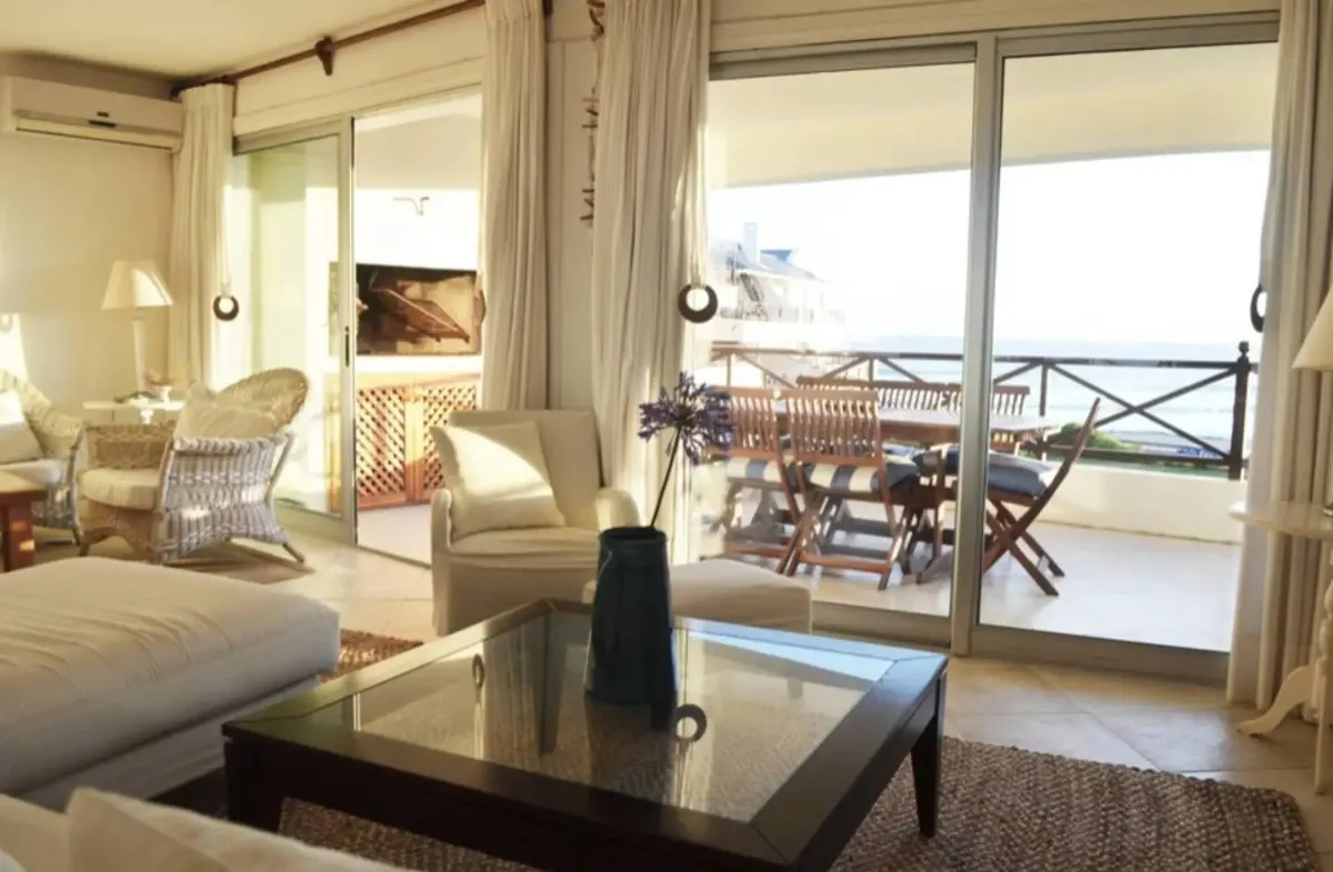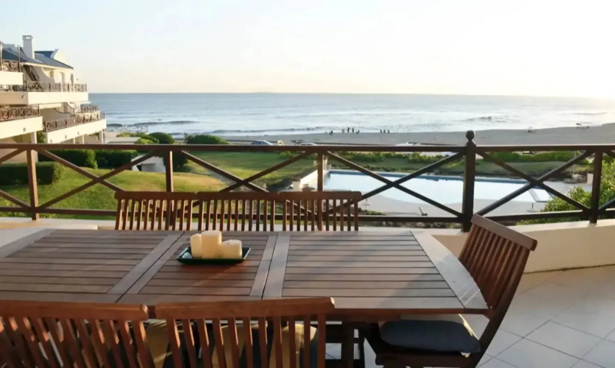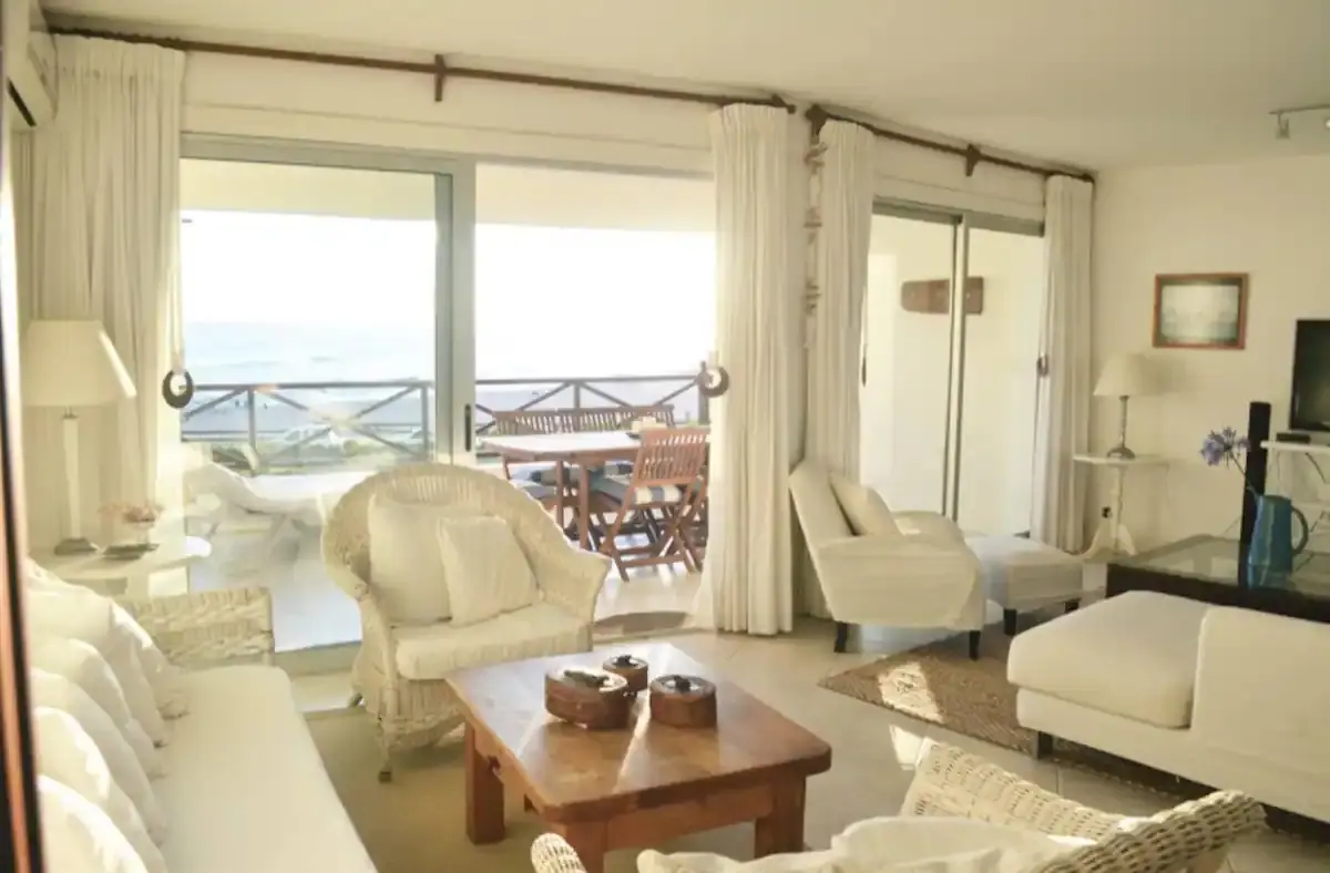 Departamento en Lomas de Manantiales, Punta del Este, en primera fila sobre Playa Bikini. Living doble con ventanales que conectan con la terraza, que cuenta con parrilla. Habitación principal en suite con balcón, con vista al atardecer. Incluye servicio de limpieza, estacionamiento privado y piscina compartida. Precios por quincena: 1Q enero USD 20.000, 2Q enero USD 17.500, 1Q febrero USD 14.000.