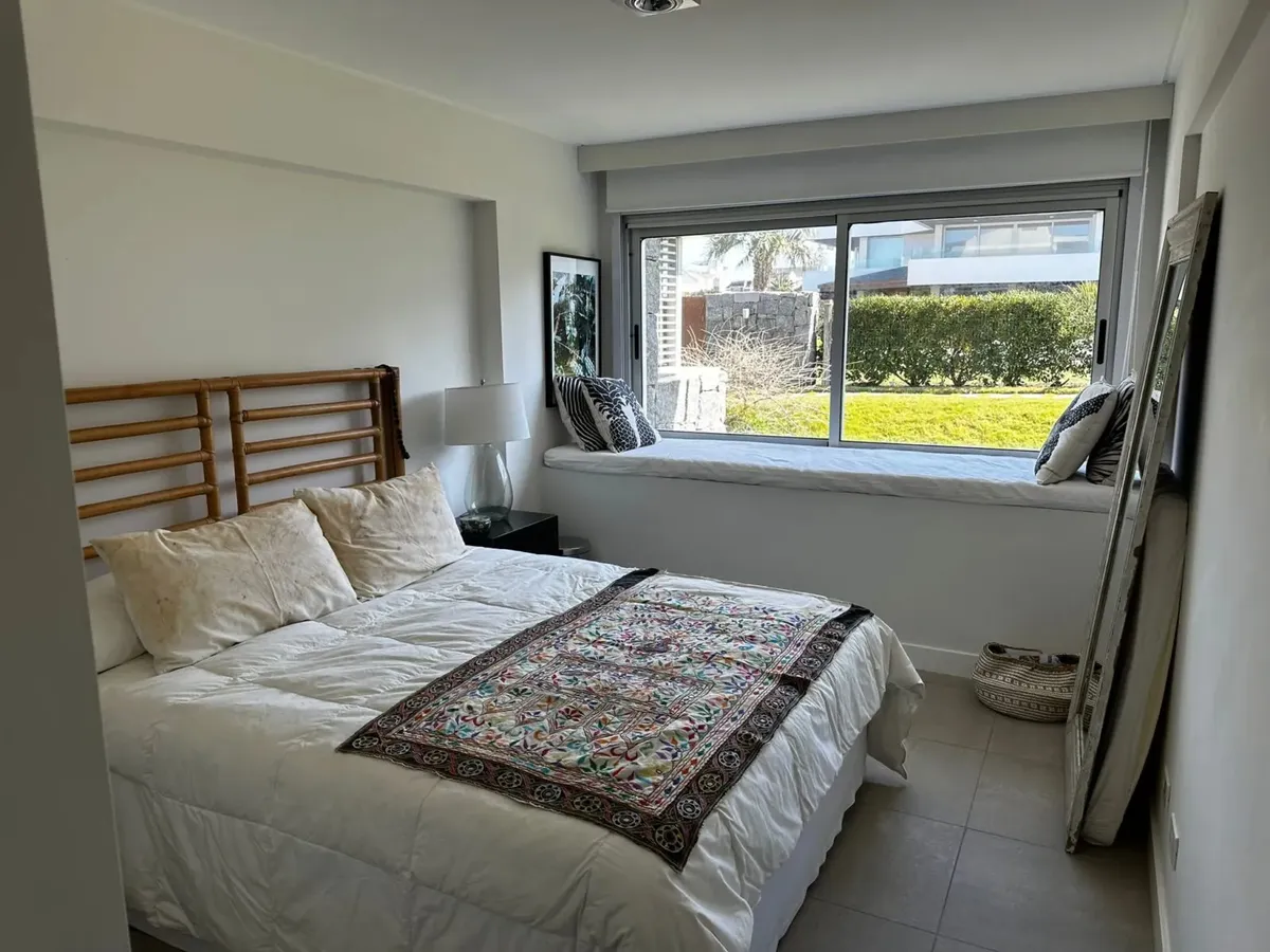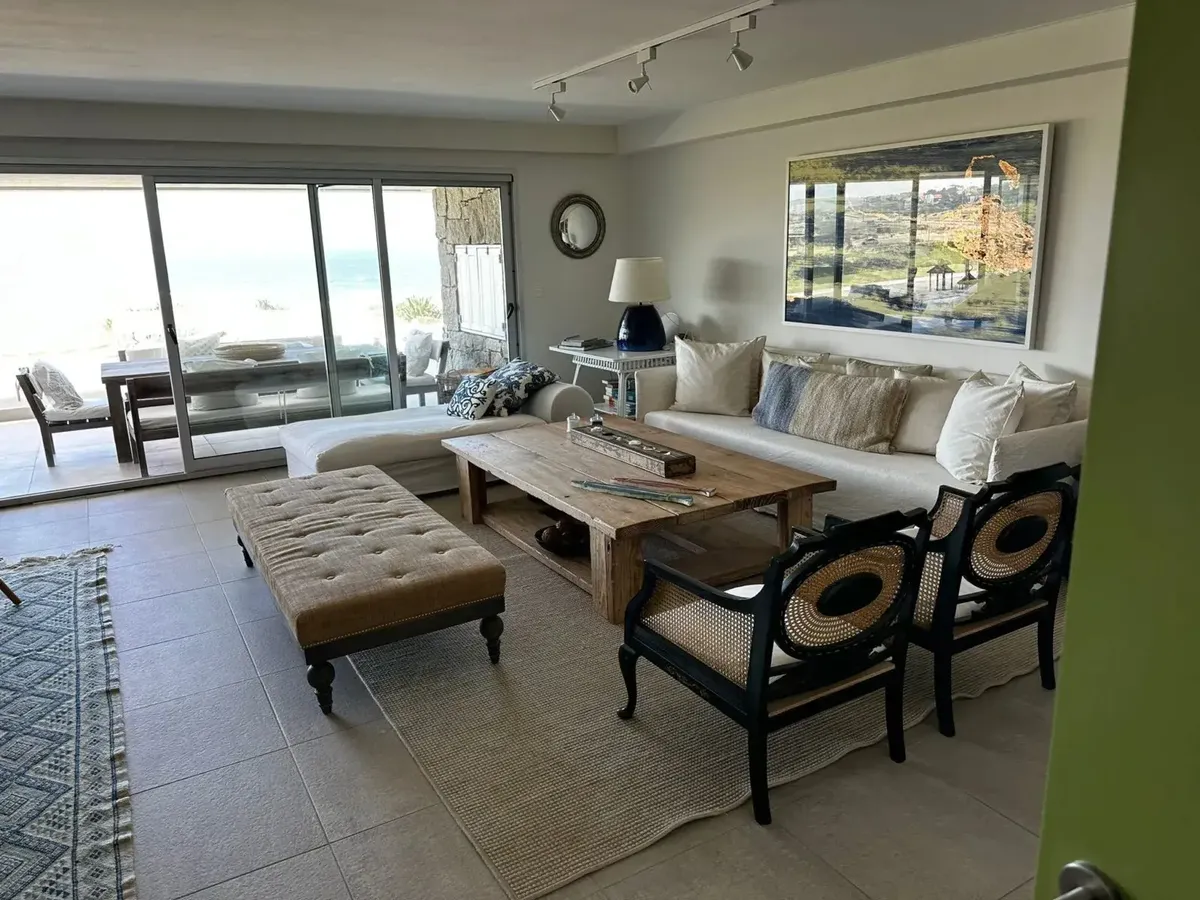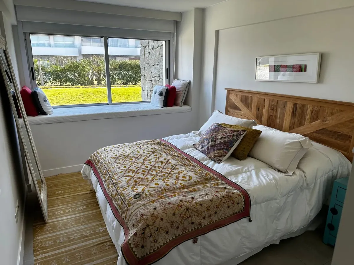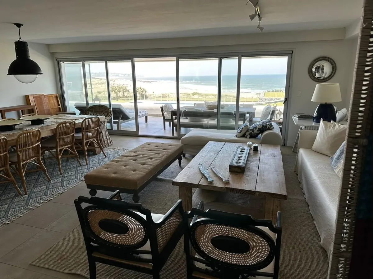 Departamento en Esturión de Montoya, primera línea al mar. Unidad 202 con 3 dormitorios en suite, cada uno con cama matrimonial, y balcón terraza. Cuenta con dependencia de servicio. Enero: USD 50.000 por todo el mes.