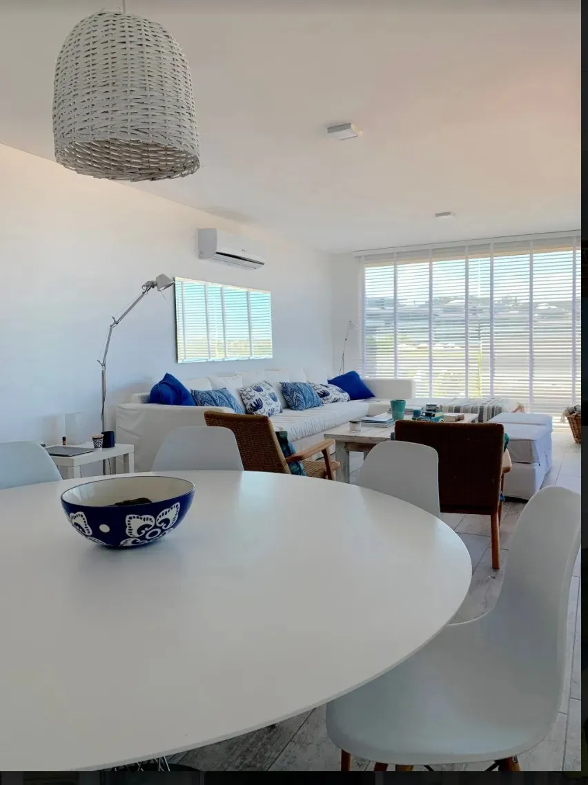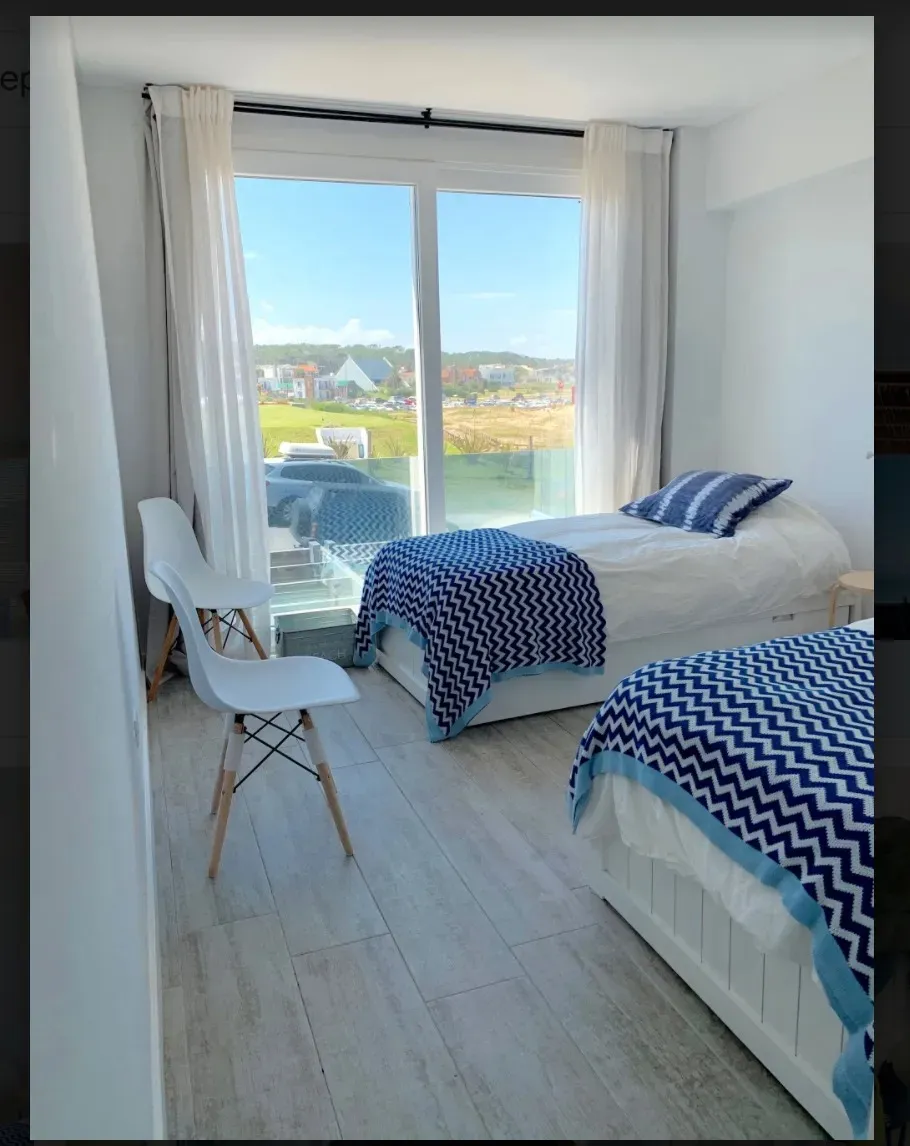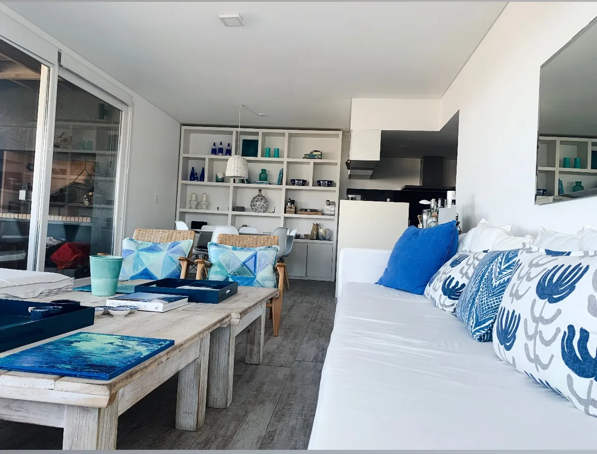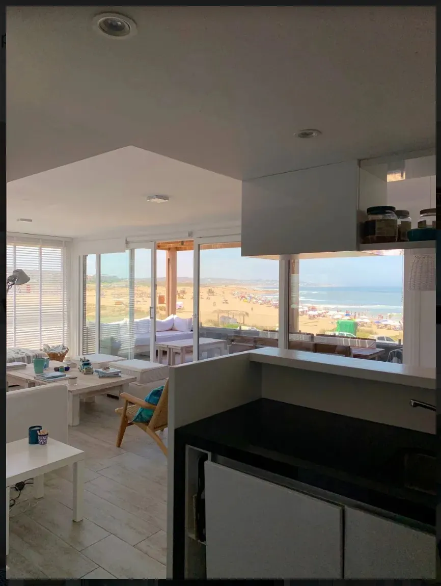 Se alquilan juntos dos departamentos independientes en Palcos del Mar, Montoya, a pasos del mar. El departamento principal tiene 145 m² y dispone de 3 dormitorios (1 en suite y 2 que comparten 1 baño), living, cocina comedor integrada y terraza de 24 m² con parrillero y vista al mar. El departamento secundario, ubicado un piso más abajo, tiene 25 m², 1 dormitorio y 1 baño, con independencia total. Precios por quincena: 1Q de enero USD 35.000; 2Q de enero USD 20.000.