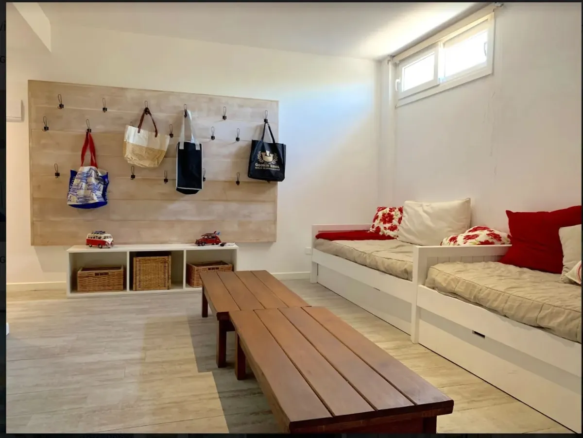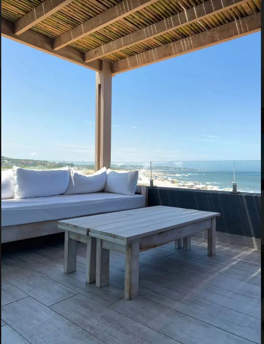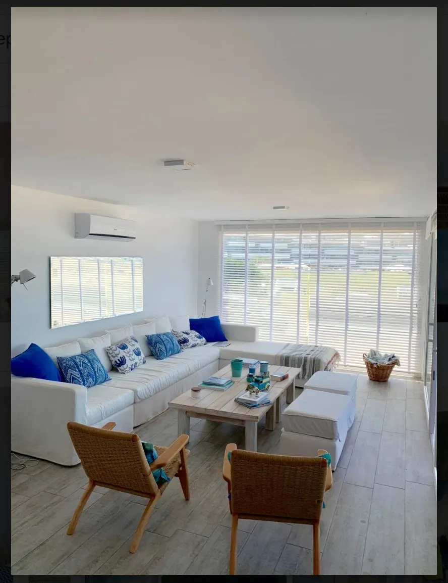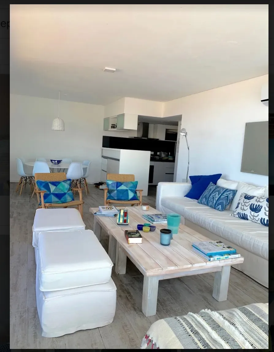 Se alquilan juntos dos departamentos independientes en Palcos del Mar, Montoya, a pasos del mar. El departamento principal tiene 145 m² y dispone de 3 dormitorios (1 en suite y 2 que comparten 1 baño), living, cocina comedor integrada y terraza de 24 m² con parrillero y vista al mar. El departamento secundario, ubicado un piso más abajo, tiene 25 m², 1 dormitorio y 1 baño, con independencia total. Precios por quincena: 1Q de enero USD 35.000; 2Q de enero USD 20.000.