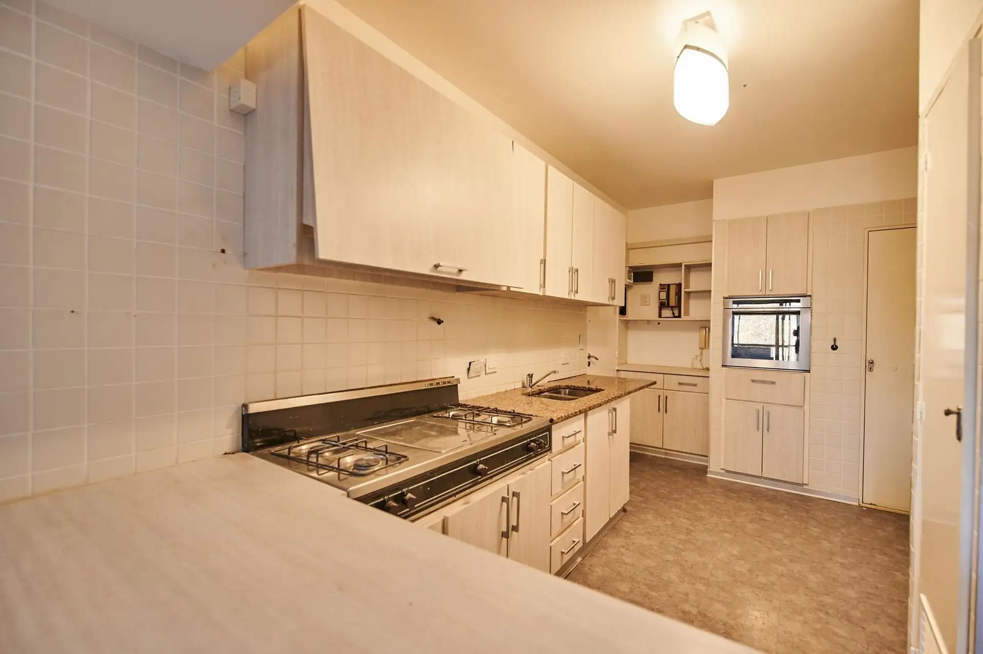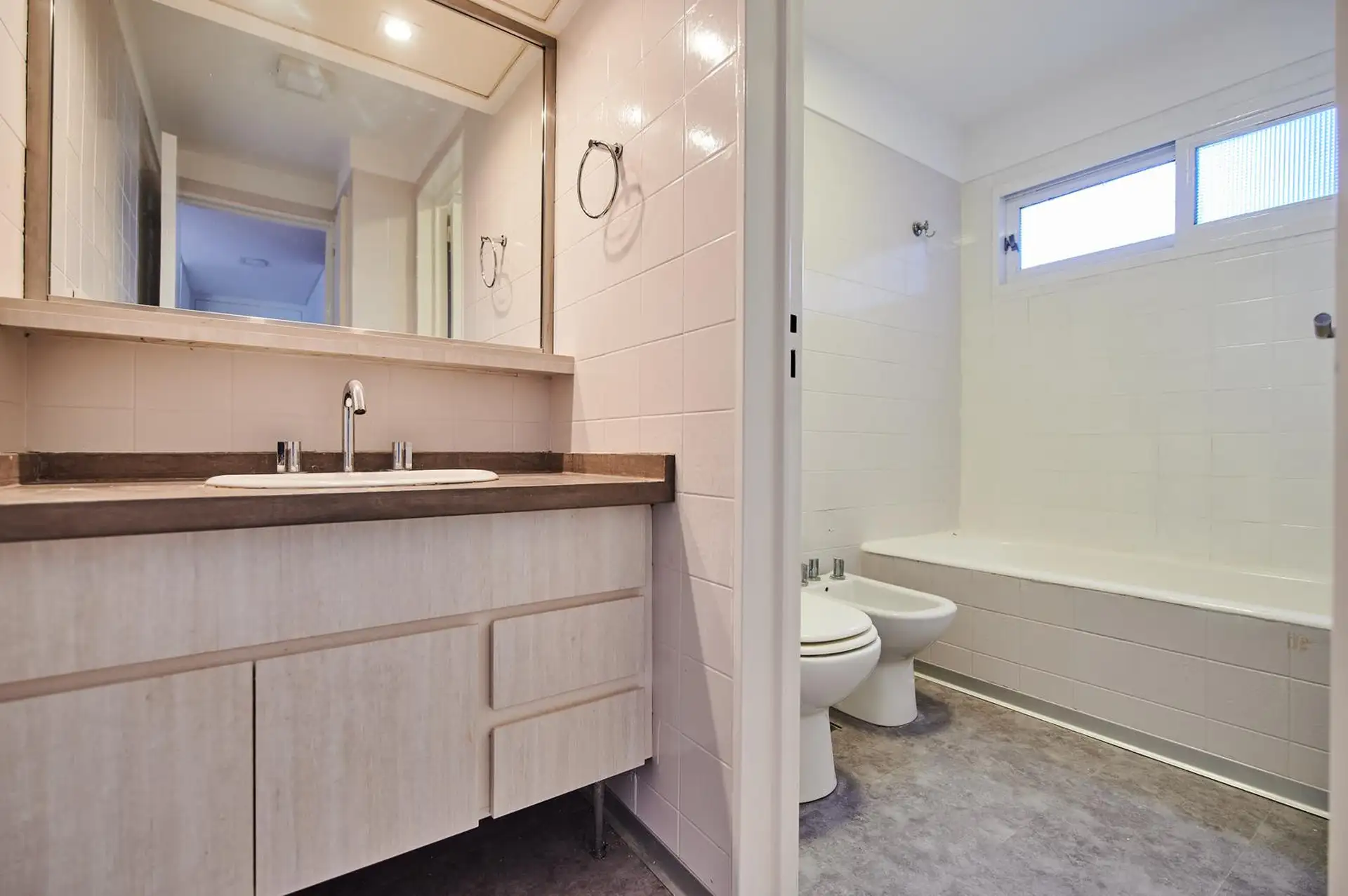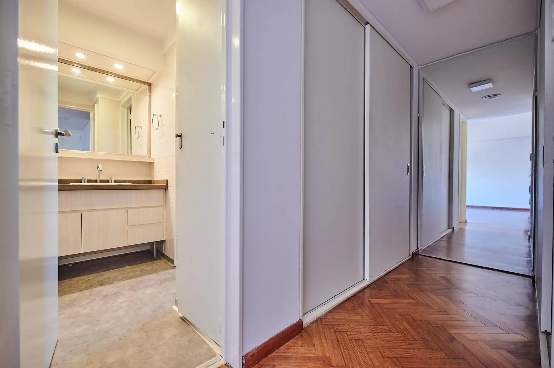 Semi-piso de 205 m² en Olivos, Quinta Presidencial, en el 4° piso de la torre Cinque, sobre Av. del Libertador al 1900. Cuenta con 2 cocheras cubiertas y ascensor. Dispone de gran living y comedor en L de 70 m², doble circulación y living íntimo o playroom; pisos de madera tarugada. Tiene cocina con muebles bajo y sobre mesada y comedor diario con balcón cerrado. El departamento cuenta con 3 dormitorios, el principal en suite con vestidor, sauna y 2 baños, además de toilette de recepción y depen