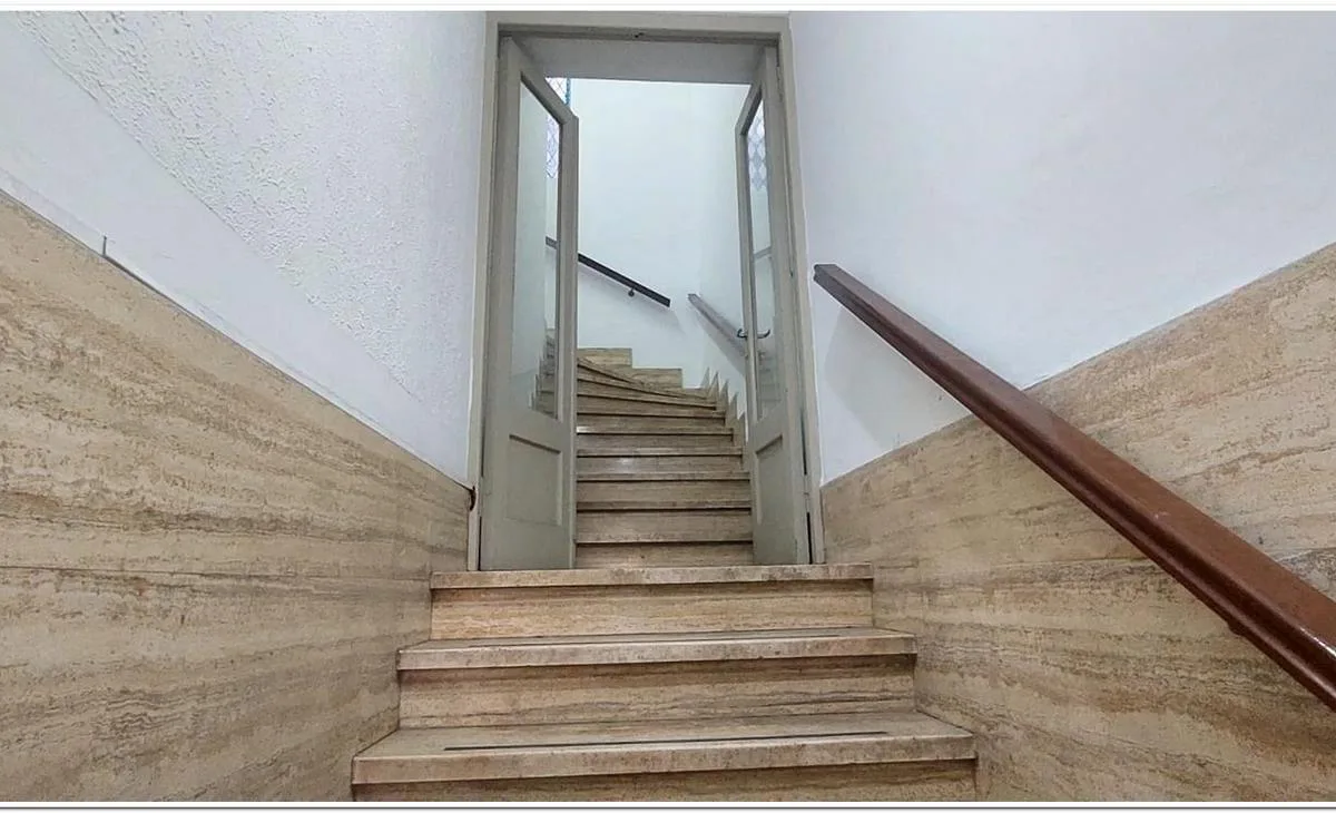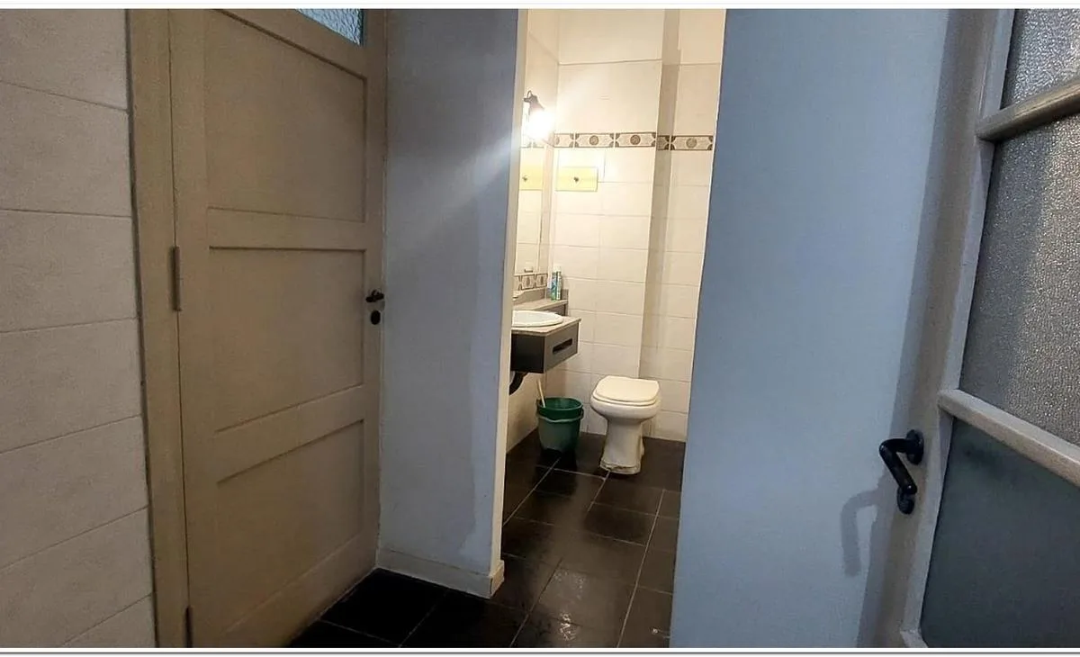 Departamento de 5 ambientes de 1º piso por escalera, al frente. Ingreso a hall de recepción y 4 despachos o consultorios, 2 al frente y 2 contrafrente, en la misma planta. Cocina separada con ventilación a patio interno y patio semicu-bierto, además de 1 baño con revestimientos cerámicos. Segundo piso con espacio de fichero o guardado y terraza con cuarto de servicios. Se encuentra cerca de transportes públicos (Subte B, Ferrocarril Mitre y colectivos) y está destinado a uso comercial o profesio