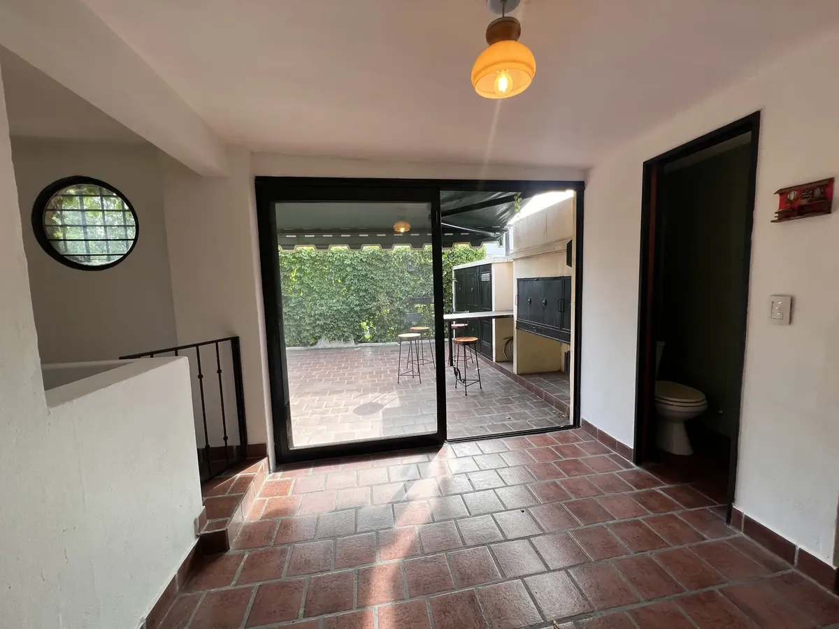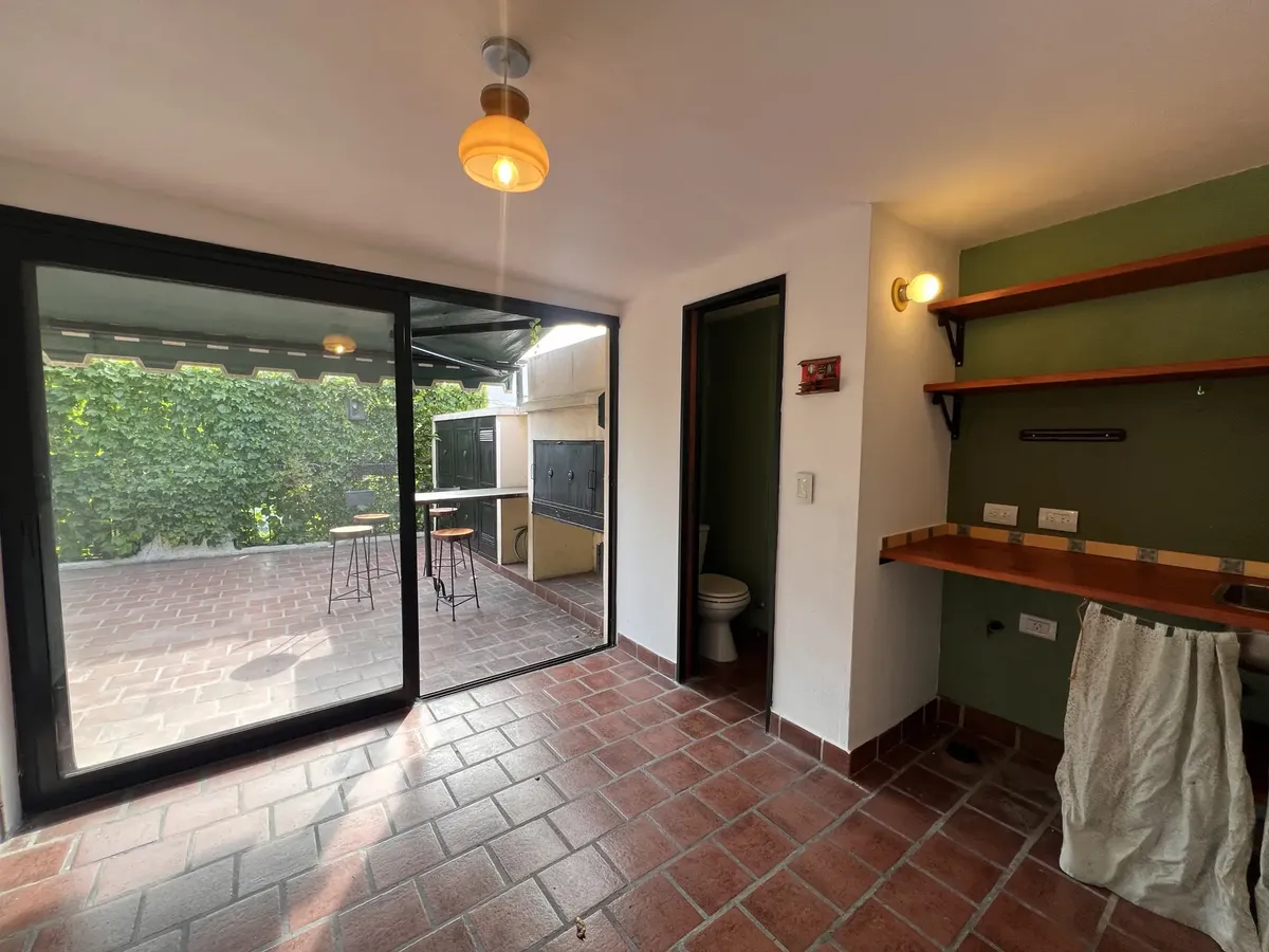 Casa en alquiler en Villa Urquiza, Estación Drago, con 120 m² cubiertos y 40 m² descubiertos entre patio y terraza. Tiene 4 habitaciones, 3 baños y 5 ambientes distribuidos en 3 plantas. En planta baja: living comedor, cocina, patio con parrilla, baño y una habitación tipo estudio o consultorio. En primer piso: 3 habitaciones (2 al frente y 1 interna) y baño completo con bañadera; aire acondicionado en 2 habitaciones y calefacción por estufa a gas en las 3. En planta superior: 1 ambiente para qu