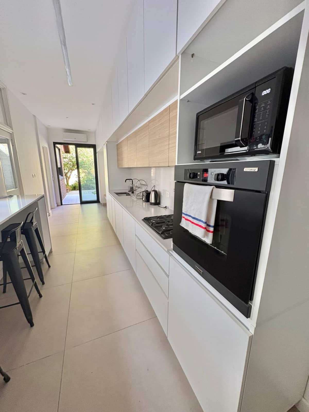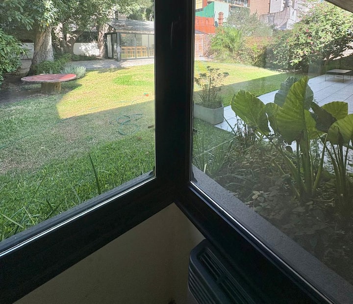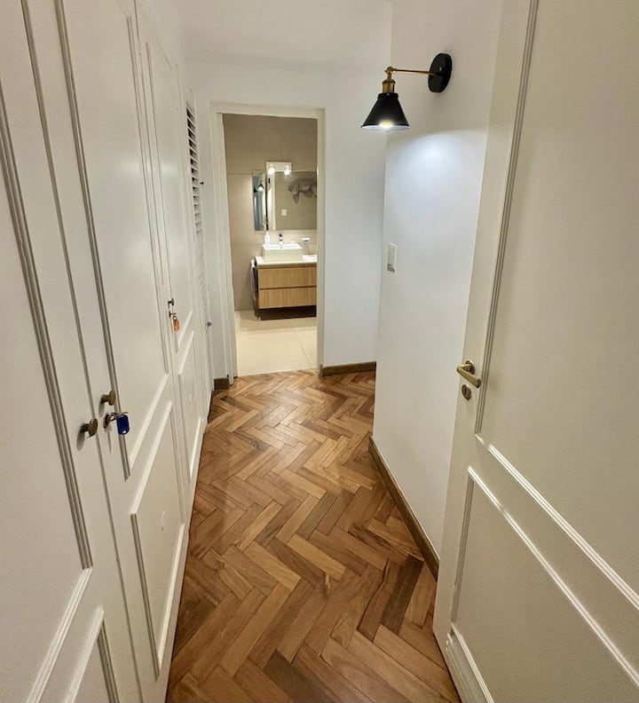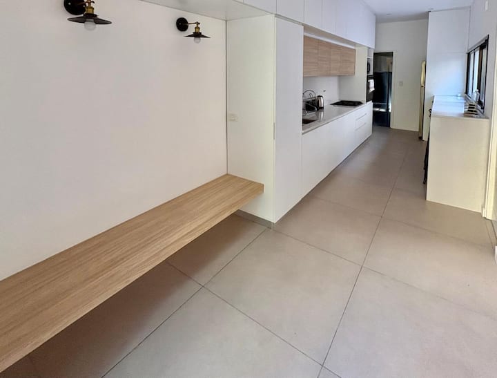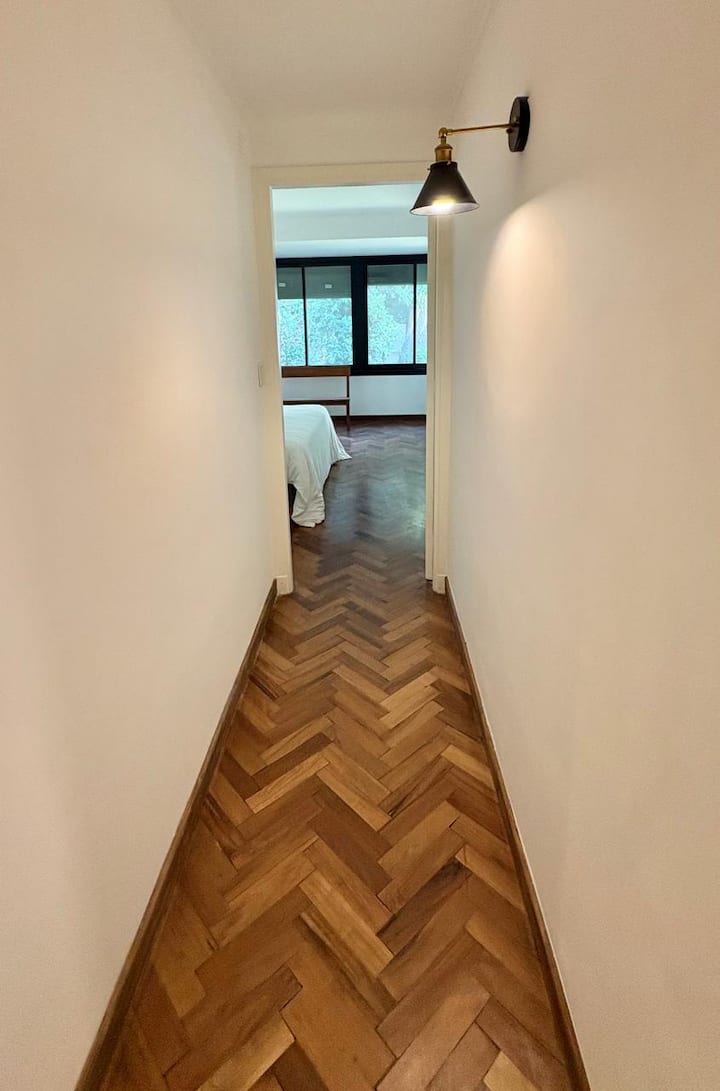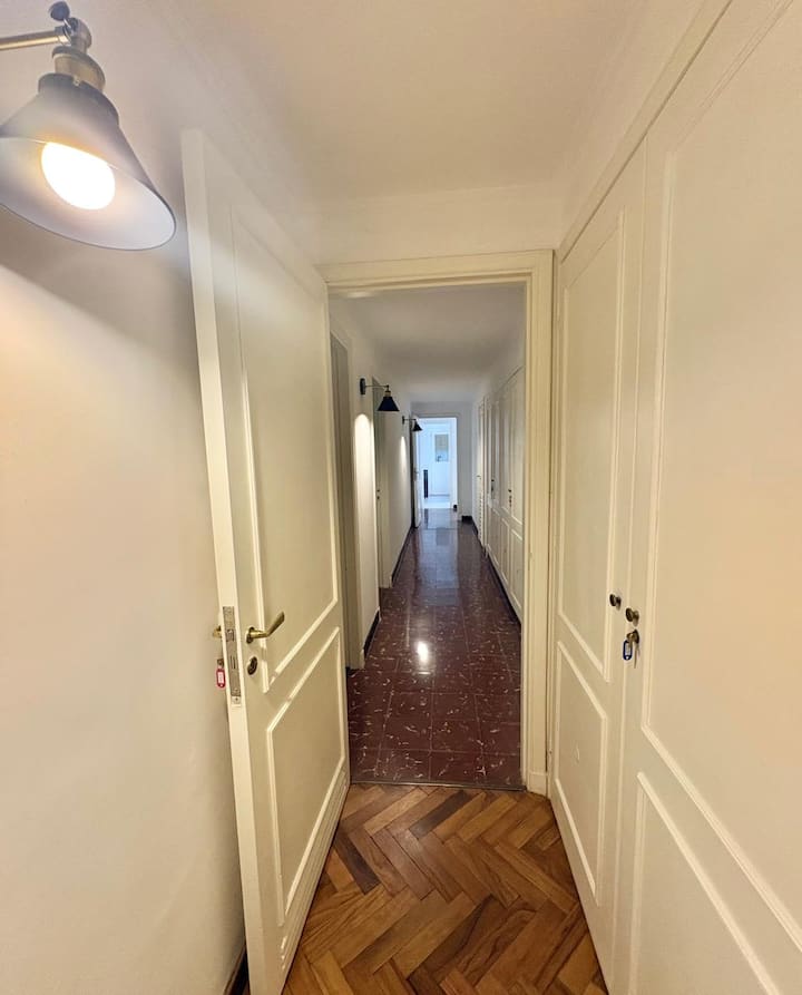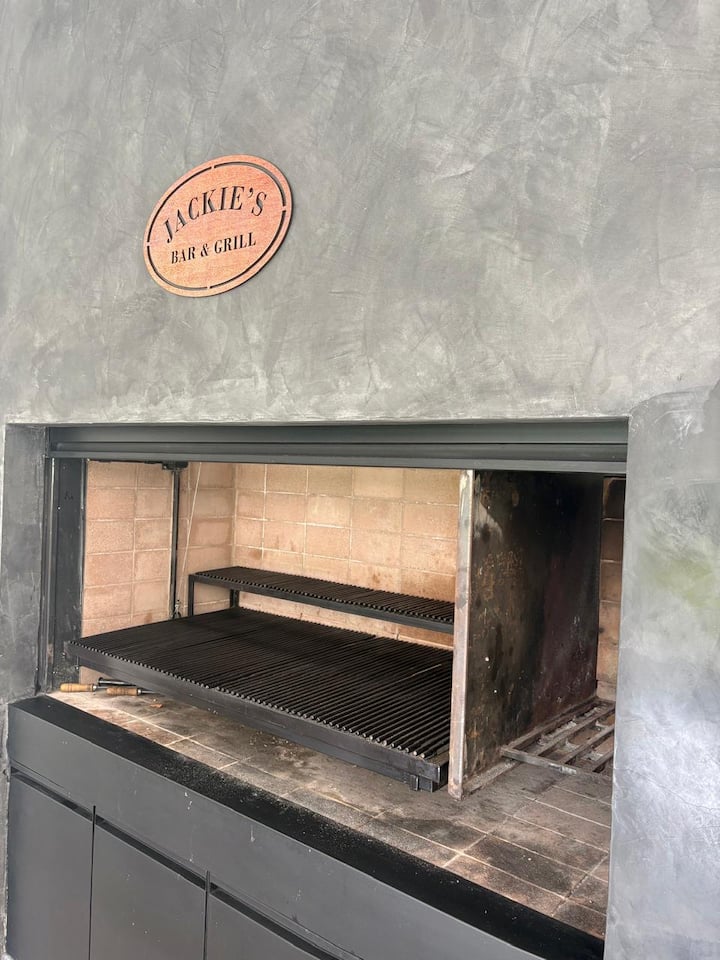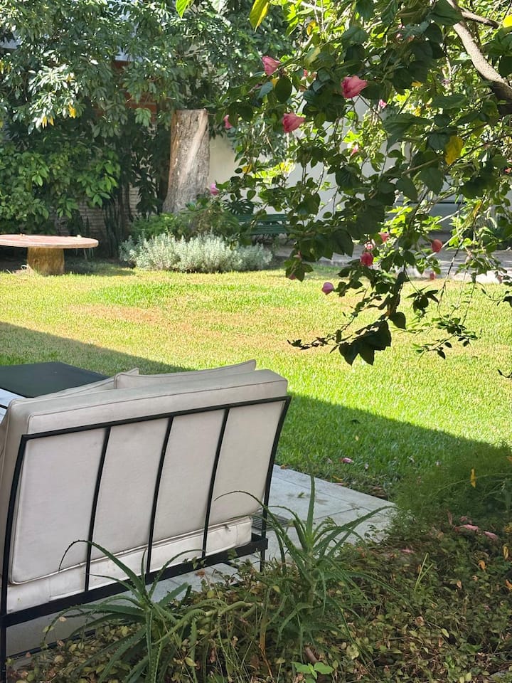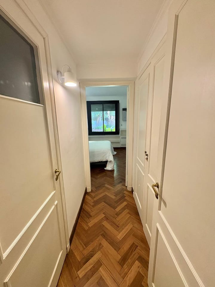 Casa en Belgrano con 5 dormitorios. Cuenta con jardín amplio y dos chimeneas a leña. Tiene 4 dormitorios con 3 baños en suite totalmente equipados y un 5º dormitorio de servicio con baño exterior. El living-comedor dispone de mesa para al menos 10 personas, grandes ventanales y chimenea a leña, y se conecta con un segundo estar con chimenea a leña. La cocina es amplia y cuenta con equipamiento completo.