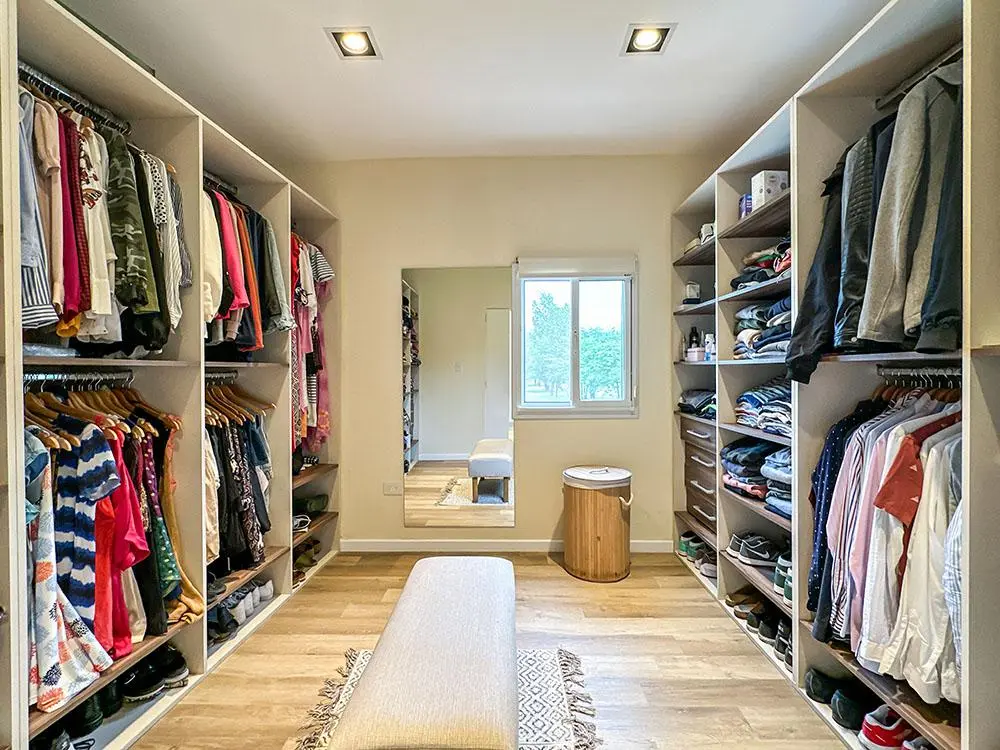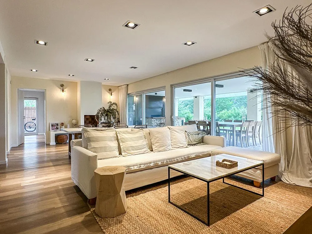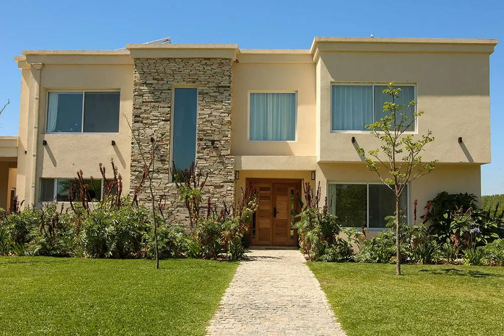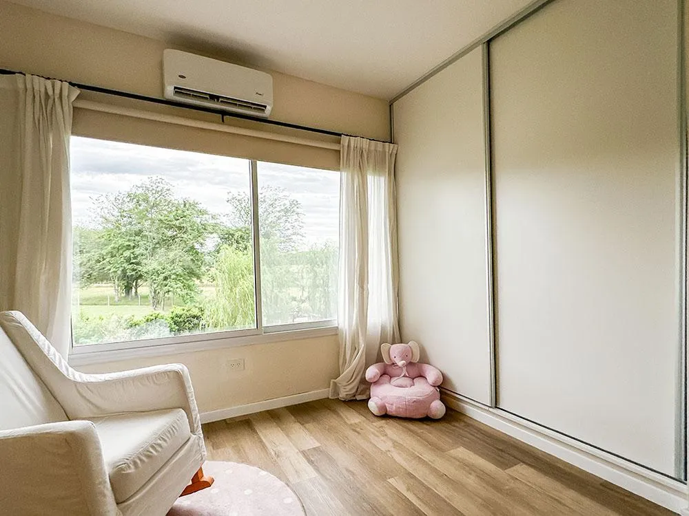 Casa de 2 plantas en el Club de Campo Estancias Golf, sobre lote interno de 2.000 m² totalmente parquizado. Cuenta con living y comedor con hogar, toilette, cocina con anafe y horno eléctrico, comedor diario, baño de servicio y lavadero. En planta baja tiene 1 dormitorio en suite y en planta alta 4 dormitorios, con gran master suite con escritorio, vestidor, doble ducha comunicada y bañadera; 3 dormitorios comparten un baño completo. La galería es de 6,5 m de ancho e incluye sector living y come