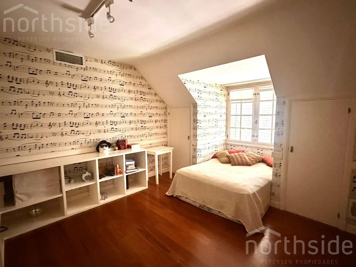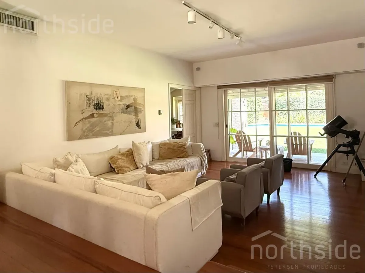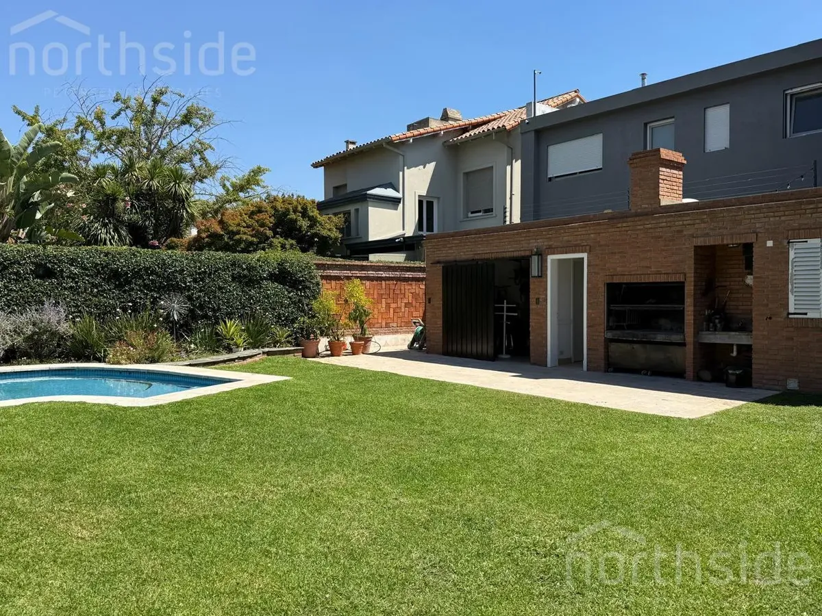 Casa de estilo inglés remodelada hace 15 años, con refacción integral en 2002. Cuenta con doble circulación en hall de entrada, pisos de madera hidro laqueada, toilette de recepción y cocina comedor diario con bow window al jardín y salida a la galería. En planta baja, living y comedor en L con vista y salida al jardín, escritorio al frente con boiserie y playroom. En planta alta hay hall de distribución, habitación principal en suite con hidromasaje, ducha y doble vestidor, además de 3 habitaci