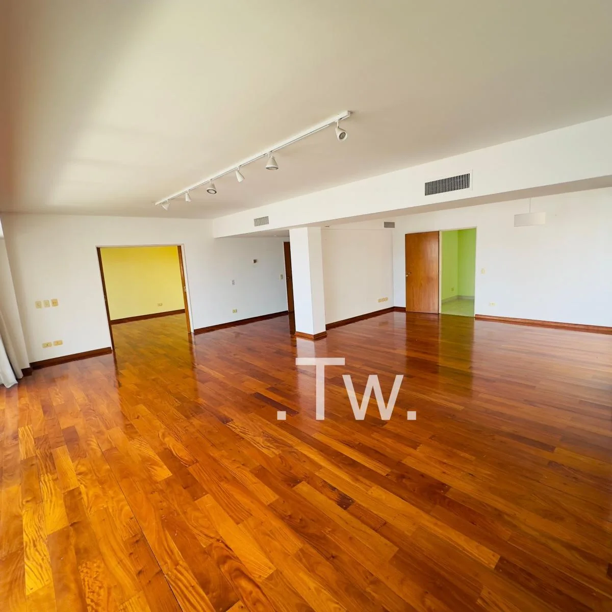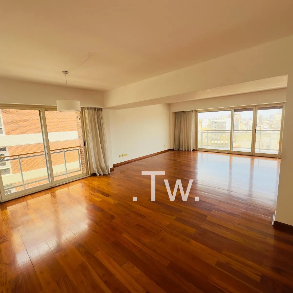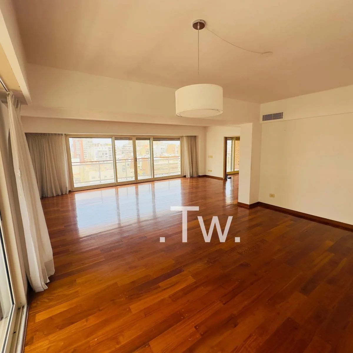 Departamento de 250 m² en Recoleta, piso alto, frente y contrafrente, en edificio con vigilancia 24 hs. Cuenta con palier privado, hall de entrada, placard de recepción y toilette. Living comedor con balcón al frente y ventanales con persianas eléctricas; escritorio con salida al balcón con persianas eléctricas; cocina totalmente equipada con comedor diario y lavadero independiente. Incluye 4 dormitorios en suite al contrafrente, dependencia de servicio, doble circulación y pisos de madera. Tien