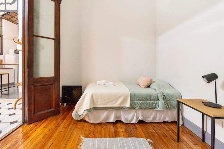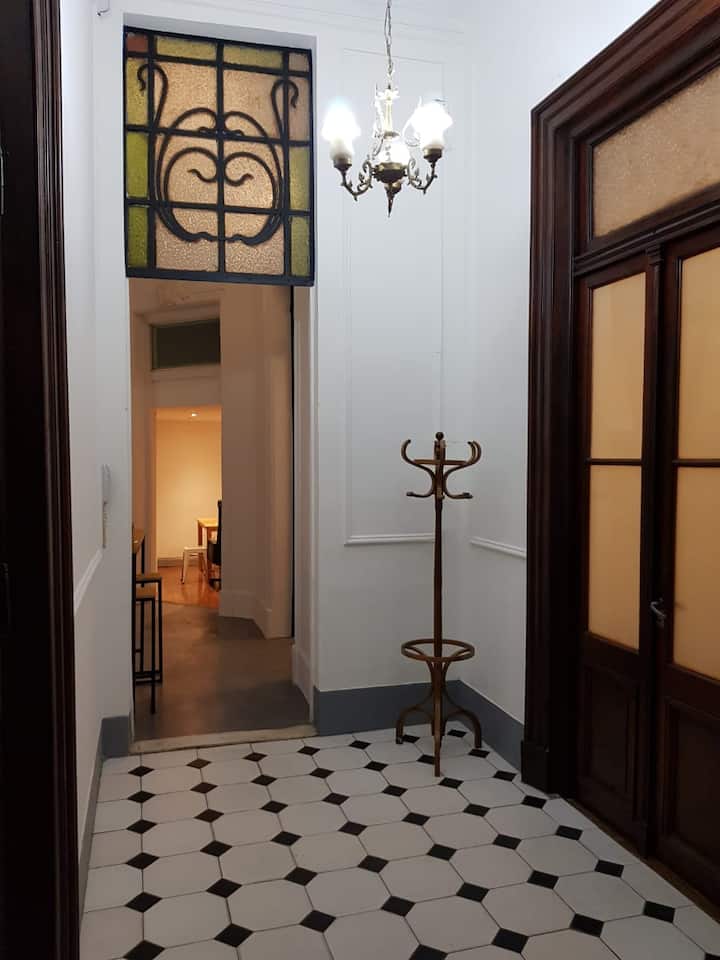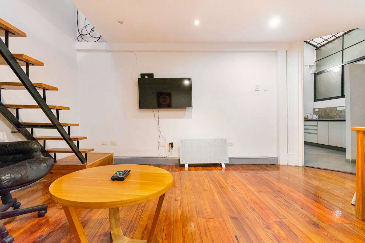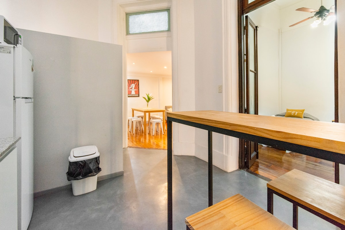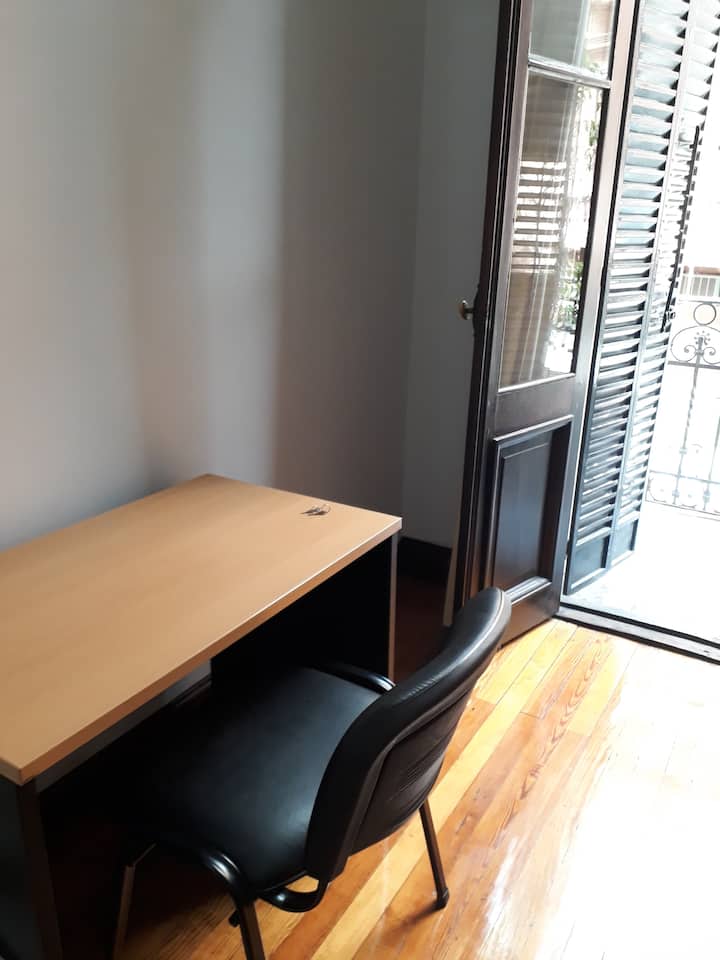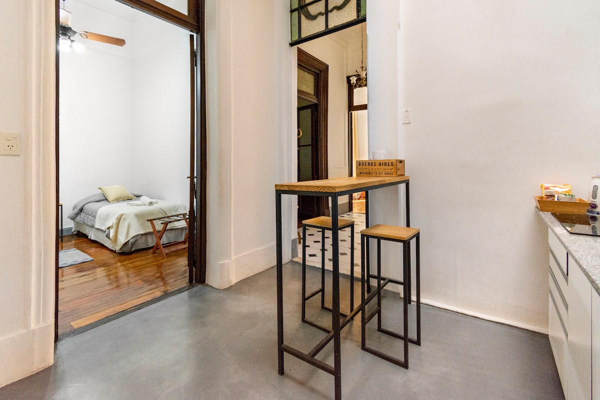 Departamento de 5 ambientes, en San Nicolás, con 5 habitaciones. Se ubica en el 1er piso y cuenta con ascensor pequeño; una de las habitaciones está en entrepiso. Fue reciclado con instalación eléctrica para calefacción y termotanque. Cocina con cocina eléctrica, heladera con freezer, pava eléctrica y microondas. Living-comedor con Smart TV, WiFi de alta velocidad. Está a 300 m del Obelisco, a 500 m del Teatro Colón y de los tribunales, y a 300 m de Av. de Mayo.