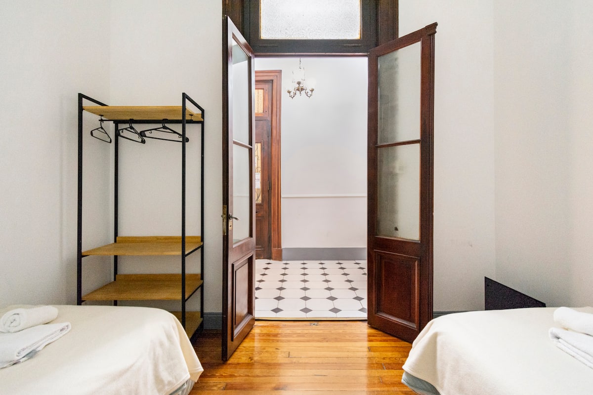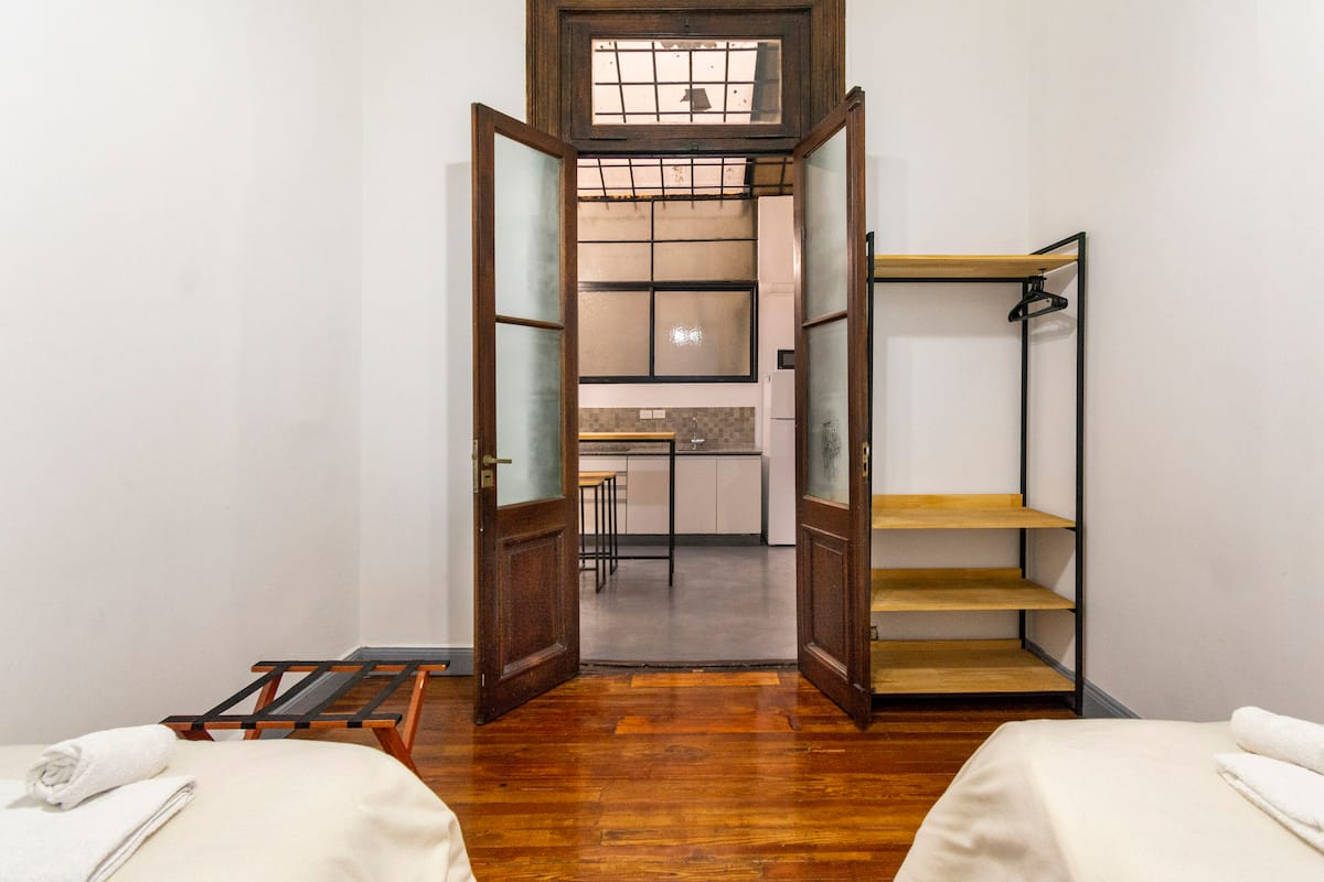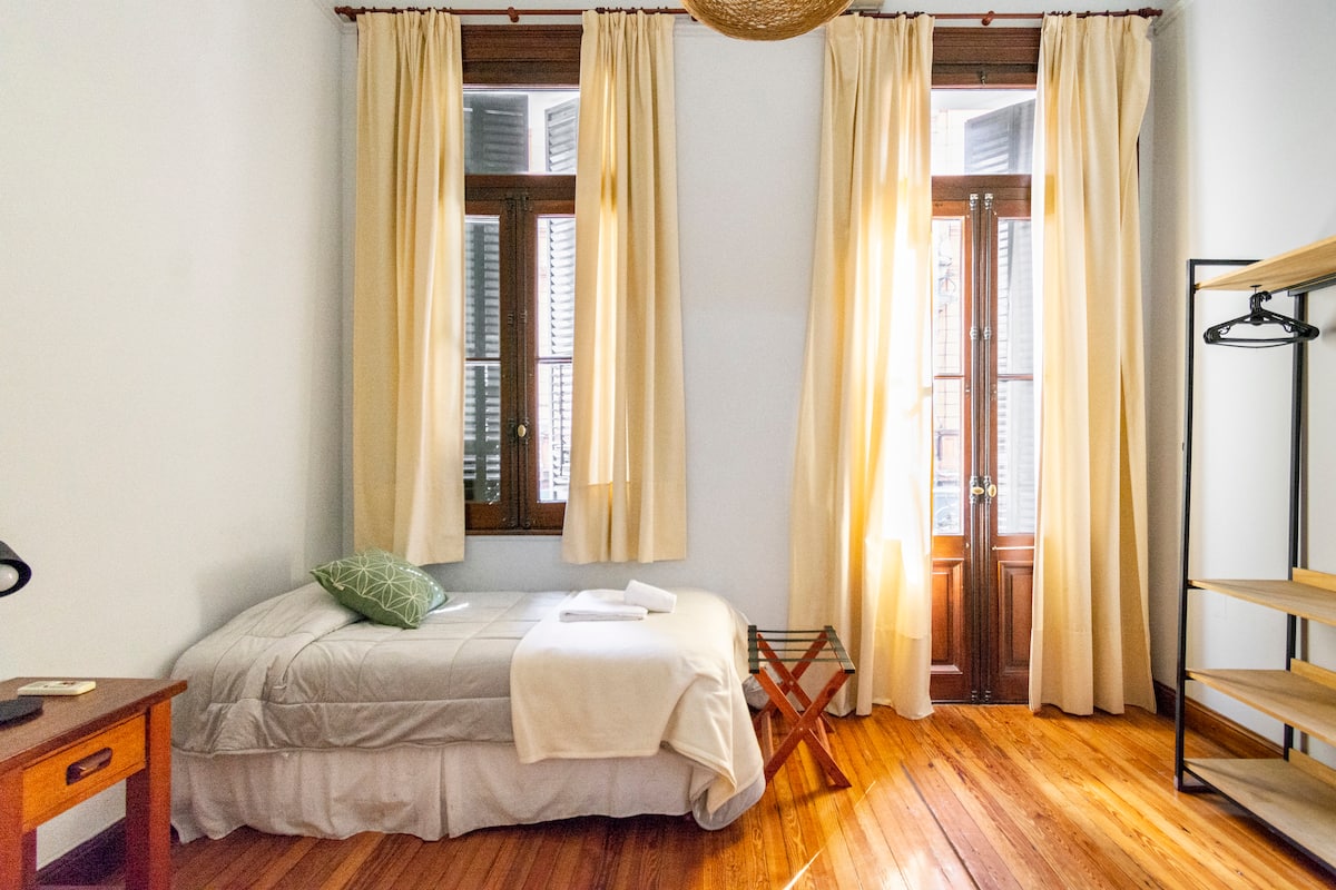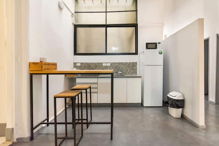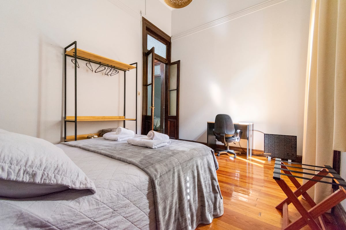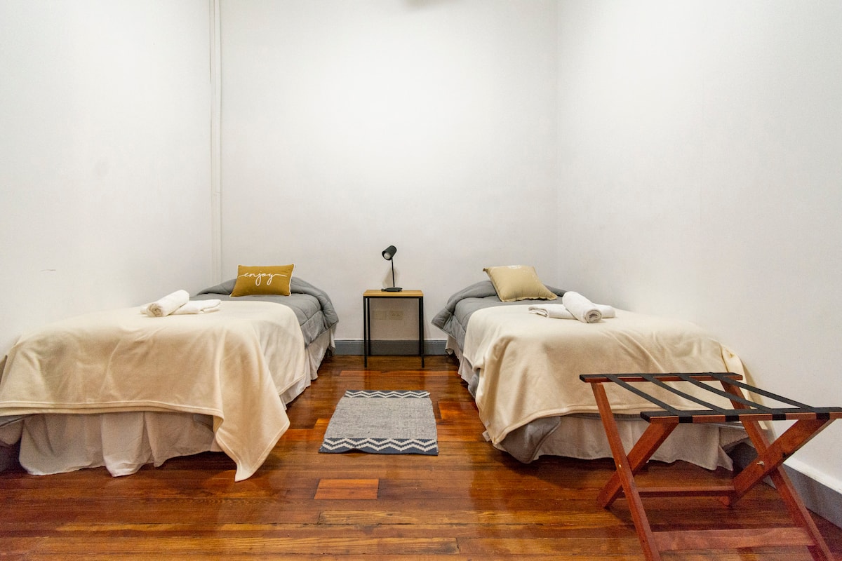 Departamento de 5 ambientes, en San Nicolás, con 5 habitaciones. Se ubica en el 1er piso y cuenta con ascensor pequeño; una de las habitaciones está en entrepiso. Fue reciclado con instalación eléctrica para calefacción y termotanque. Cocina con cocina eléctrica, heladera con freezer, pava eléctrica y microondas. Living-comedor con Smart TV, WiFi de alta velocidad. Está a 300 m del Obelisco, a 500 m del Teatro Colón y de los tribunales, y a 300 m de Av. de Mayo.