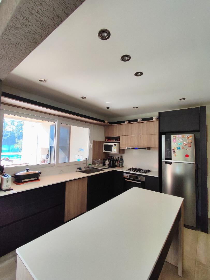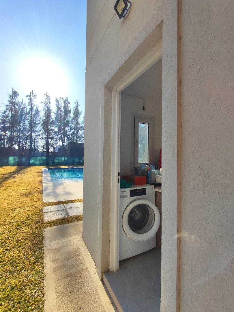 Casa de 2 plantas en Santa Teresa, Tigre. Cuenta con living comedor integrado, cocina semi separada con espacio de guardado, dependencia, lavadero, toilette y escritorio o dormitorio de huéspedes; el segundo dormitorio está en planta baja. En la planta alta hay 3 dormitorios, uno en suite, y un baño completo con bañera; incluye galería cubierta con parrilla. Dispone de jardín delantero y jardín trasero, piscina, cloacas y gas.