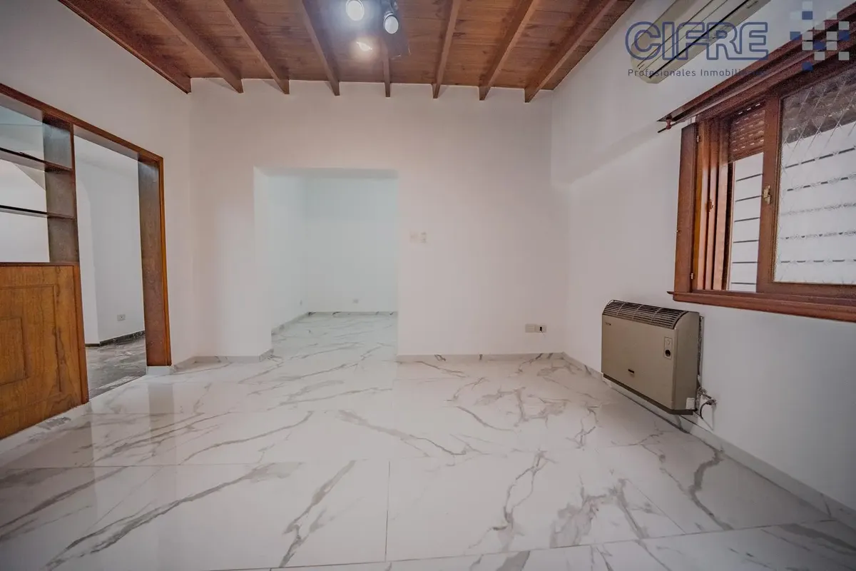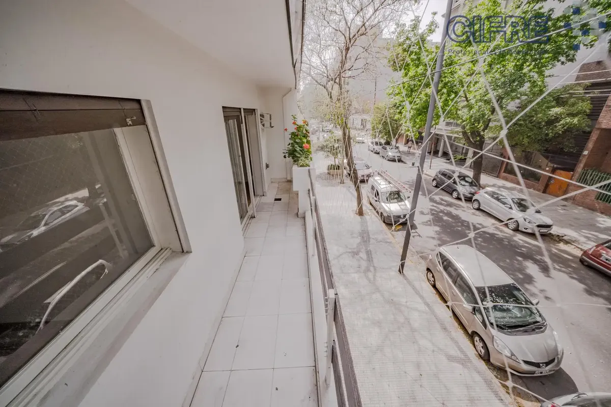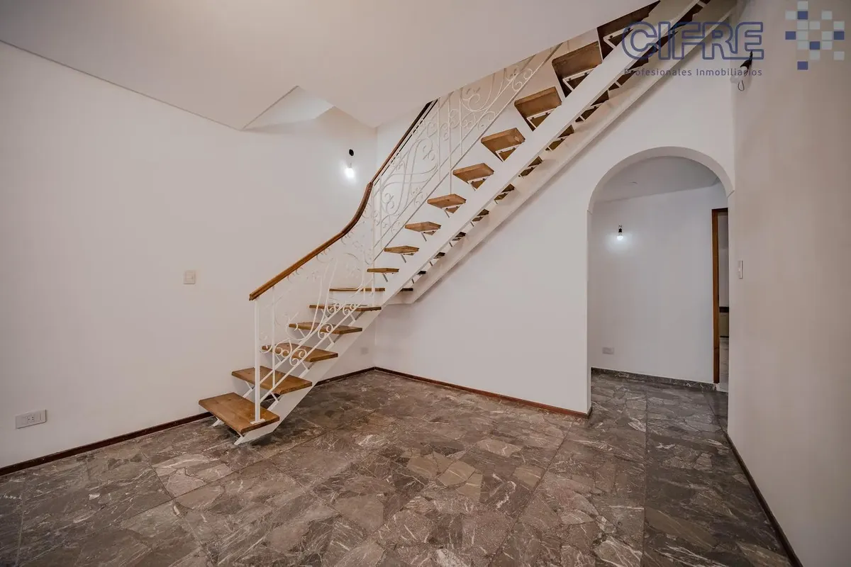 PH al frente en dos plantas, en propiedad horizontal. Destinado a uso profesional y/o comercial únicamente, no apto vivienda. En planta baja: sala de recepción a la calle con pisos de cerámica, living al frente con pisos de mármol y escalera, cocina con muebles completos, mesada de mármol, doble bacha, monocomando, purificador, horno a gas y anafe, toilette de recepción con amplio vanitory, y un dormitorio al contrafrente con gran placard y una sala contigua con pisos de porcelanato. En planta a