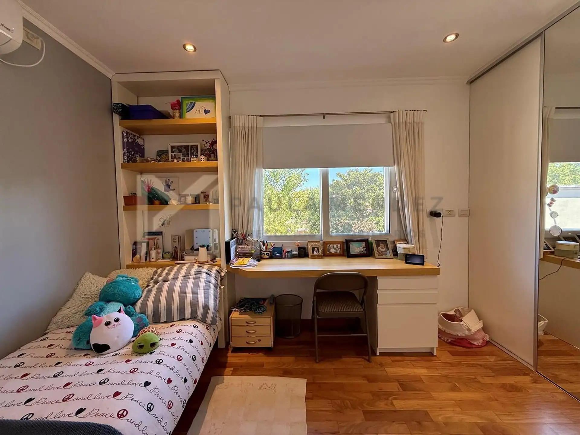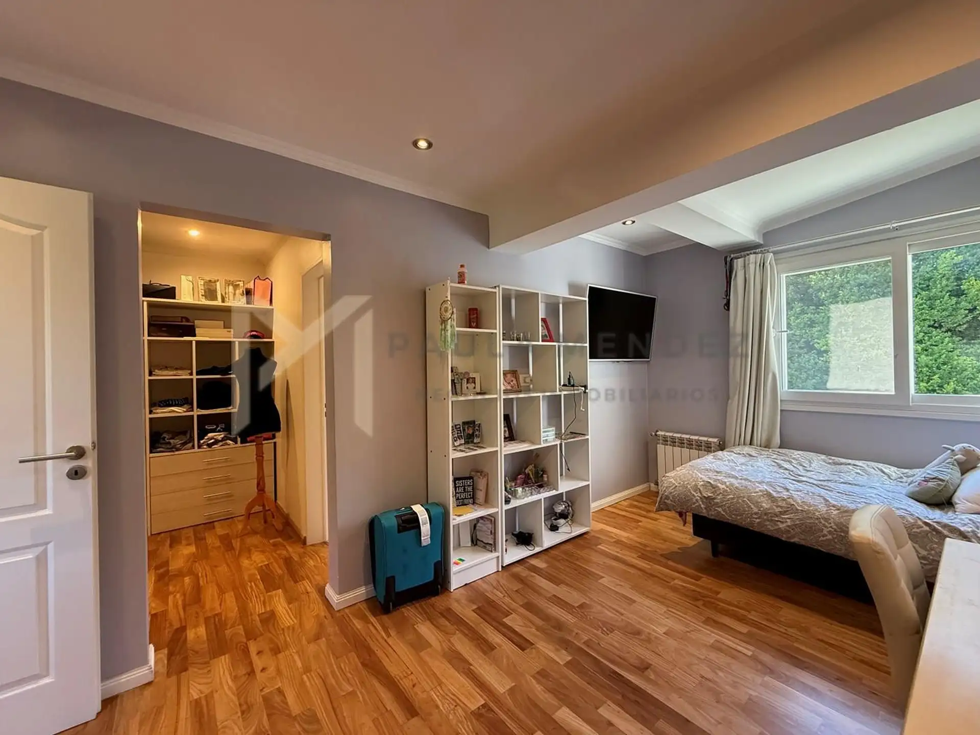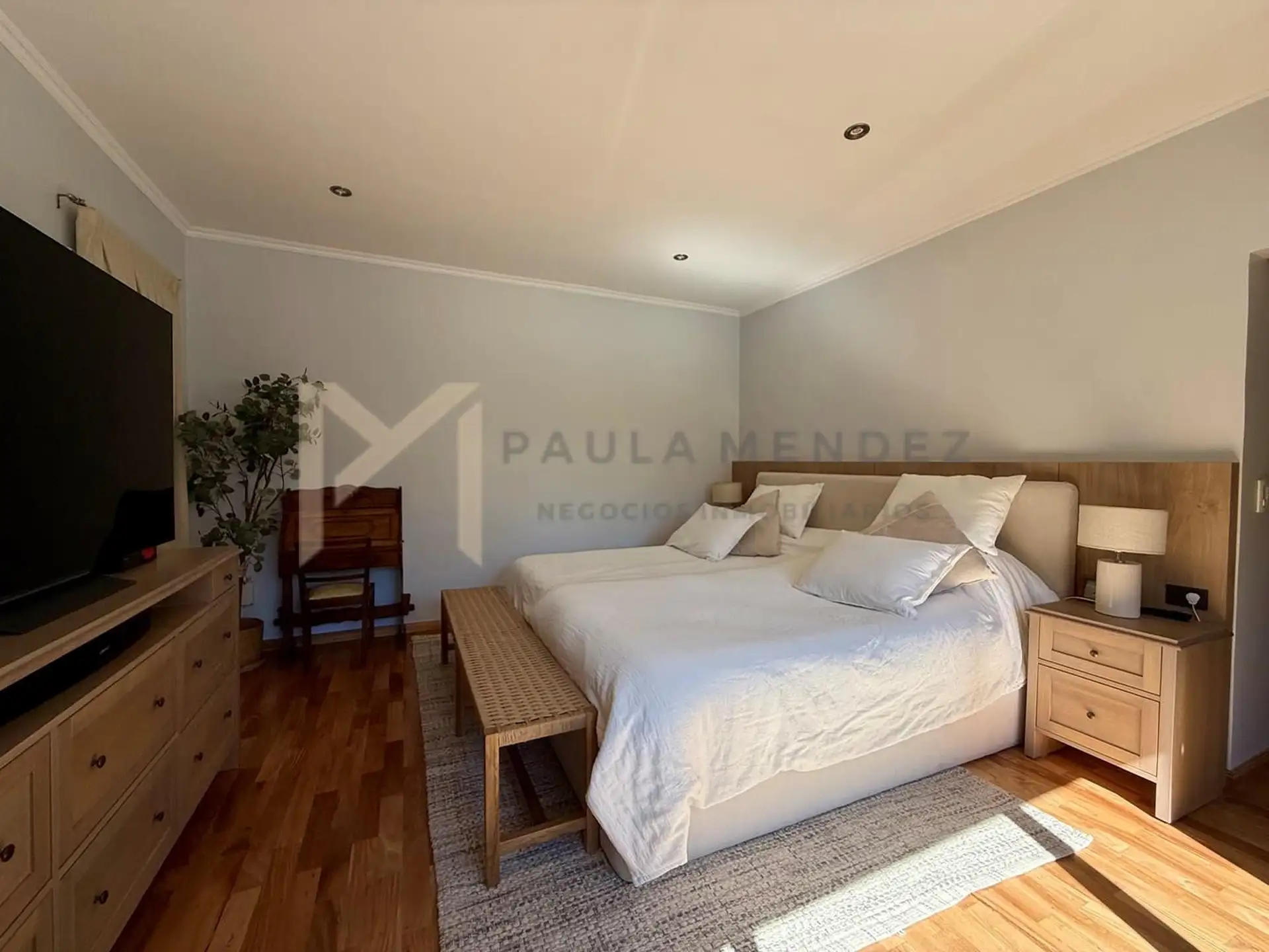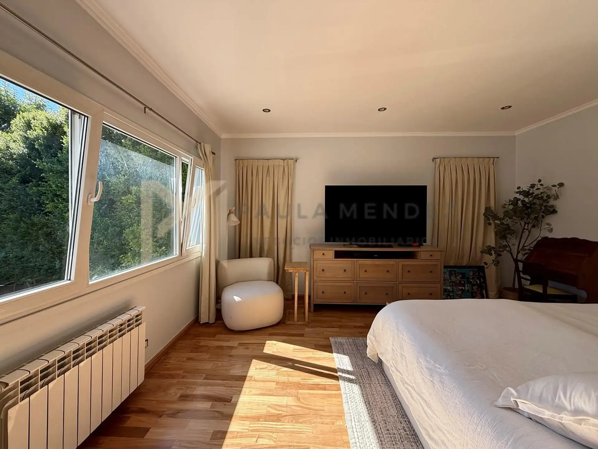 Casa en alquiler en La Horqueta, San Isidro, desarrollada sobre 2 lotes y con acceso por un jardín. Se distribuye en 3 plantas y cuenta con 5 dormitorios en las plantas superiores y 1 habitación adicional en planta baja. En planta baja hay hall de recepción con vestidor, toilette con ventana, living-comedor con grandes ventanales y chimenea, y un espacio diario que integra cocina, comedor y sector de TV. La cocina incluye barra desayunadora y electrodomésticos, además de un mueble de entretenimi