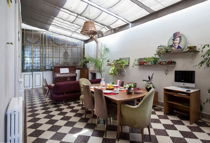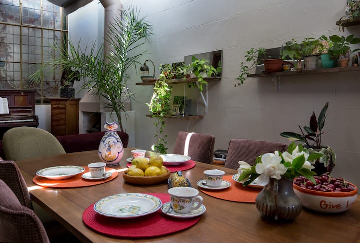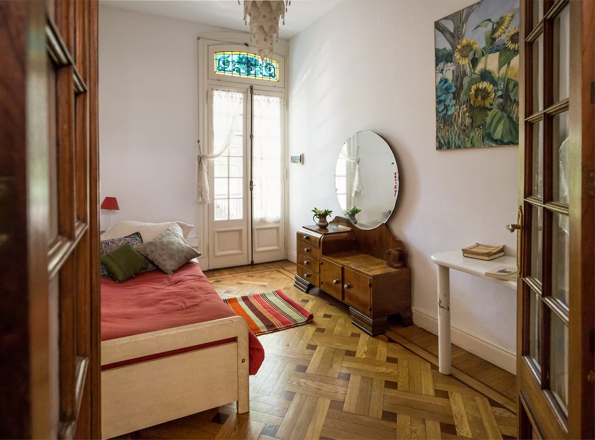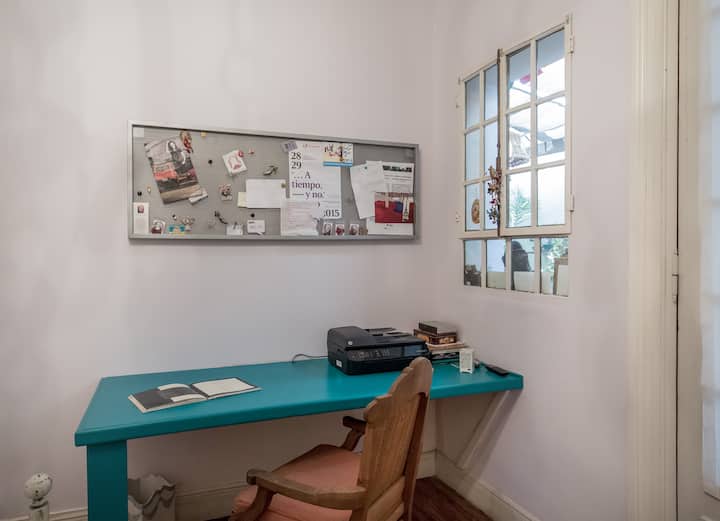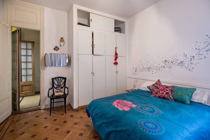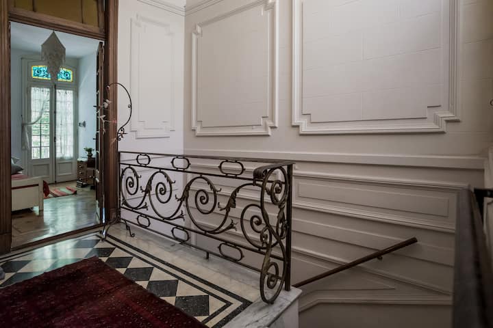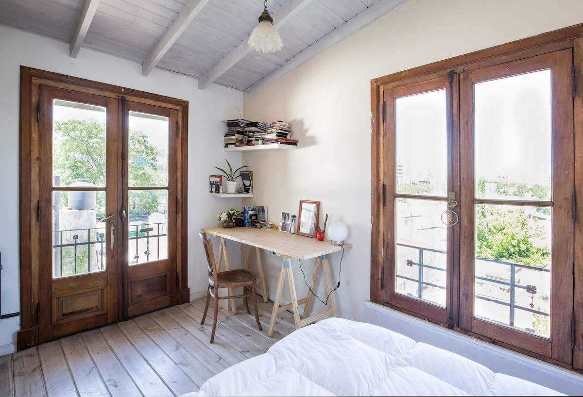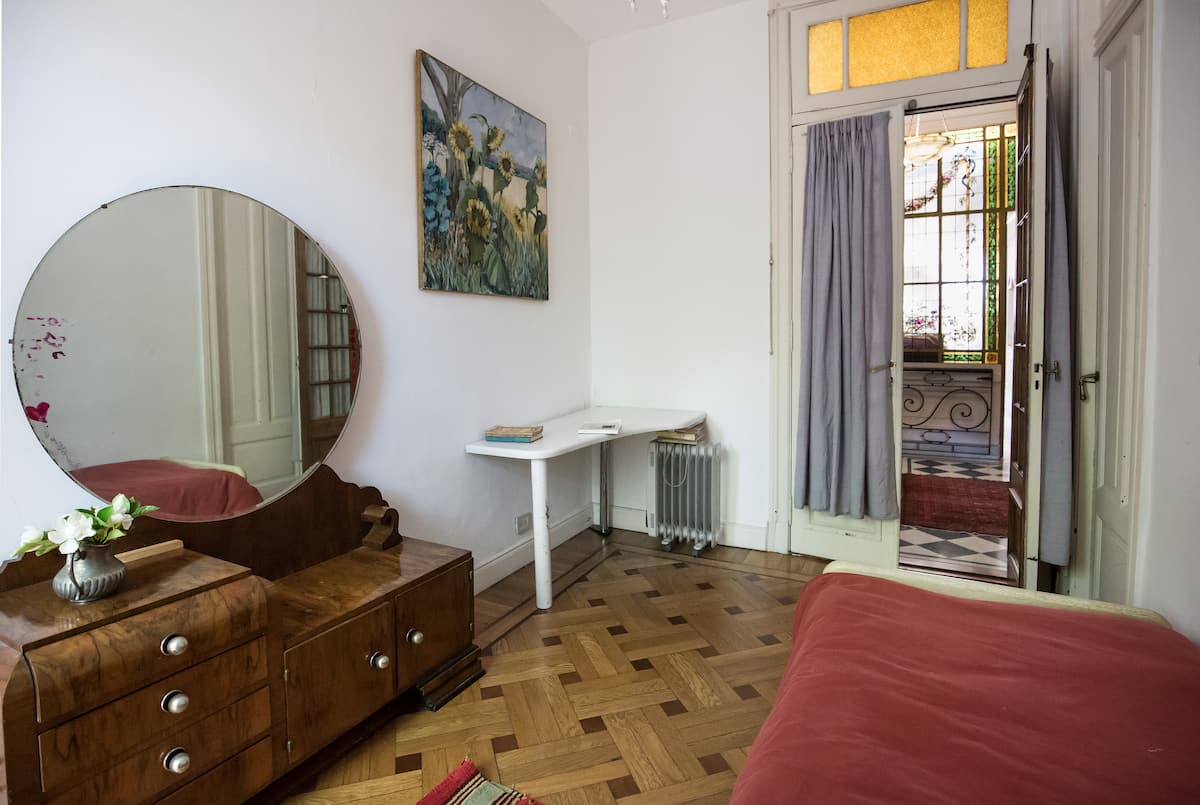 Casa antigua de estilo italiano en Chacarita, ubicada en el 1er piso por escalera. El espacio cuenta con varias habitaciones, con camas dobles y simples. Conserva pisos de pinotea, aberturas, herrería y vitrales originales, y tiene una terraza amplia con área de estar y parrilla interna para días de lluvia, además de jacuzzi y ducha exterior. La vivienda no permite fumar, excepto en la terraza.