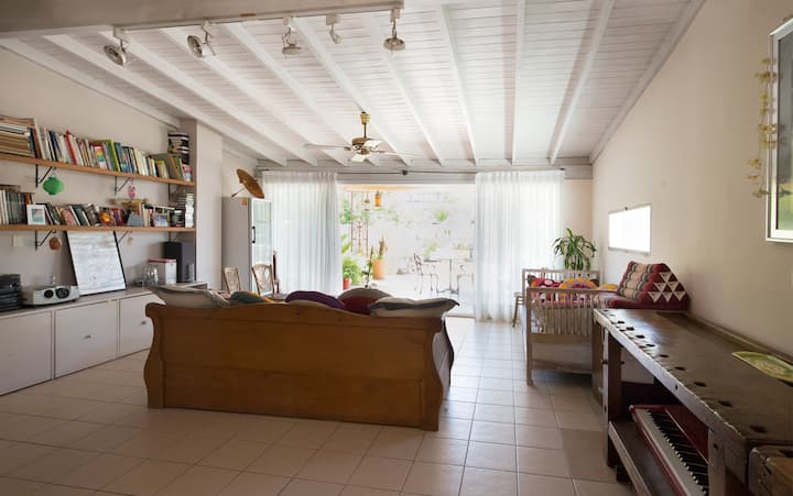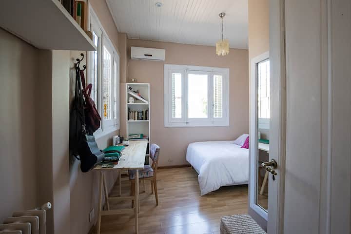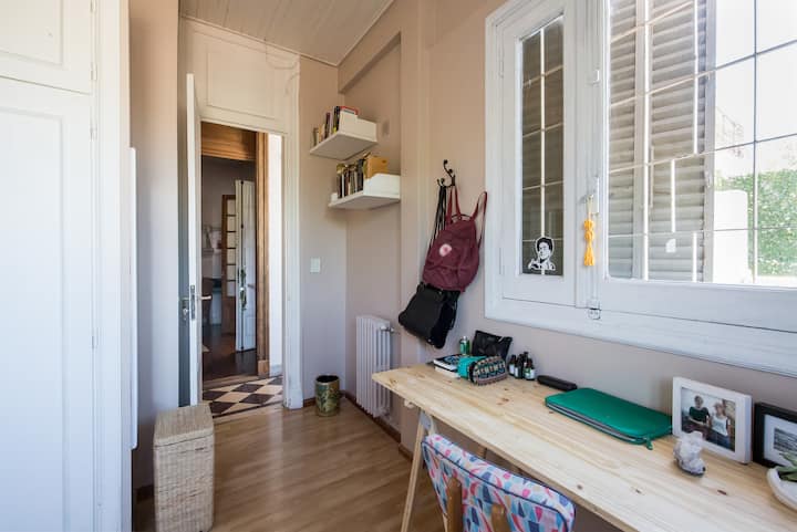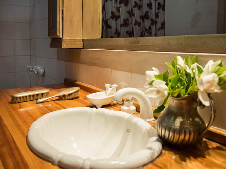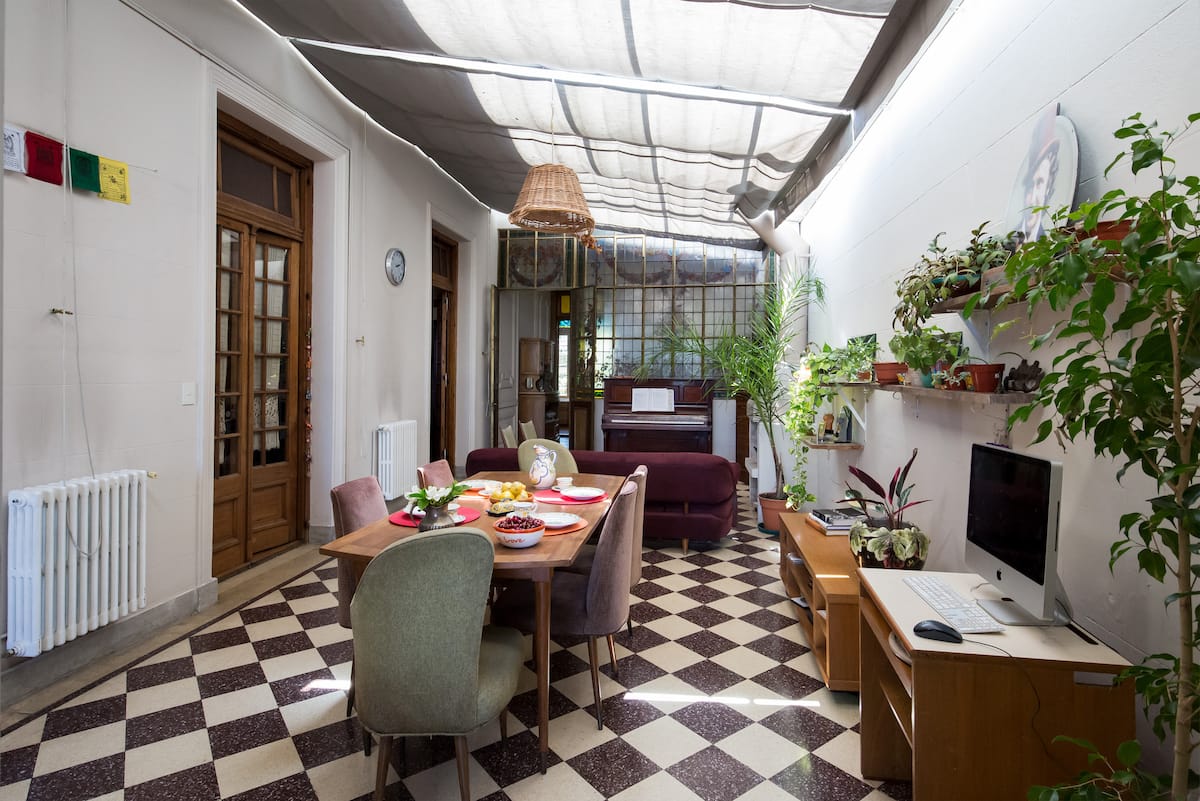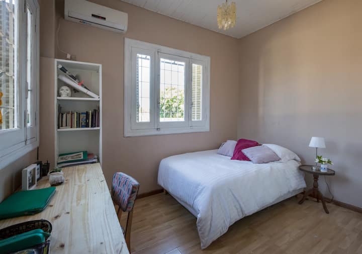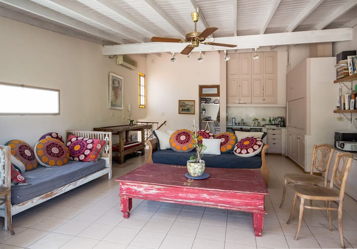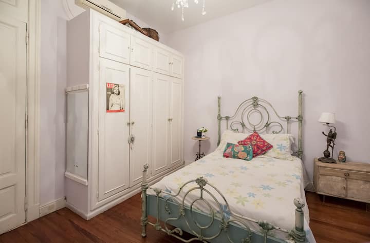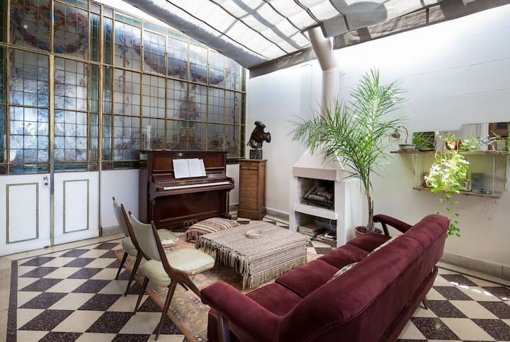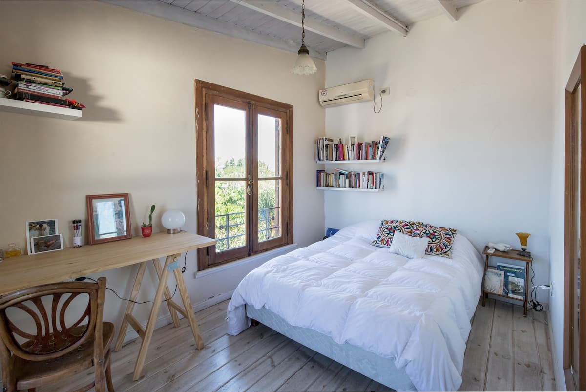 Casa antigua de estilo italiano en Chacarita, ubicada en el 1er piso por escalera. El espacio cuenta con varias habitaciones, con camas dobles y simples. Conserva pisos de pinotea, aberturas, herrería y vitrales originales, y tiene una terraza amplia con área de estar y parrilla interna para días de lluvia, además de jacuzzi y ducha exterior. La vivienda no permite fumar, excepto en la terraza.
