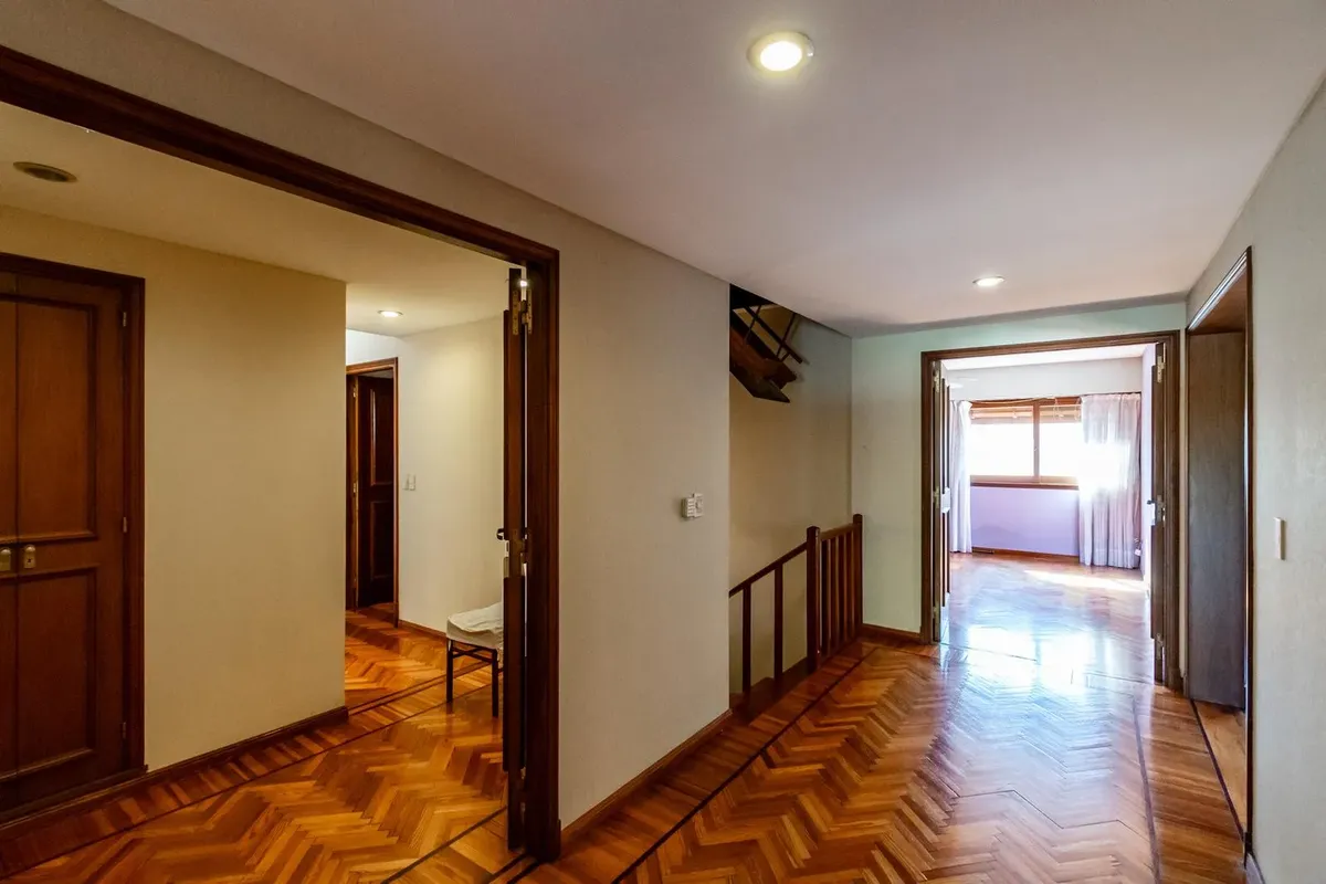Casa en Martínez de 7 ambientes, con 20 metros de frente y 40 metros de fondo, desarrollada en 2 plantas + subsuelo + altillo + quincho. Cuenta con garage cubierto de 8,40 x 7,76 m y un sótano con cuarto de guardado. En planta baja hay hall de entrada, living con salida al jardín delantero y trasero, comedor diario integrado, cocina comedor con lavadero independiente y acceso de servicio, dormitorio de 4 x 4 m y baño completo con antebaño. En planta alta presenta hall de distribución, dormitorio