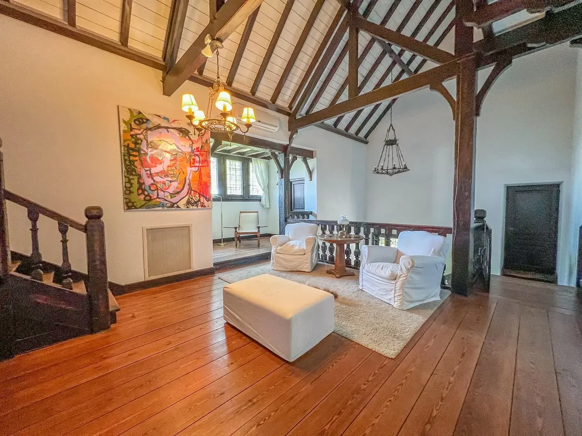 Residencia de estilo normando en barrio cerrado Elortondo, con vigilancia y calle cerrada con barrera. Dispone de 700 m² cubiertos en un lote de 2800 m², con vistas al Río y al Bajo de San Isidro. Cuenta con 6 dormitorios, 4 baños (incluye suites y baños compartimentados), bodega, cuarto de máquinas y calefacción central por radiadores, además de aire acondicionado frío/calor en todos los ambientes. En el exterior tiene parque arbolado, pileta de natación de 14 m con venecitas, vestuarios con ba