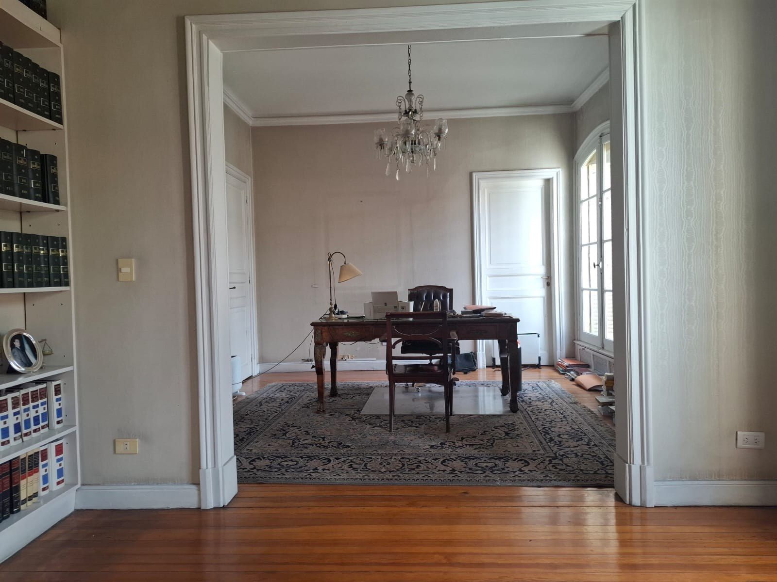 Semipiso de 9 ambientes en San Nicolás, en un edificio obra del arquitecto Alejandro Bustillo. Está al contrafrente y tiene vistas abiertas a jardines. Dispone de área de recepción con living-comedor y escritorio, 3 baños y cocina. Apto profesional; incluye jardín común y una habitación de uso exclusivo en el último piso. En muy buen estado de conservación.