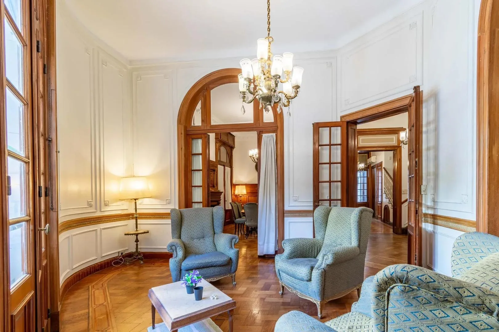 Casa en alquiler temporal en Recoleta, Capital Federal. Tiene 650 m² y se distribuye en 8 dormitorios y 7 baños completos. Se ofrece totalmente amueblada, con posibilidad de retirar el mobiliario según las necesidades del locatario. El valor incluye Agua, Gas y ABL, y el inquilino abona el consumo eléctrico de Edenor.