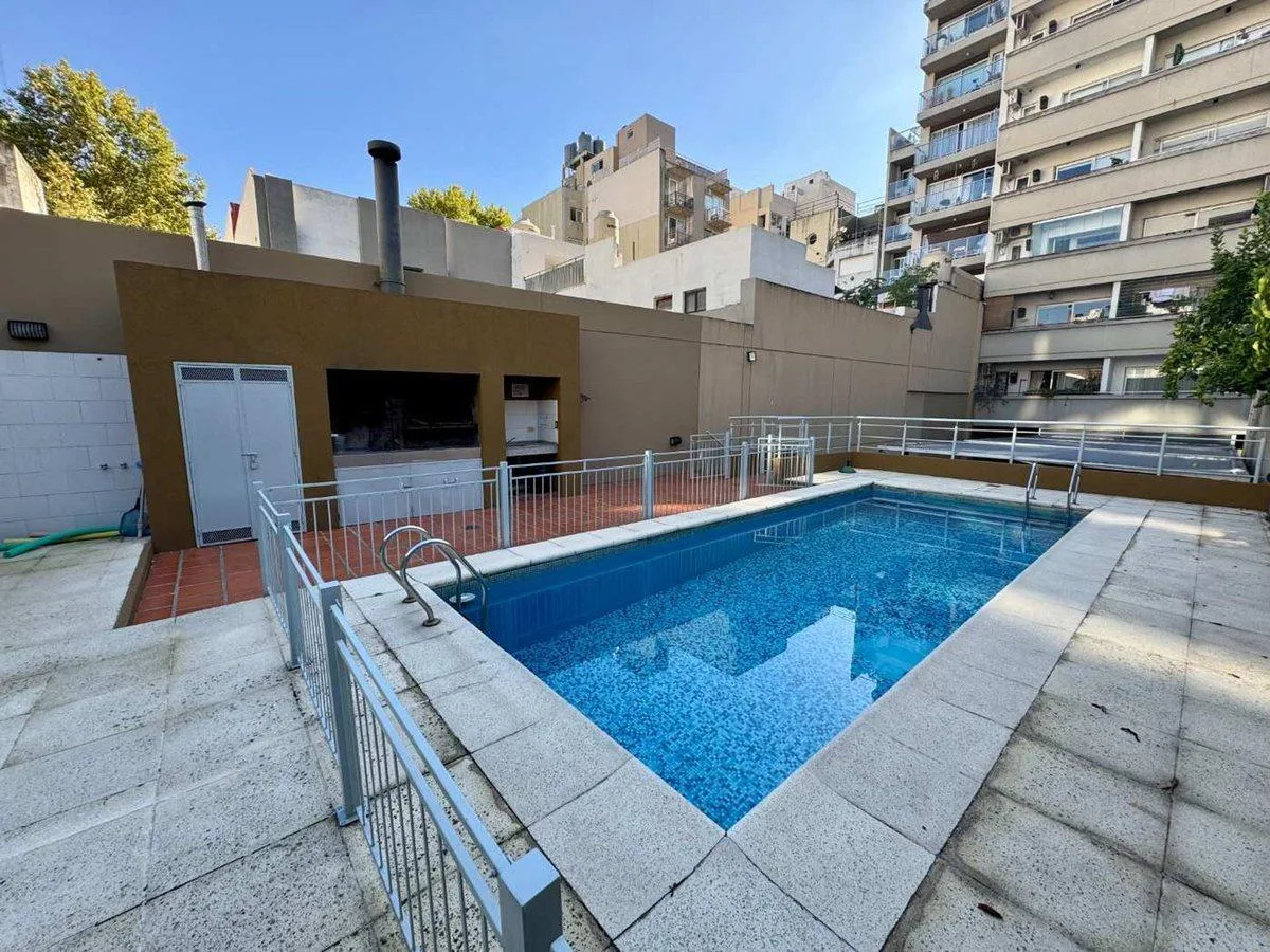 Monoambiente en 1er piso al frente, con balcón con rejas de protección. Dispone de pisos de parquet, aire frío/calor, cocina a gas, termotanque eléctrico y conexión para lavarropa, además de placard. El edificio cuenta con piscina en planta baja, laundry y parrilla, y se encuentra a metros de Av. Estado de Israel y de la estación de subte Ángel Gallardo (Línea B).