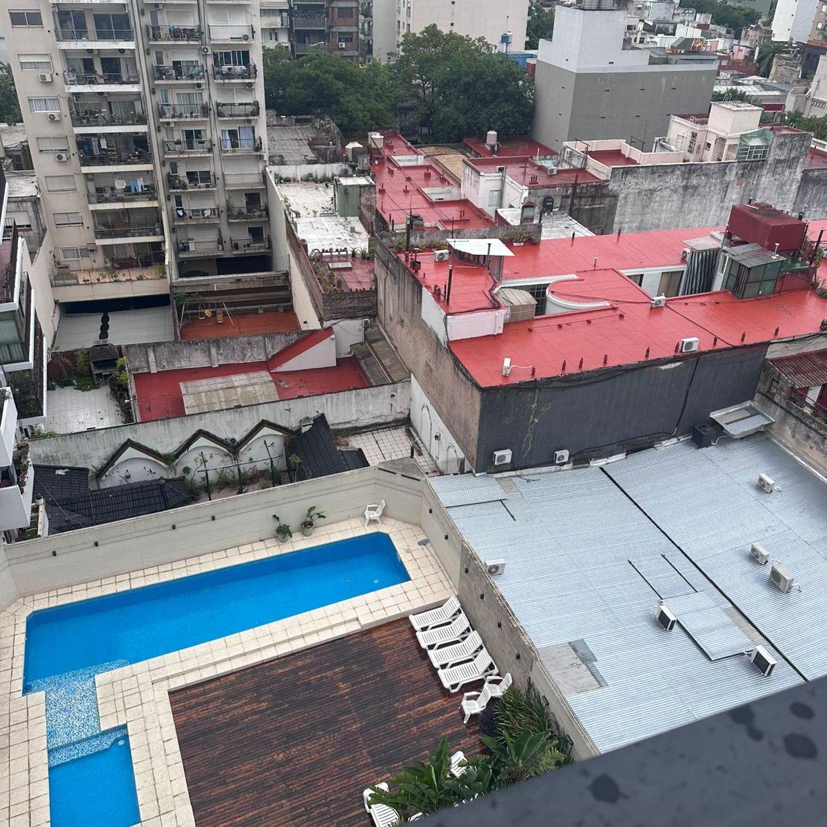 Monoambiente en Almagro con balcón. Está sobre Av. Corrientes, a la altura de Bulnes. Cuenta con aire acondicionado y calefacción con agua caliente central. El edificio dispone de pileta, solárium, SUM y laundry, y seguridad con tótem 24 hs.