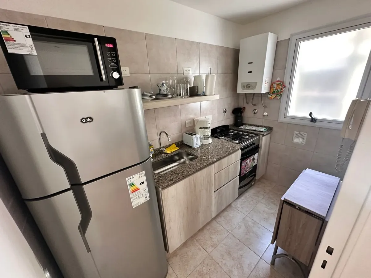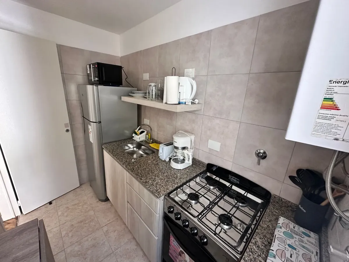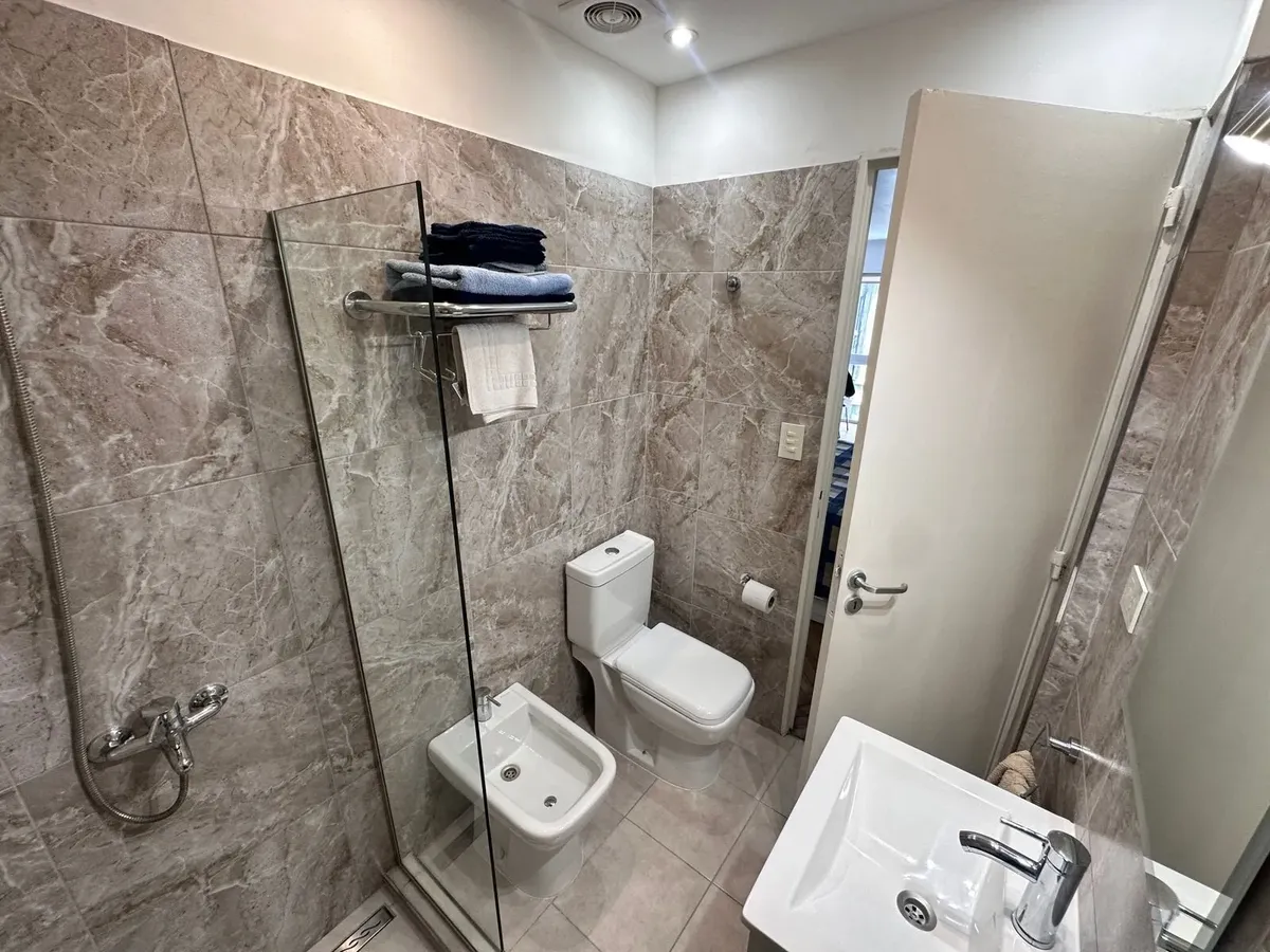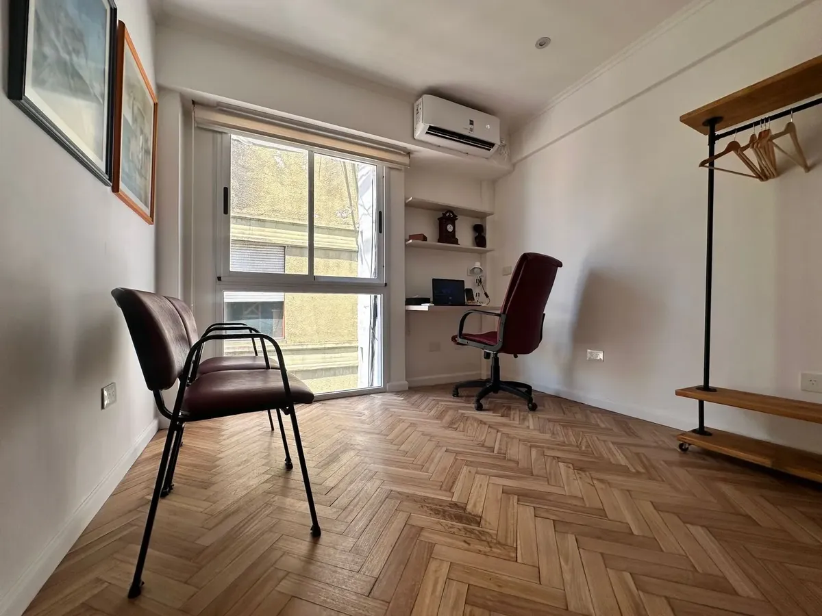Monoambiente de 30 m² en Balvanera, en piso alto. Cocina refaccionada separada con cocina y horno a gas, microondas y heladera con freezer; dormitorio con cama doble con cajonera y escritorio. Baño con ducha y mampara, aire acondicionado frío-calor y agua caliente individual. Alquiler: USD 450 + servicios. Contrato de 6 meses.