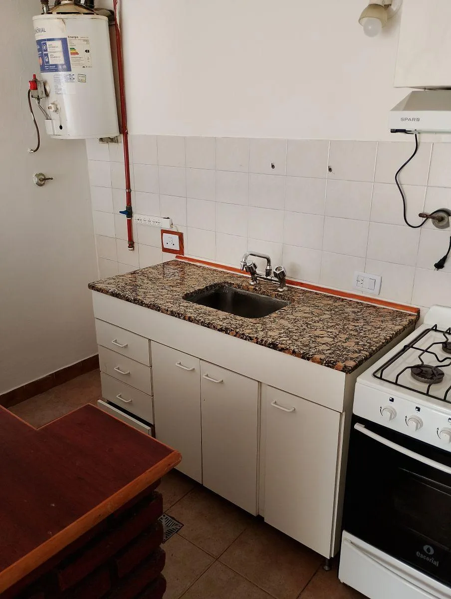 Departamento monoambiente de 38 m² con 1 balcón. Superficie total de 40 m², orientación N. Cocina integrada. Edificio con ascensor y encargado; antigüedad de 40 años.
