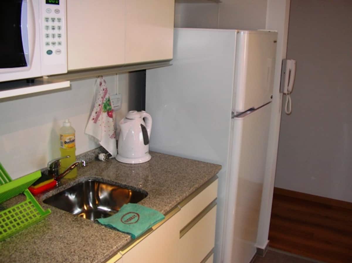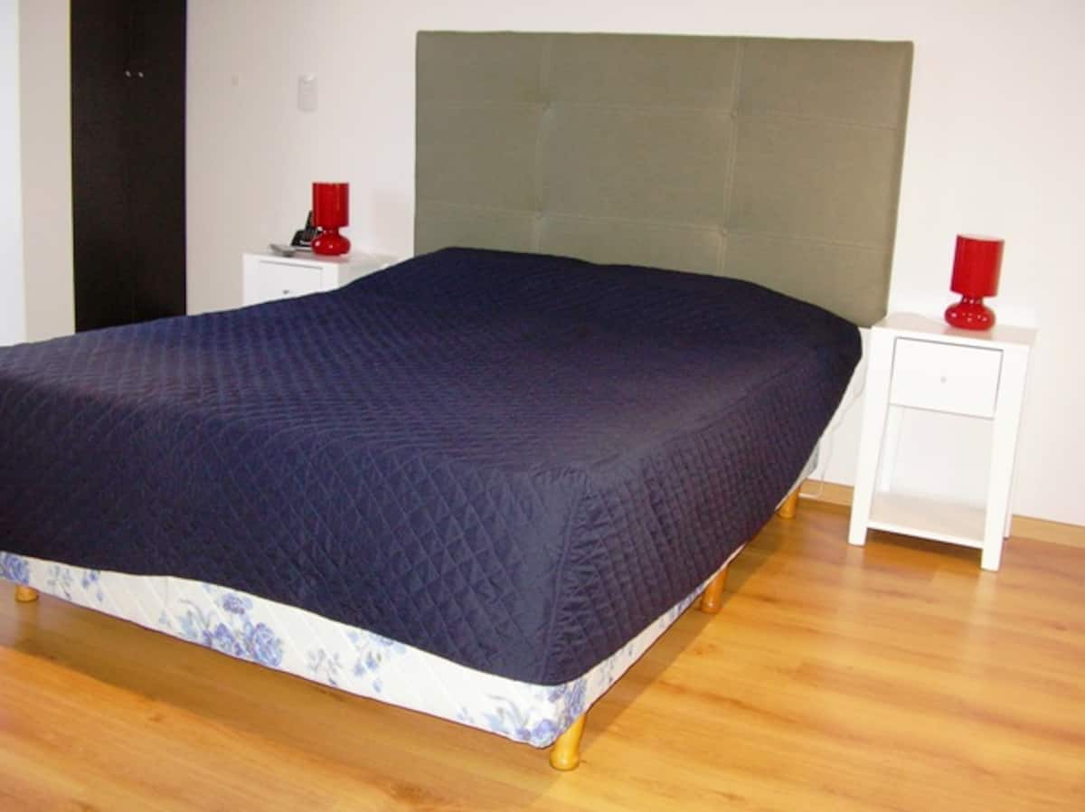 Monoambiente en Balvanera. Incluye cama de tamaño completo, baño, cocina equipada y vajilla. Cuenta con TV por cable y wifi. Para uso bajo pedido, se indica que pueden encontrarse secador de pelo y plancha previa coordinación antes de la llegada.