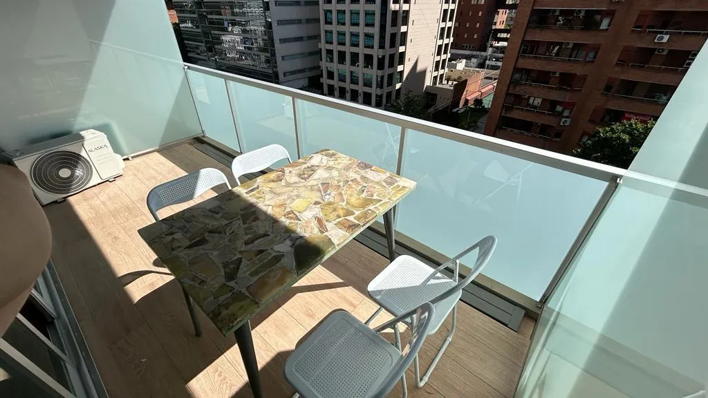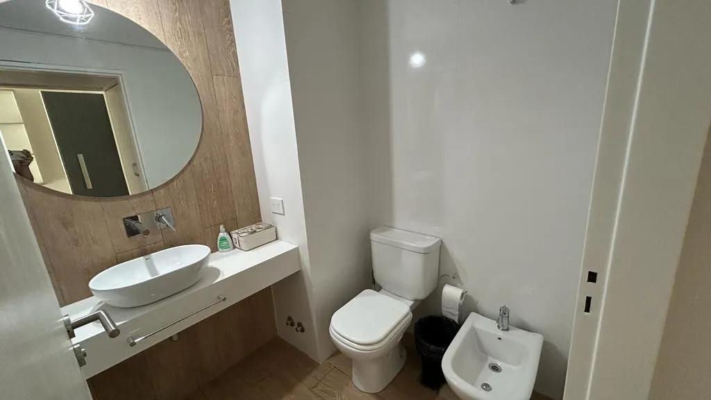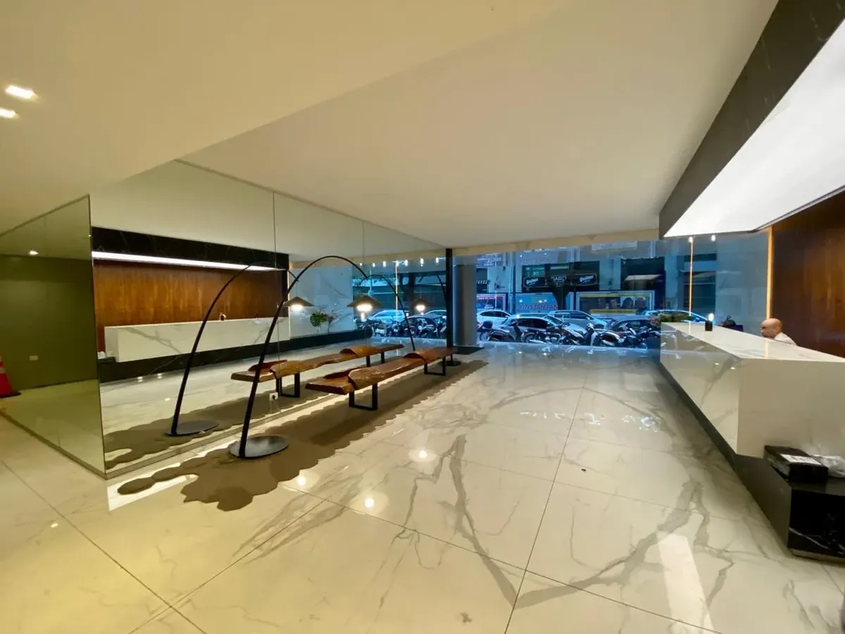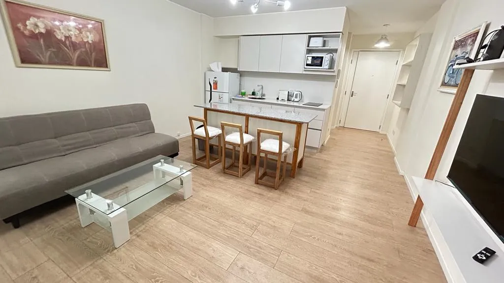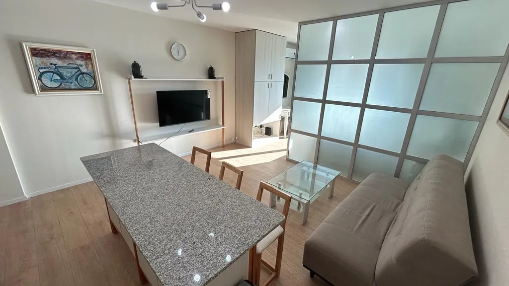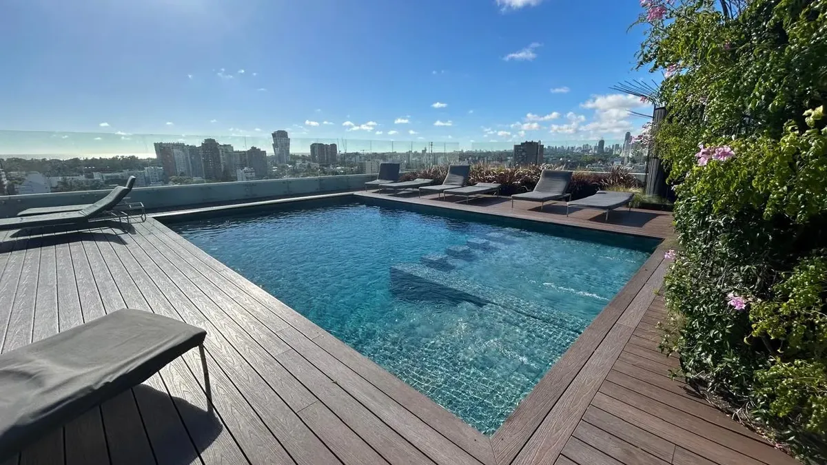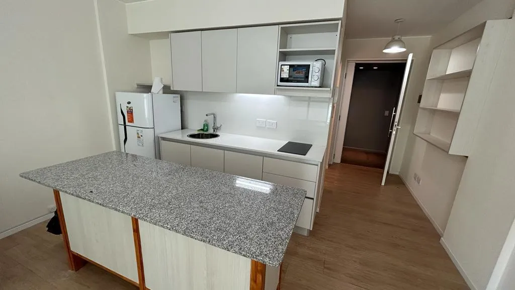 Departamento de 1 ambiente grande de alquiler temporario disponible a partir de mayo de 2026. Cuenta con balcón, totalmente amueblado, pisos de porcelanato en el living y cocina integrada con muebles y electrodomésticos. Dispone de placard con puertas espejo, ventanas con doble vidrio y cierre de seguridad; baño completo y toilette con revestimiento de porcelanato. El edificio ofrece seguridad 24 hs y amenities: piscina descubierta climatizada, SUM, solárium, laundry, Wi-Fi, gimnasio con vestuar