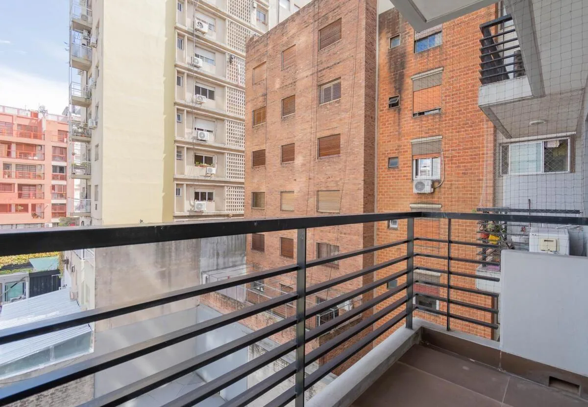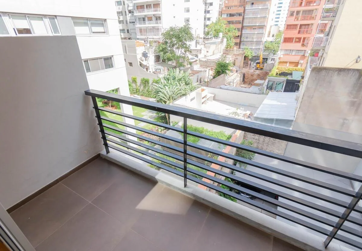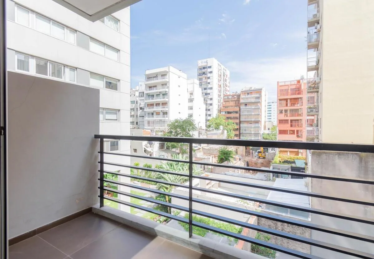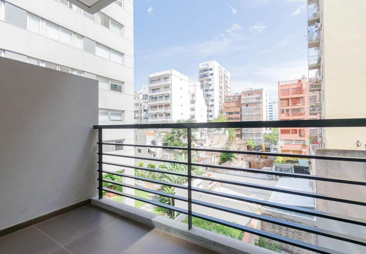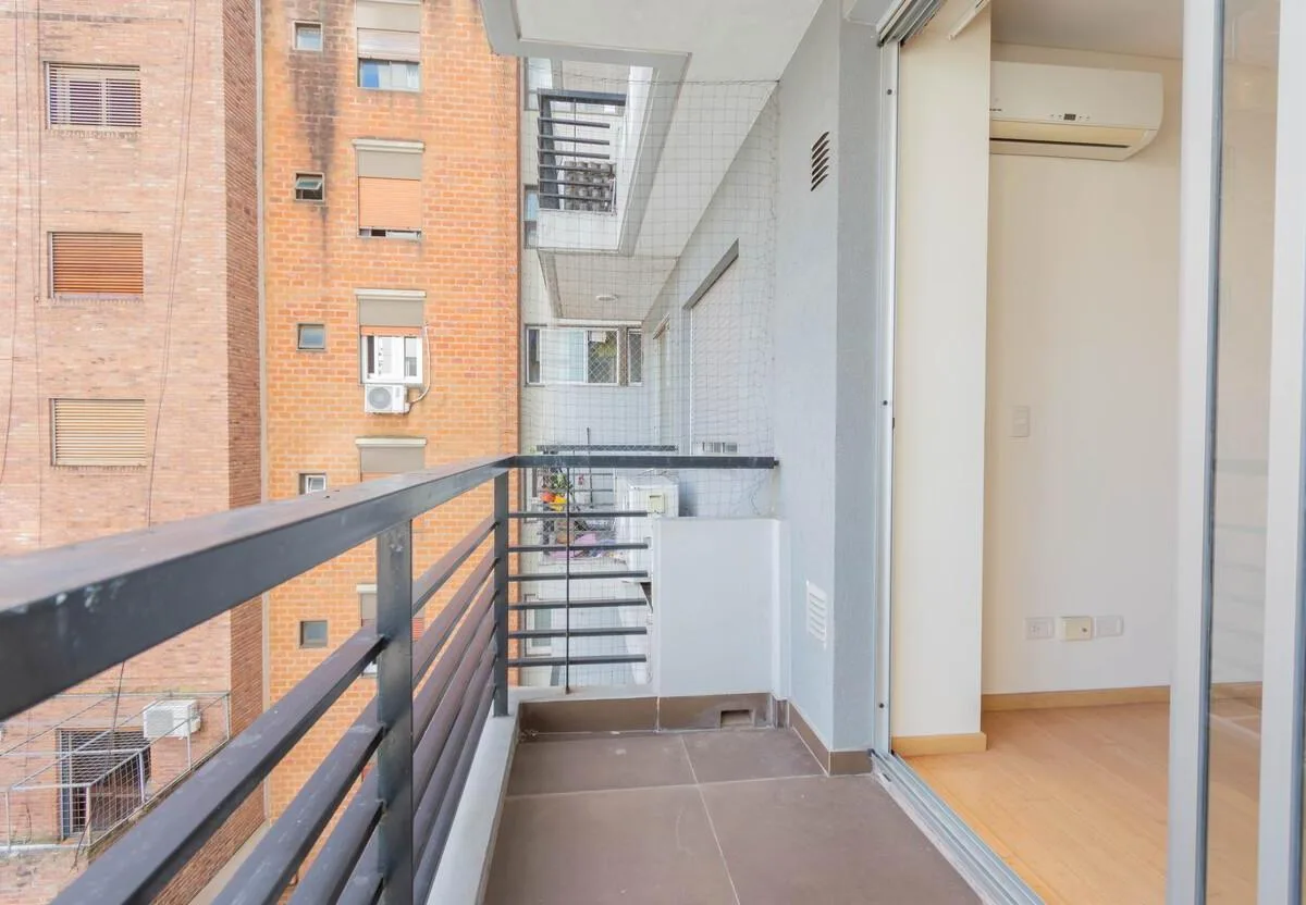 Monoambiente en Belgrano, en un edificio de perfil moderno. La unidad cuenta con un ambiente con salida a balcón al frente mediante un gran ventanal, cocina integrada con muebles bajo mesada y alacena y espacio de guardado, y baño completo con bañera. Incluye pisos de madera y aire acondicionado, y el edificio dispone de pileta y sector con parrilla.