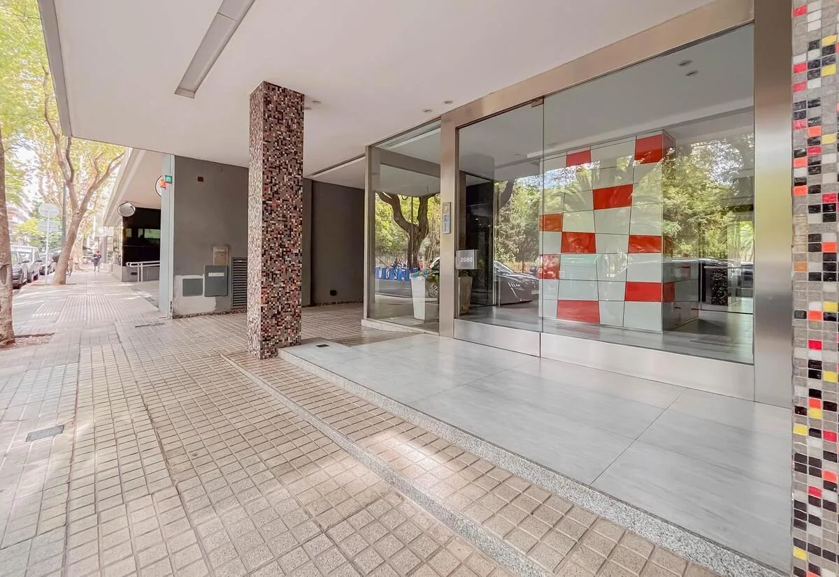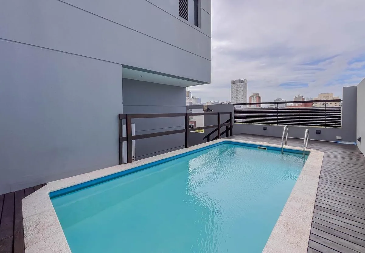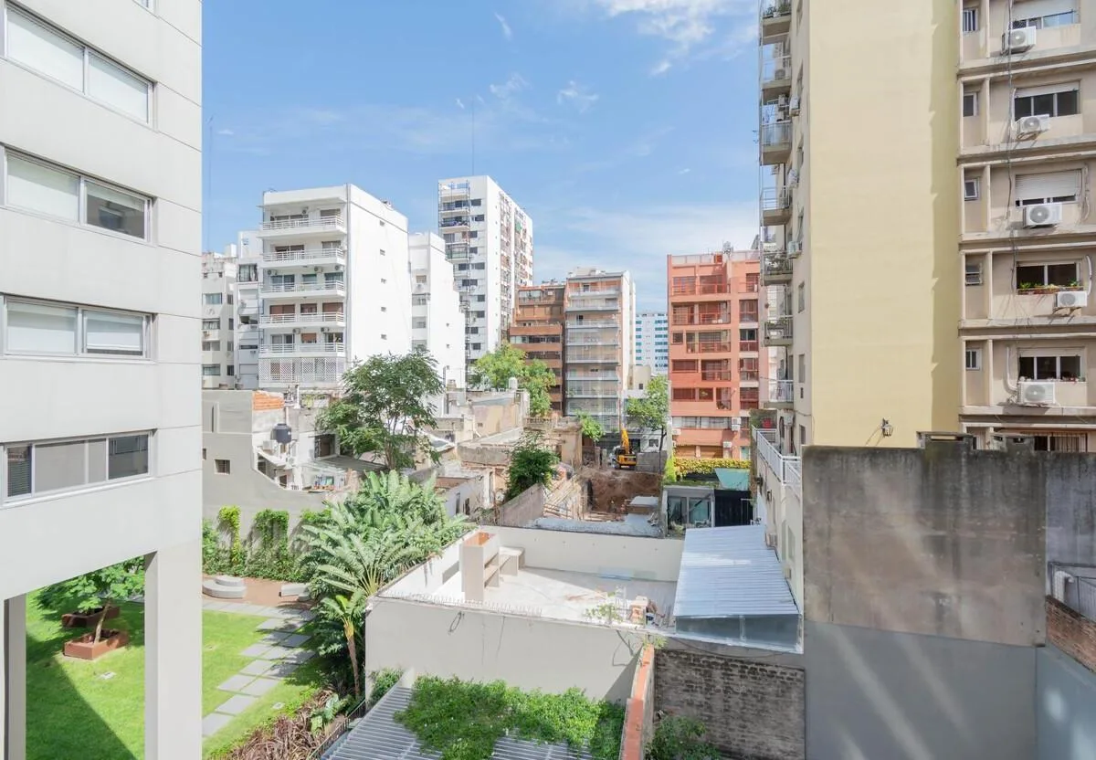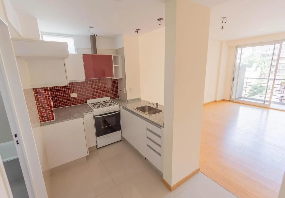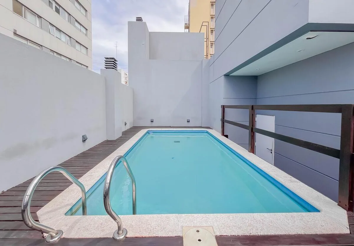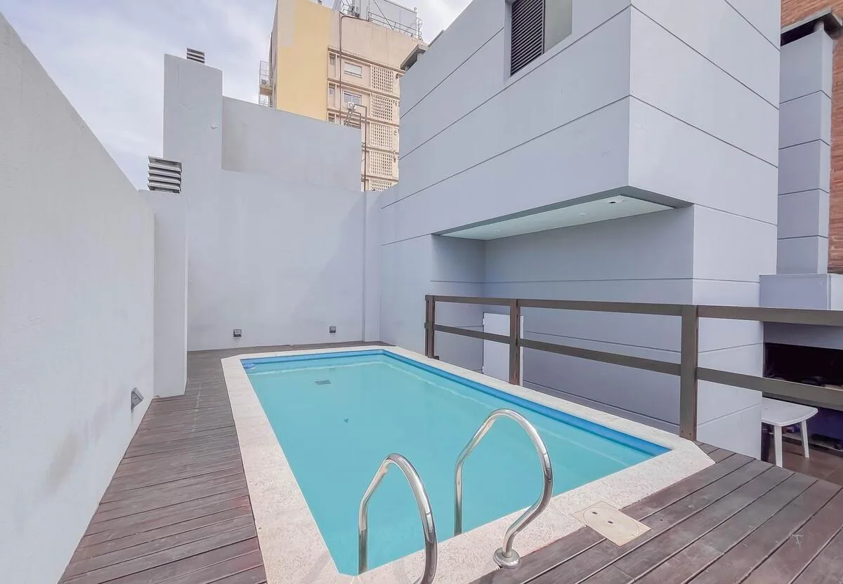 Monoambiente en Belgrano, en un edificio de perfil moderno. La unidad cuenta con un ambiente con salida a balcón al frente mediante un gran ventanal, cocina integrada con muebles bajo mesada y alacena y espacio de guardado, y baño completo con bañera. Incluye pisos de madera y aire acondicionado, y el edificio dispone de pileta y sector con parrilla.
