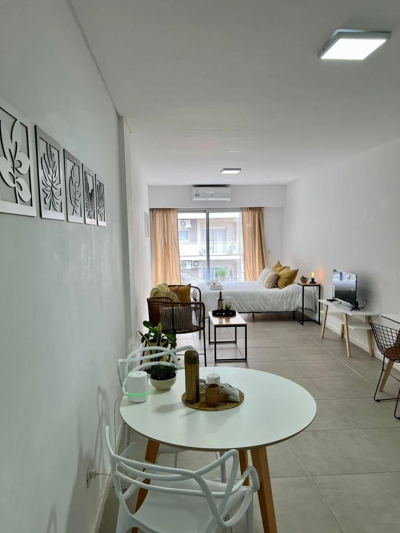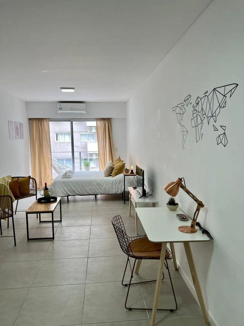 Departamento monoambiente de Belgrano con balcón al frente. Amoblado y equipado con cama Queen, cocina completa, heladera, escritorio, mesa de comedor, placard en el hall de entrada y baño completo con bañera. Incluye aire acondicionado frío-calor, smart TV y mesa de trabajo. El edificio cuenta con terraza con parrilla y laundry. El valor corresponde a alquiler temporario; expensas, agua, luz e internet quedan a cargo del inquilino. Disponible a partir del 4 de mayo de 2026.