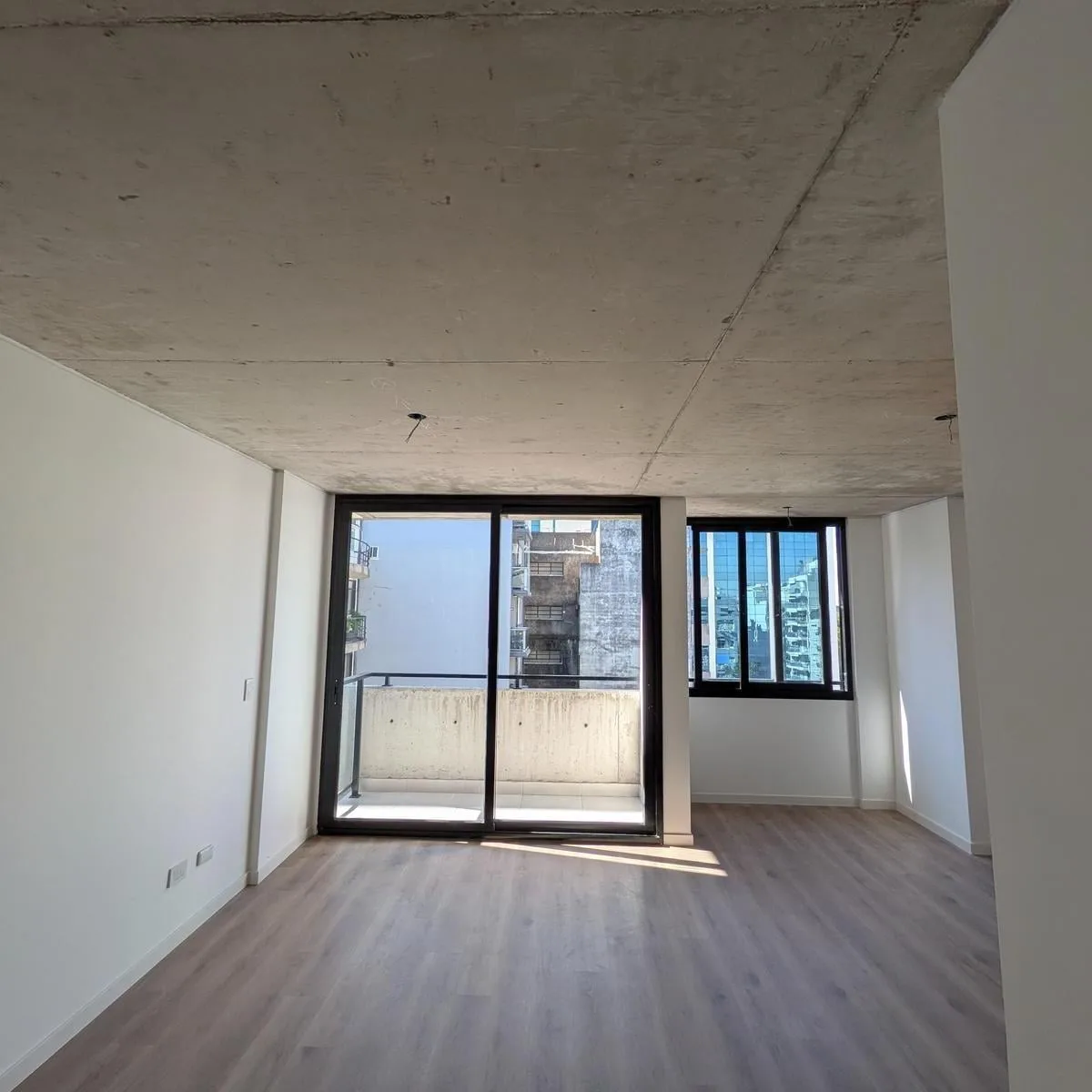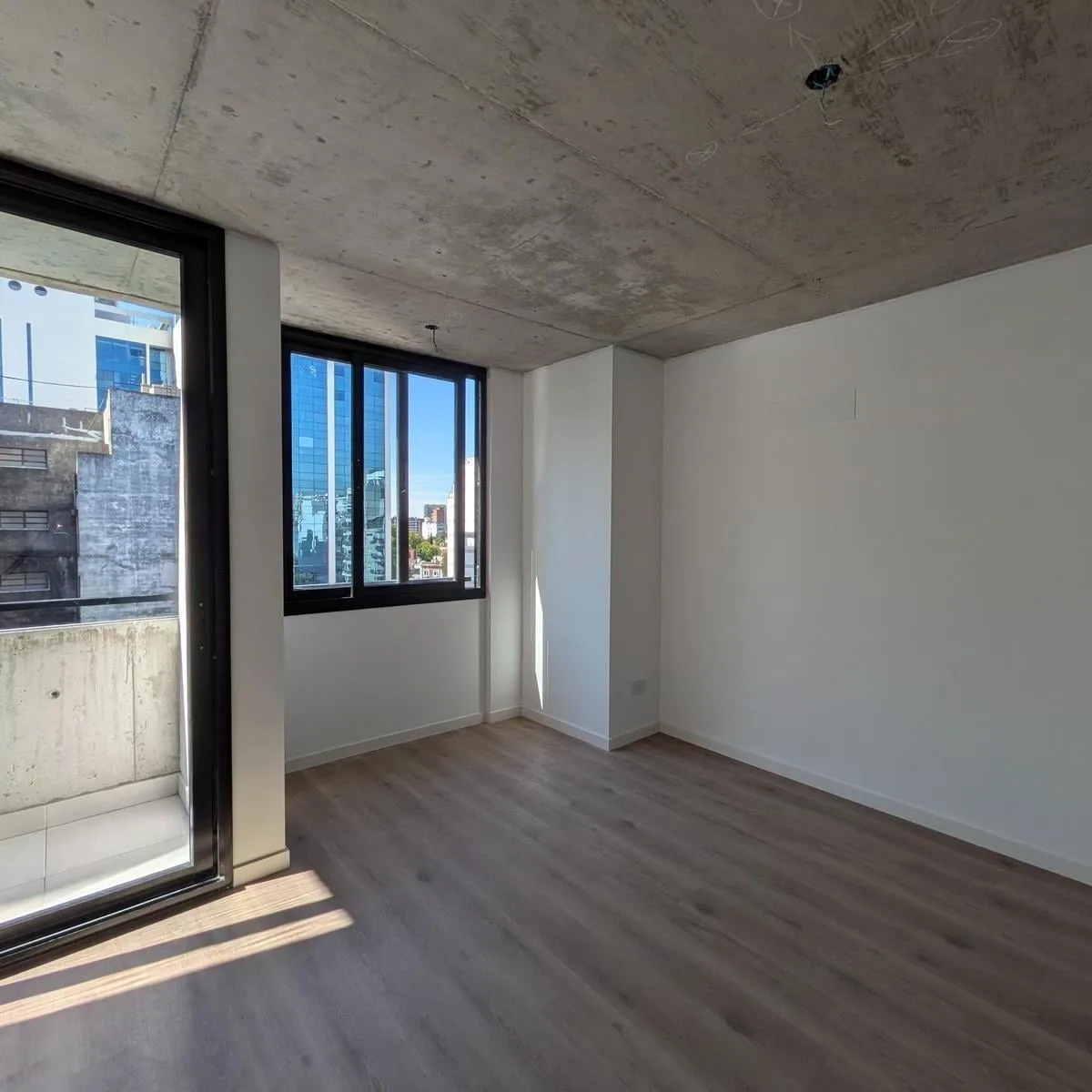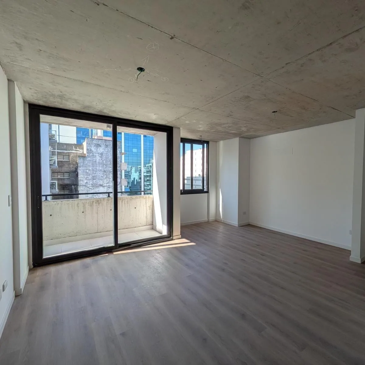 Monoambiente de 39 m² totales en Belgrano, al contrafrente, en el 7° piso. Cuenta con balcón, gran ventanal de piso a techo, cocina integrada con barra y baño completo revestido en porcelanato. Incluye aire acondicionado individual. El edificio tiene encargado, SUM con terraza y laundry.