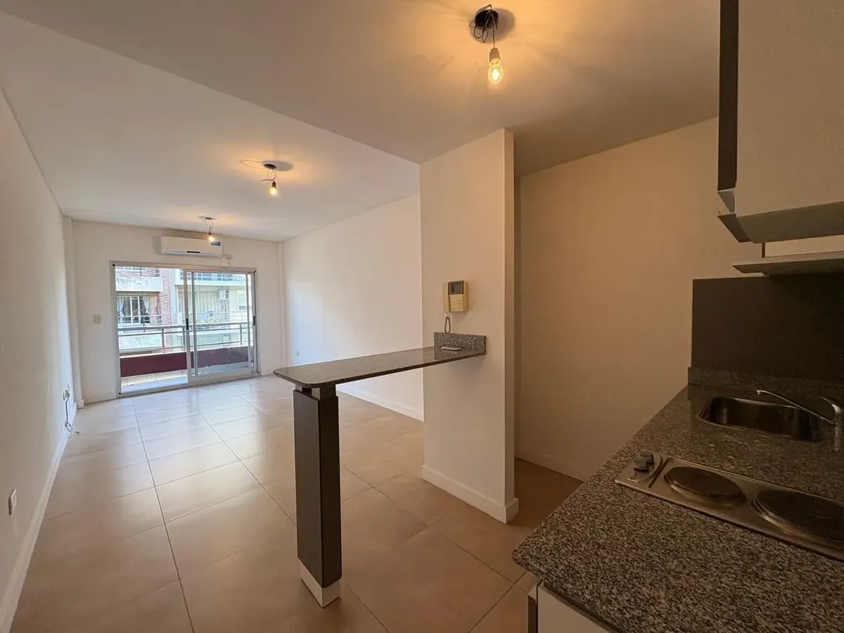 Departamento monoambiente de 1 ambiente con balcón al frente en Belgrano. Cuenta con cocina eléctrica con barra desayunadora, baño completo, aire acondicionado y placard pequeño al ingreso. El edificio dispone de laundry, SUM con parrilla y solarium, a 2 cuadras de la estación Congreso de Tucumán de la Línea D del Subte. El contrato es por 2 años con ajuste cuatrimestral por IPC CABA y no admite mascotas.