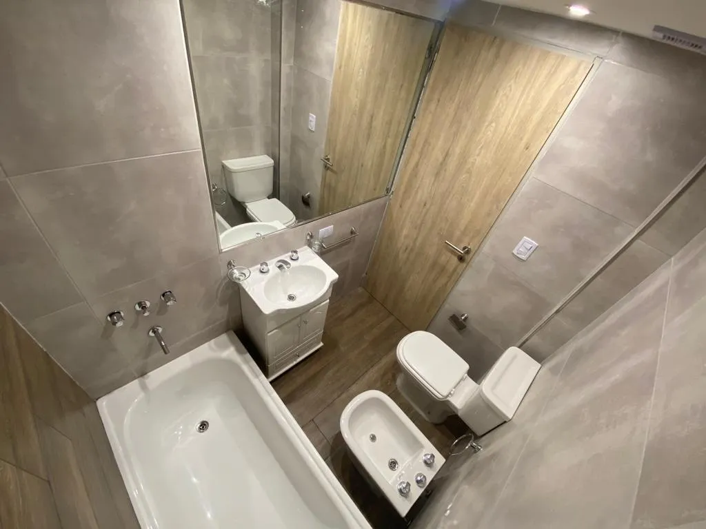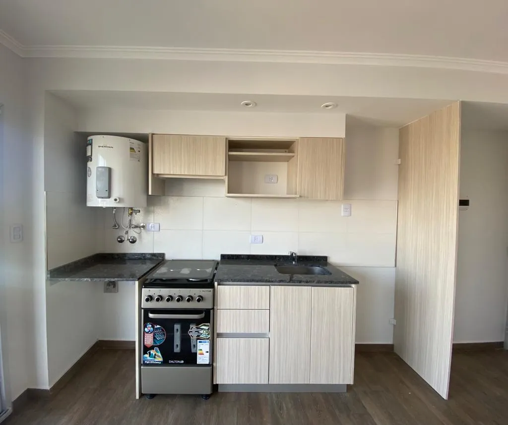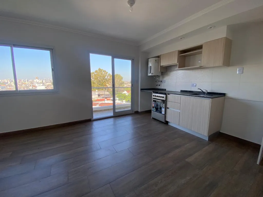 Departamento monoambiente de 5° piso contrafrente en Villa Bosch, con balcón. Cuenta con espacio único, cocina integrada con mueble de cocina y alacena, baño completo con bañera y espacio para conexión de lavarropas. Tiene preinstalación para aire acondicionado y agua caliente por termo eléctrico.