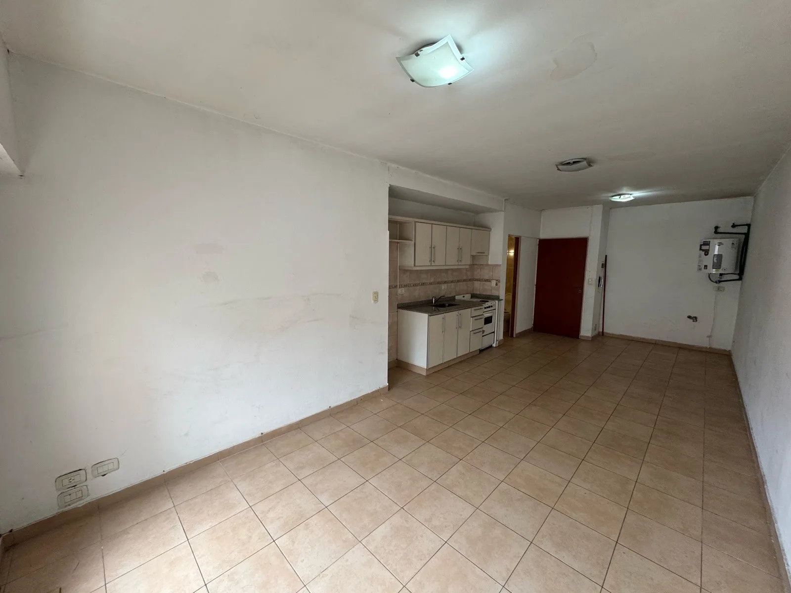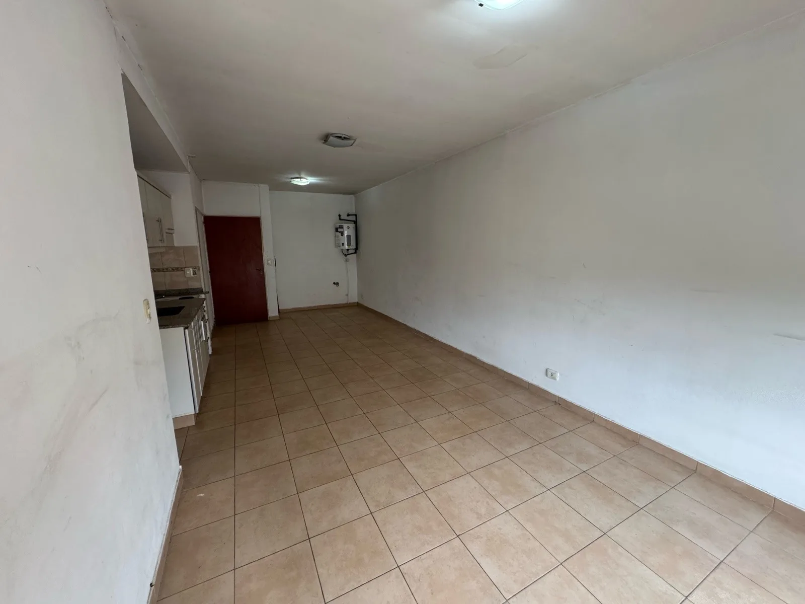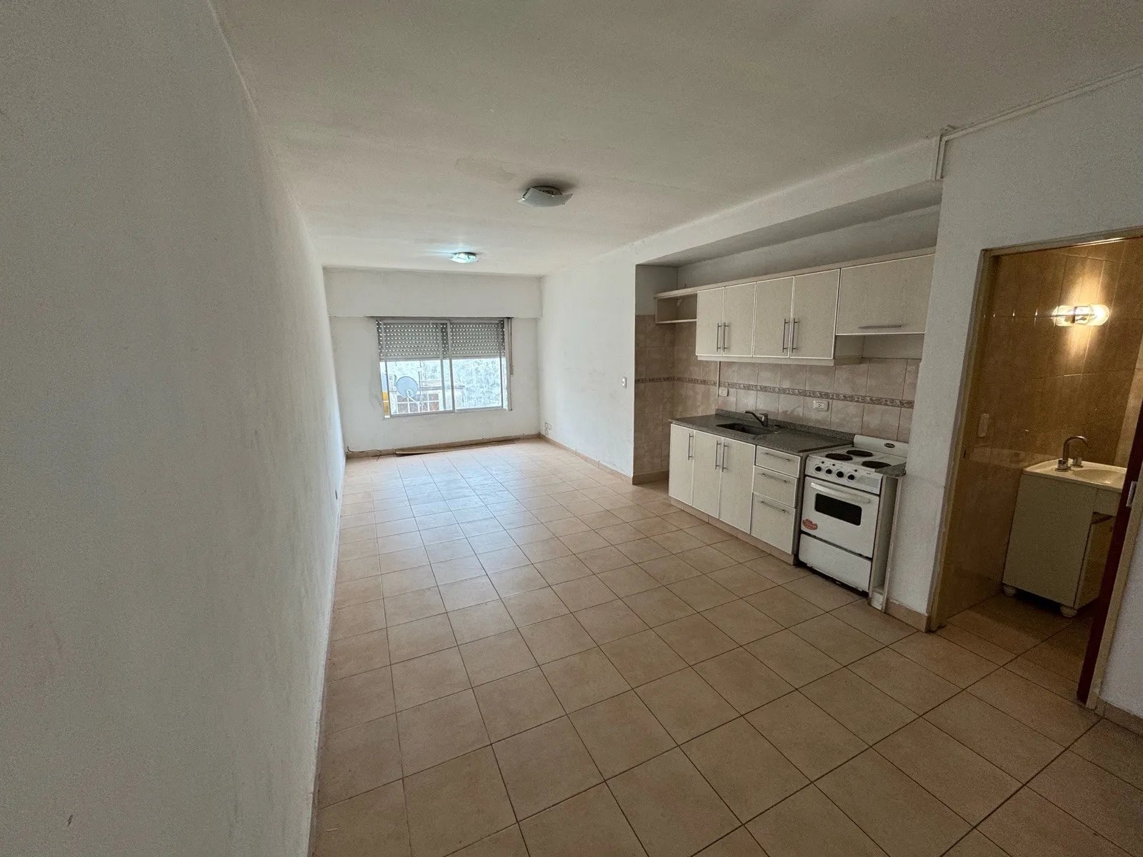 Departamento monoambiente en alquiler, en el 2do piso, con acceso por escaleras con descansos. Cuenta con ambiente principal con cocina equipada con bajo mesada y alacenas, sin artefacto de cocina, y baño completo con ducha y termotanque eléctrico. El edificio dispone de terraza de uso común y la unidad está desocupada.