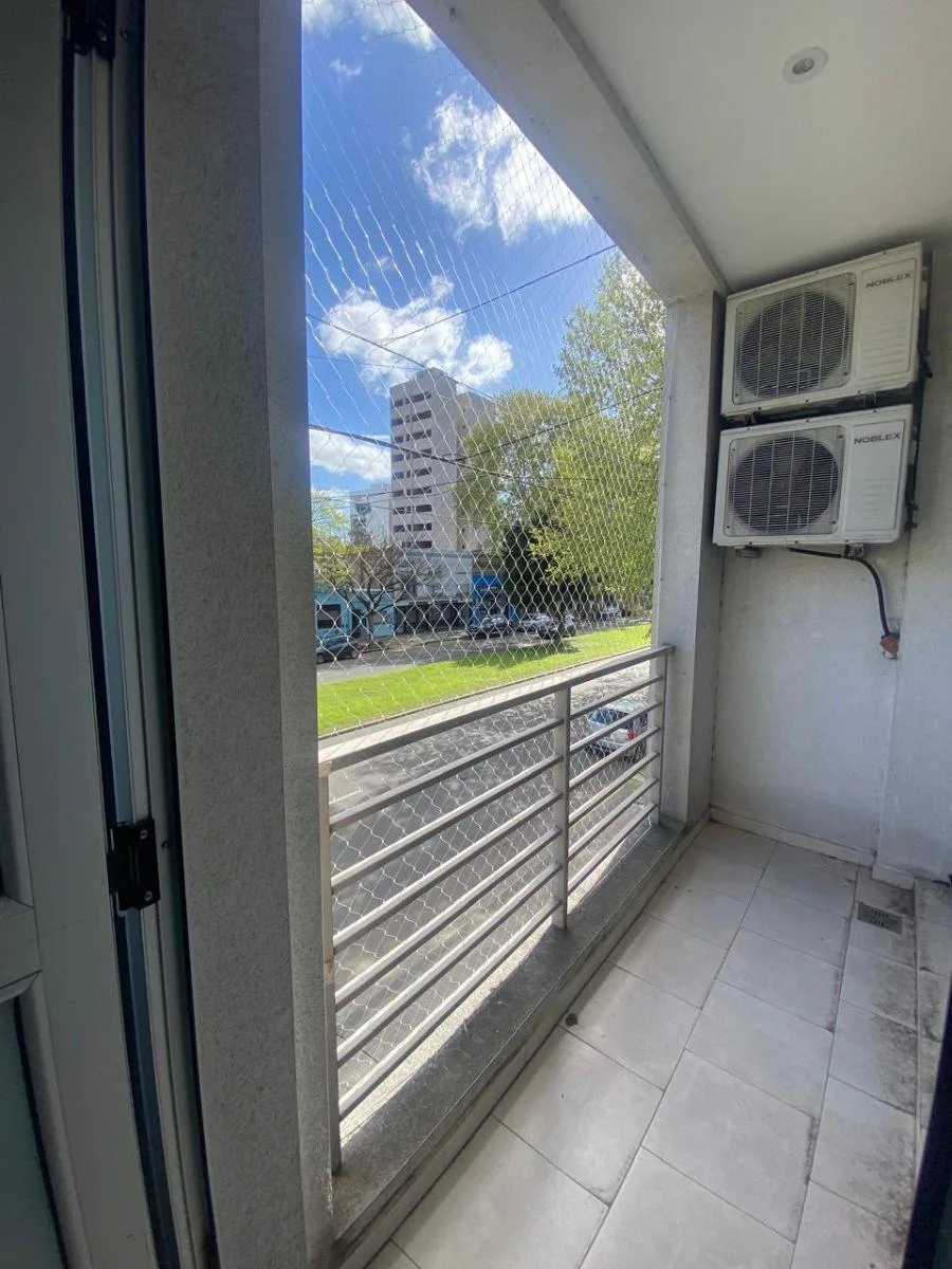 Departamento de 1 dormitorio en La Plata, piso 1º B al frente. Tiene 8 años de antigüedad y cuenta con 2 aires acondicionados instalados, termotanque a gas y cocina con conexión para campana extractora. Sin expensas por el momento; el edificio tiene encargado/portero para mantenimiento y limpieza de espacios comunes. Se alquila con 3 garantes y contrato por 24 meses con ajuste cuatrimestral según IPC. Está a 100 m del Bosque y a 300 m de facultades.