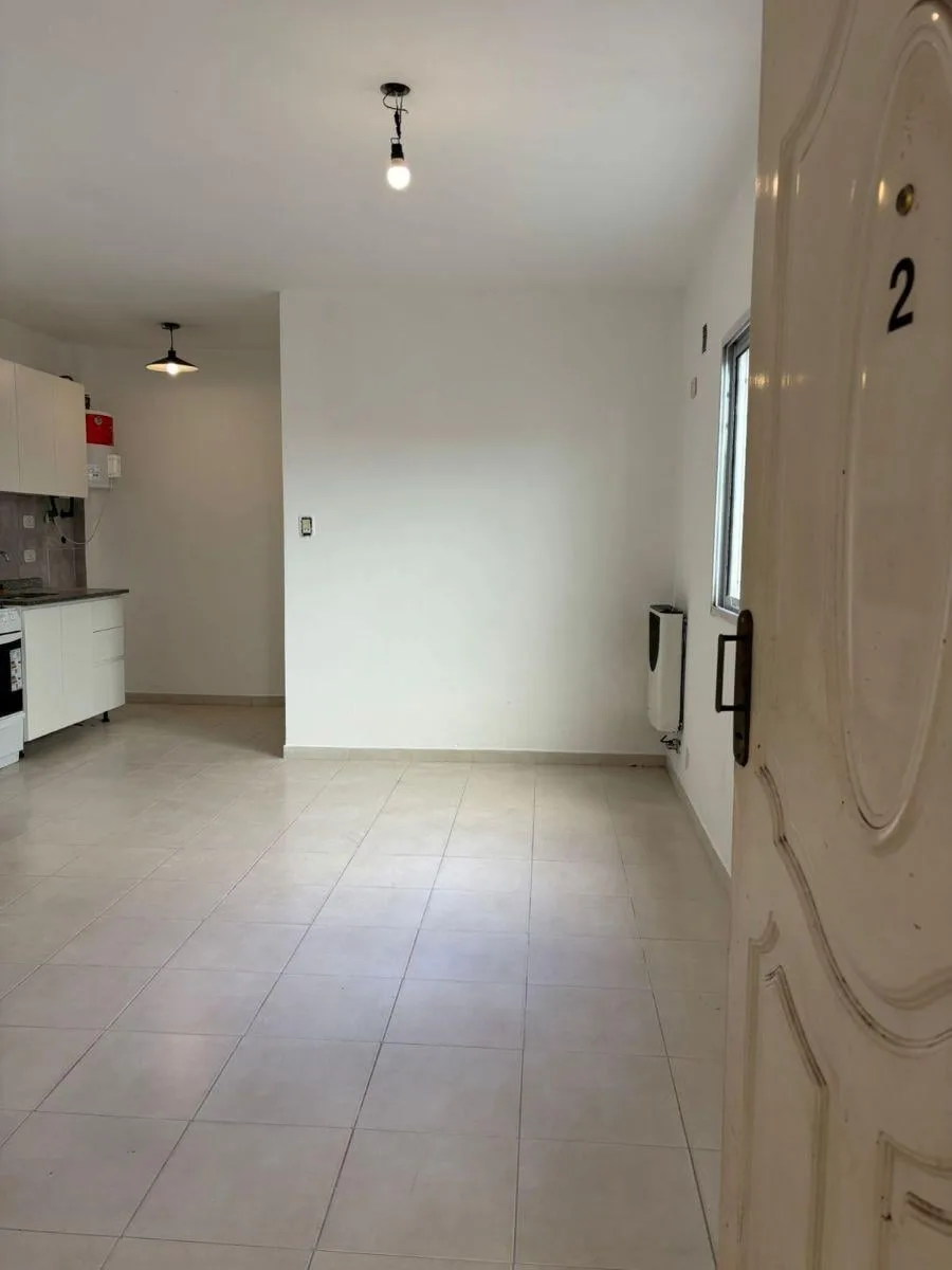 Departamento monoambiente en planta baja en Temperley. Cuenta con bajo mesada, mesada, alacena, artefacto de cocina, termotanque eléctrico y estufa de tiro balanceado. Tiene baño completo con bañera y patio libre para estacionar un auto, sin cochera asignada al departamento. El edificio está a dos cuadras de Av. Almte. Brown y a cuatro cuadras de la estación de trenes de Temperley.