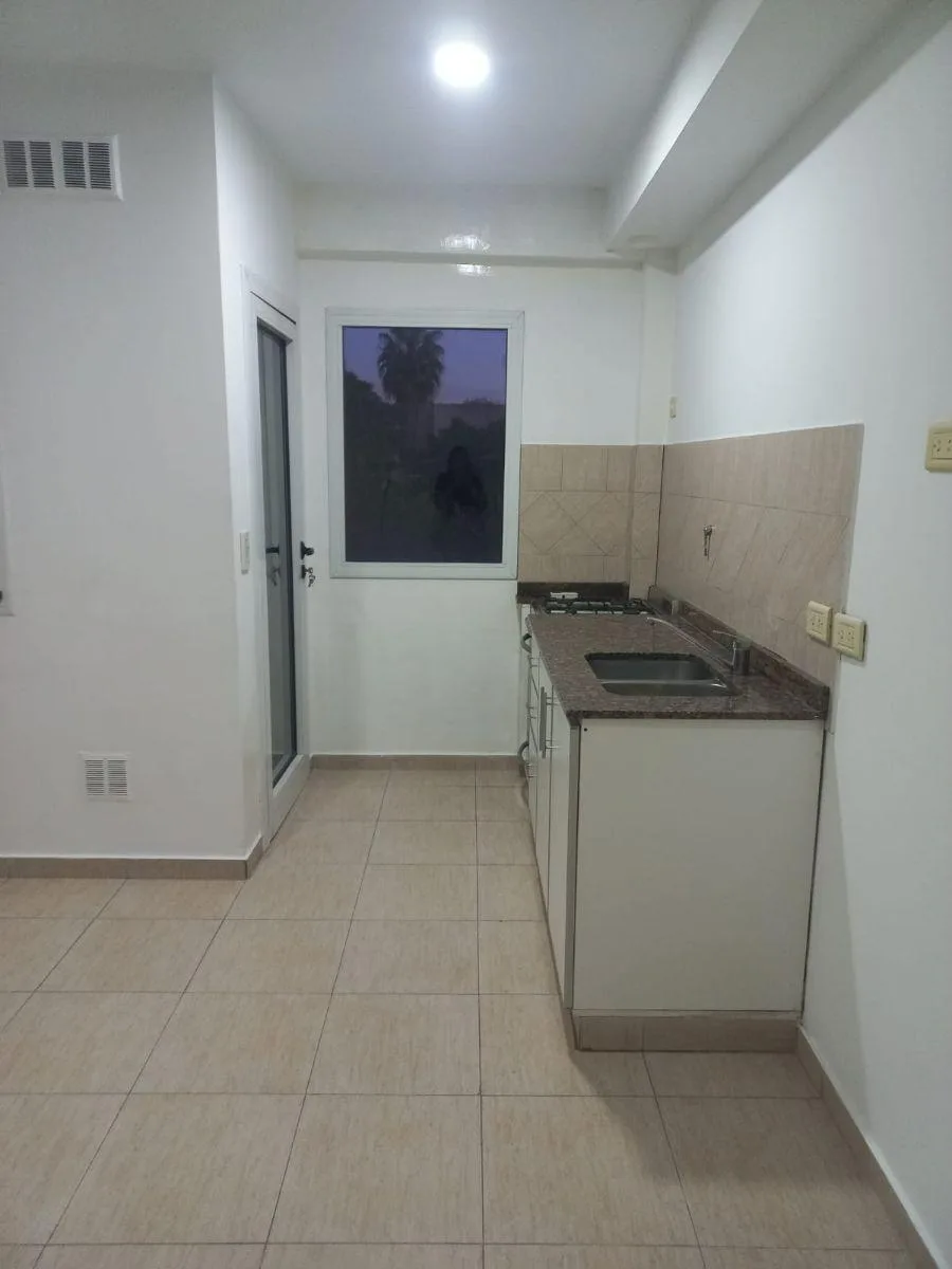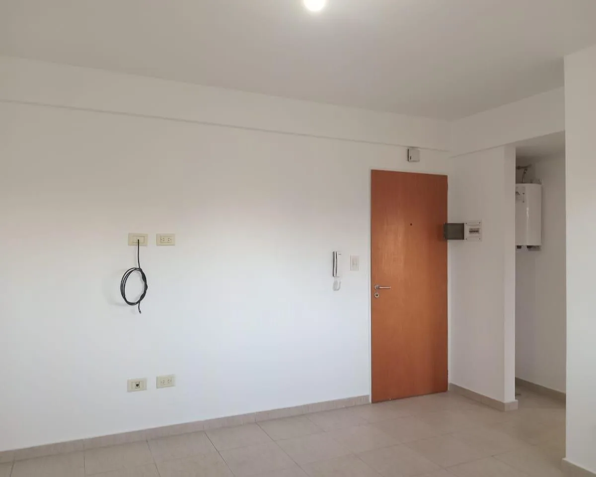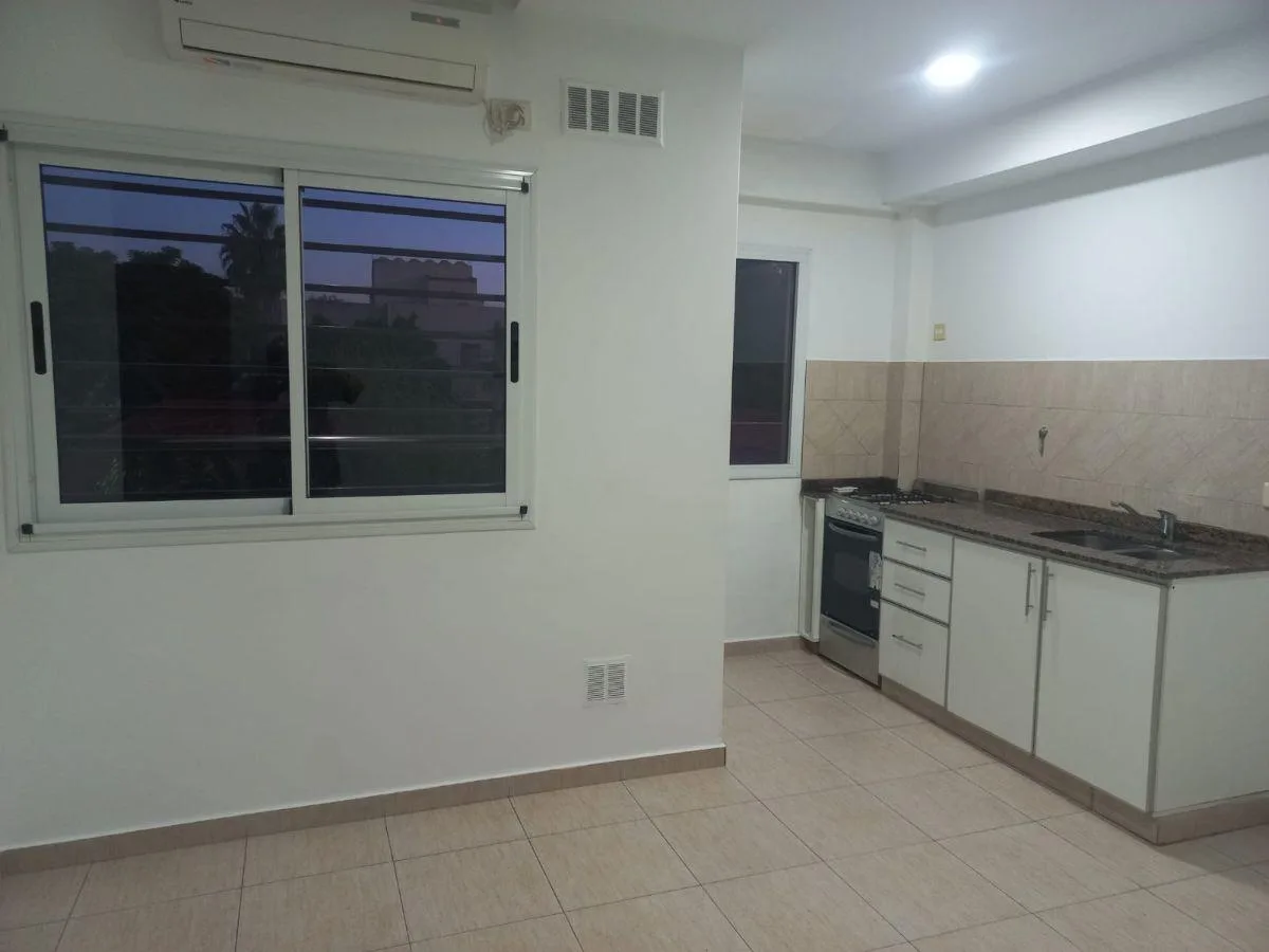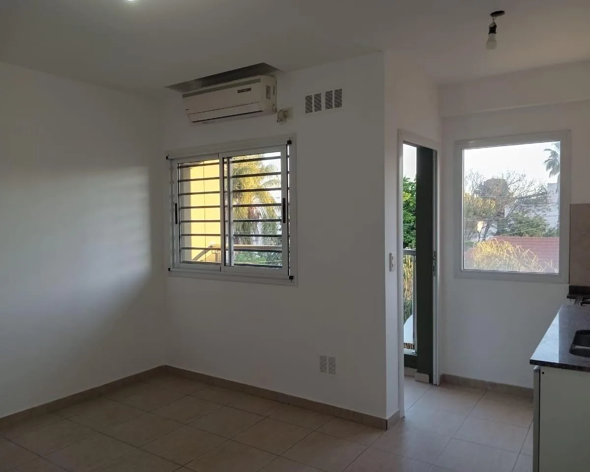 Departamento de 2 ambientes al frente, en 2do piso. Living comedor con cocina integrada con bajo mesada; cocina y aire acondicionado. Balcón a la calle, espacio para lavarropas y termo eléctrico. Baño completo con bañera y revestimiento en cerámica, dormitorio con placard y tiro balanceado. El alquiler es más servicios, municipal y expensas.