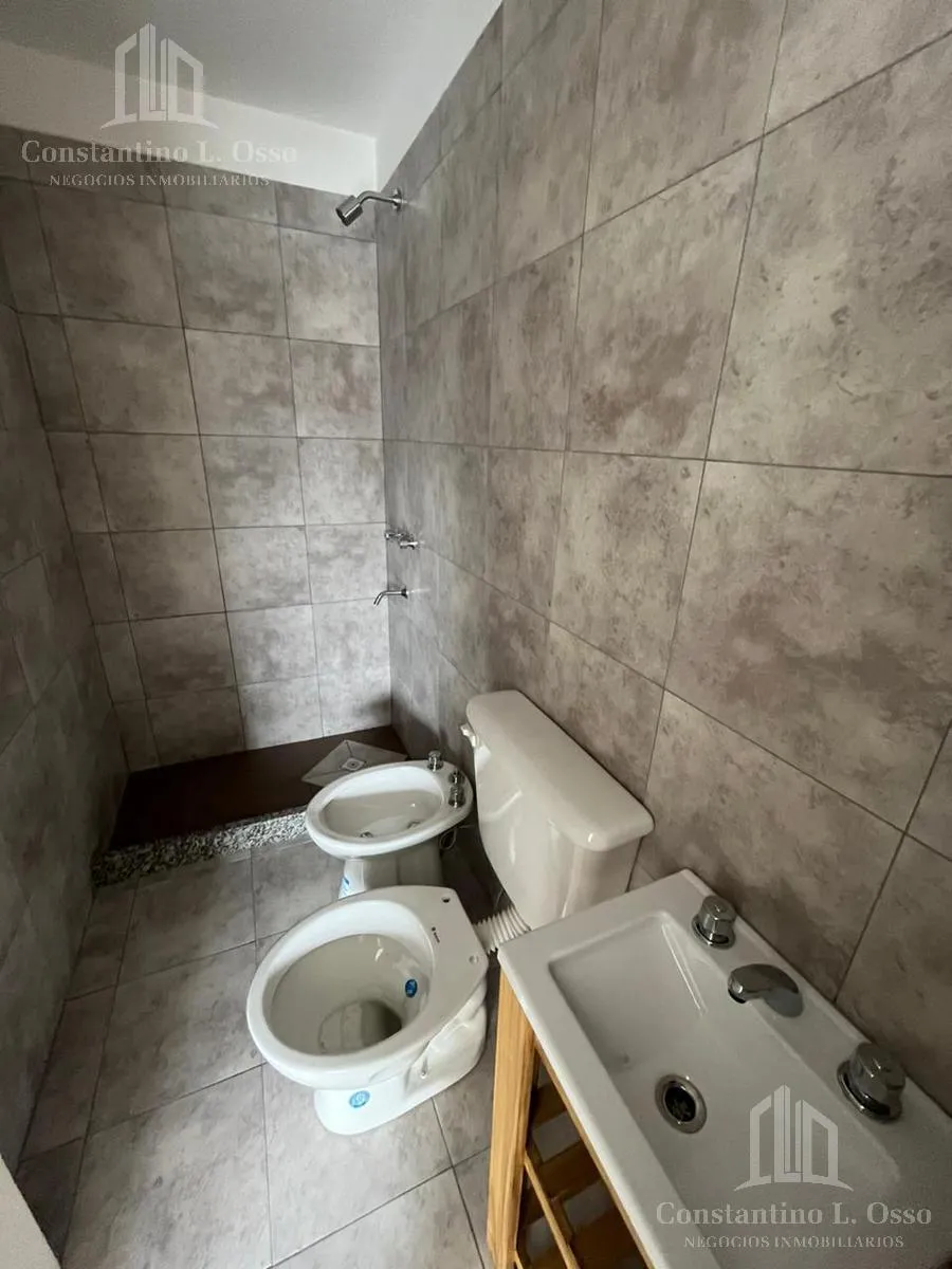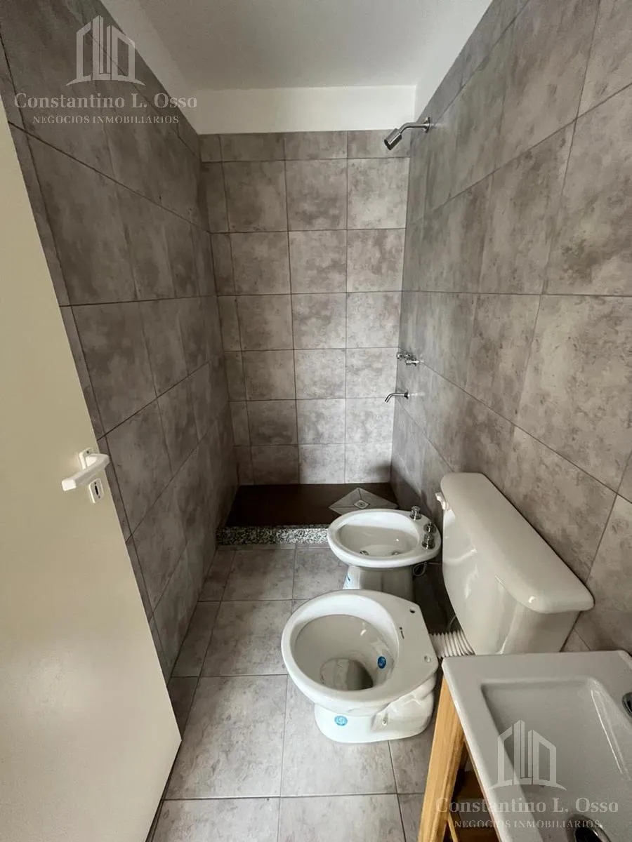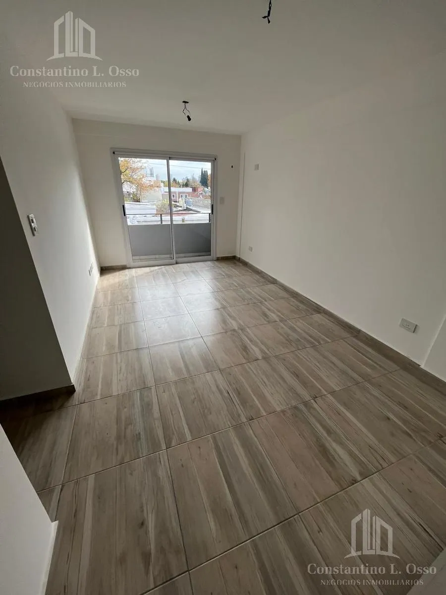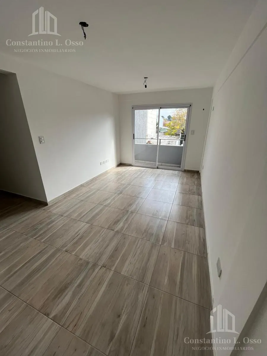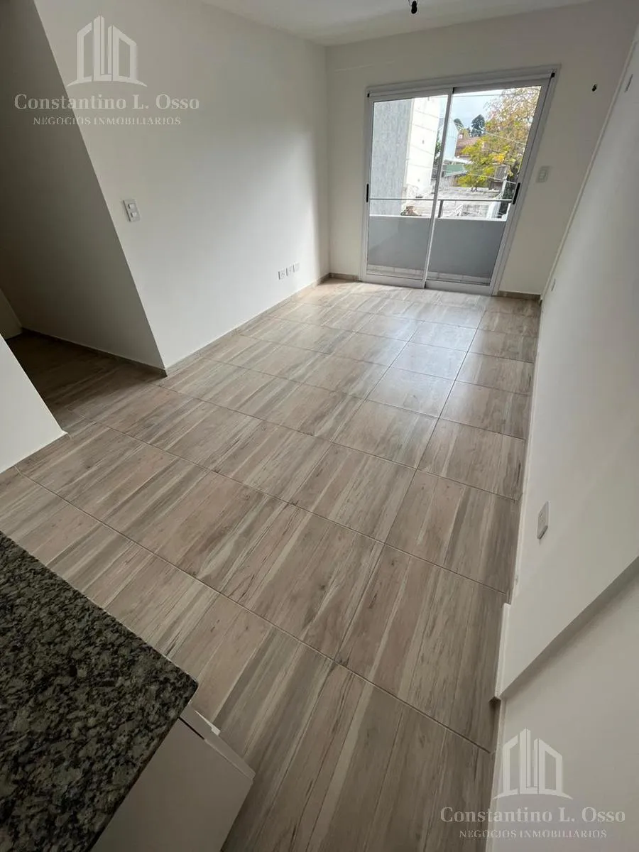 Departamento monoambiente a estrenar en alquiler, al frente, en Temperley. Se ubica en el 2do piso por escalera. Se entrega con cocina y termo. Requisito de ingreso: seguro de caución. Venta con renta.