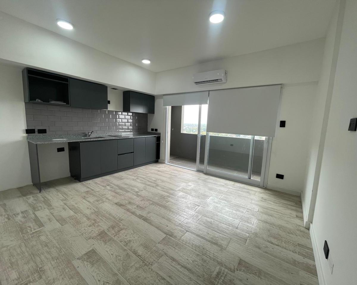 Departamento monoambiente a estrenar en piso 9, con vista abierta. Cocina eléctrica integrada, baño completo con mampara de vidrio y placard con interiores terminados. Incluye aire acondicionado frío/calor y pisos de porcelanato simil madera. El edificio cuenta con SUM con parrilla, totem de seguridad 24 hs, apto profesional, apto mascotas y grupo electrógeno.