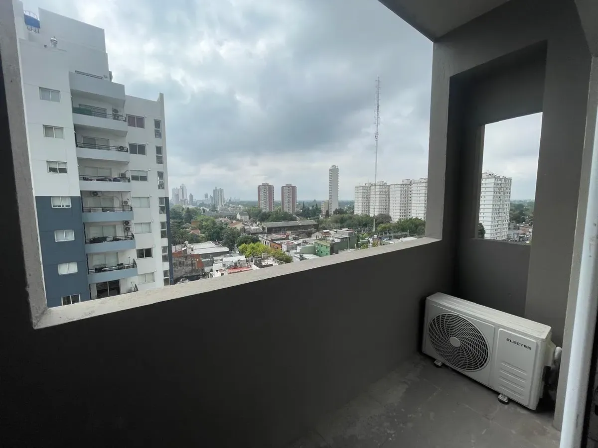 Monoambiente a estrenar en Temperley, en el piso 9, con vista abierta. Cocina eléctrica integrada y baño completo con mampara de vidrio. Incluye placard con interiores terminados y aire acondicionado frío/calor instalado, con pisos de porcelanato simil madera. El edificio cuenta con SUM con parrilla y grupo electrógeno, además de tótem de seguridad 24 horas, apto profesional y apto mascotas. Contrato por 2 años con ajuste trimestral por IPC; requisitos con justificación de ingresos y recibo de s
