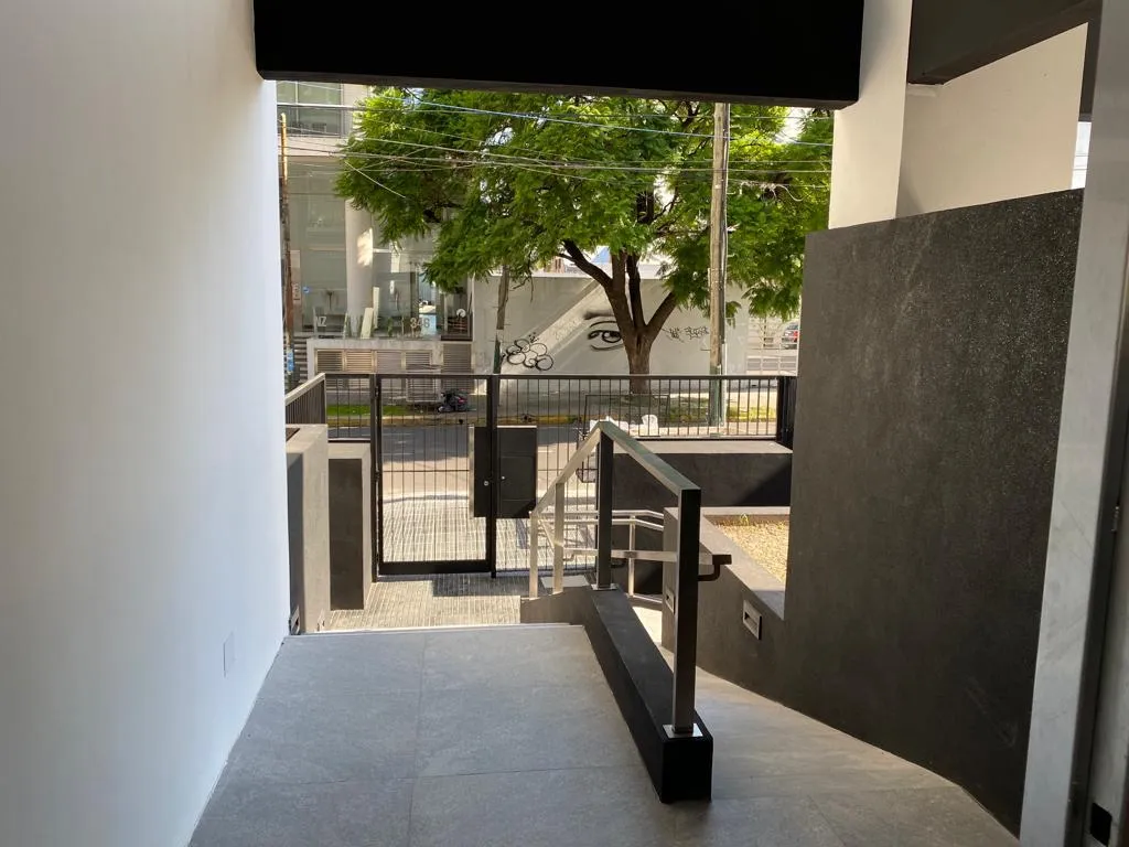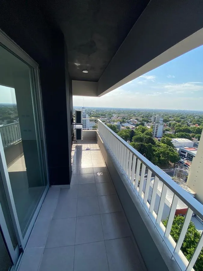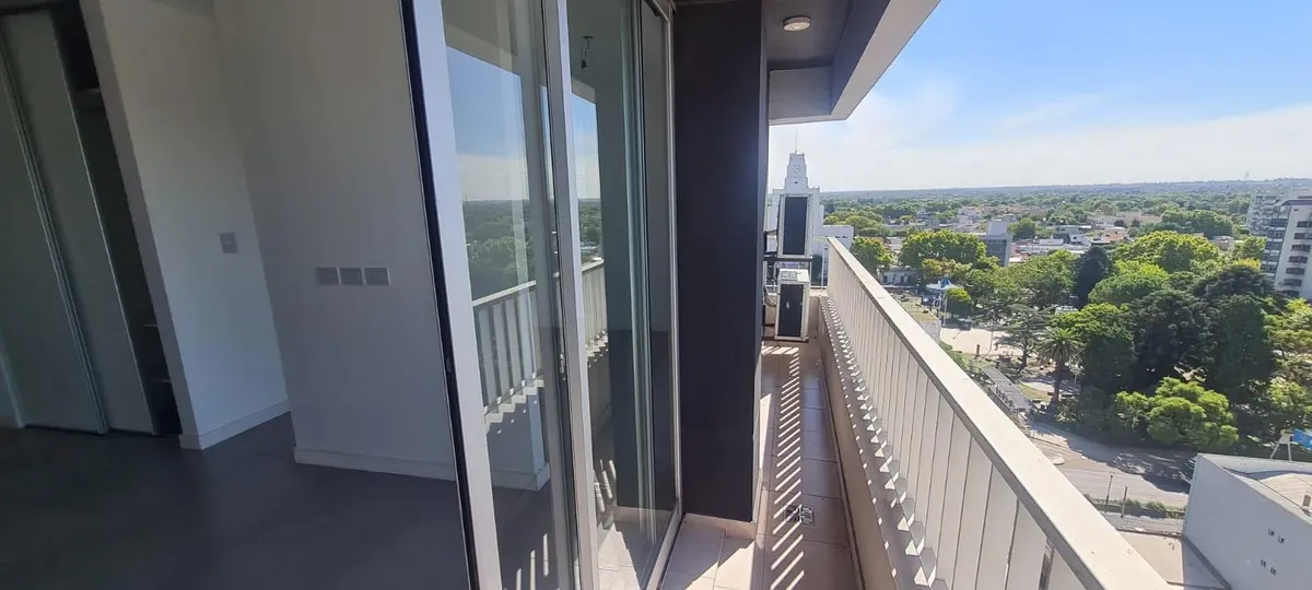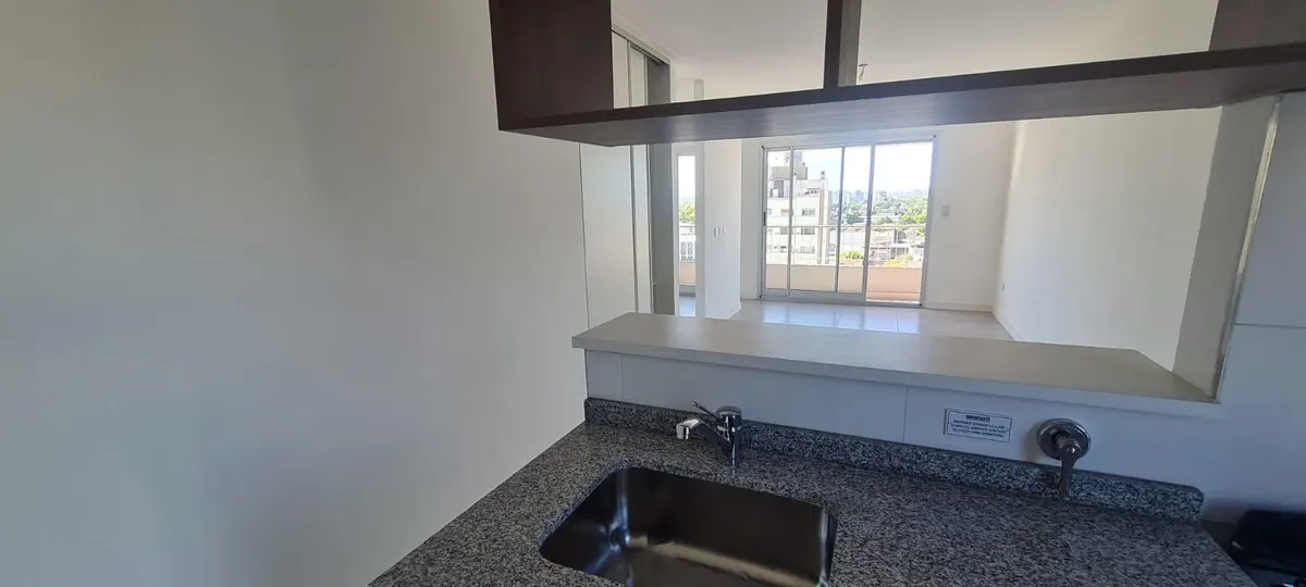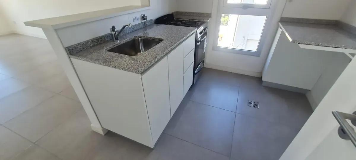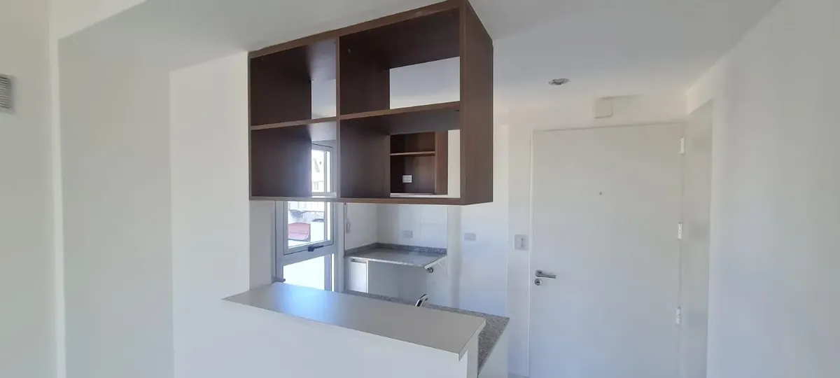 Departamento monoambiente divisible nuevo a estrenar de 44 m² con balcón y cochera, orientación norte. El estar-comedor tiene piso de porcelanato y la cocina cuenta con amoblamiento bajo y sobre mesada, con toma y descarga para lavarropas. Baño completo con vanitory y bañera, y equipo de aire acondicionado split frío-calor. El contrato es por 24 meses con ajustes trimestrales por IPC; el alquiler se abona más expensas comunes y ABL. No se aceptan mascotas. El edificio cuenta con SUM con cocina a