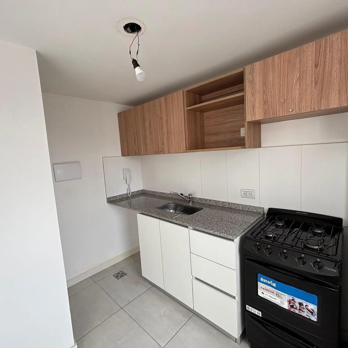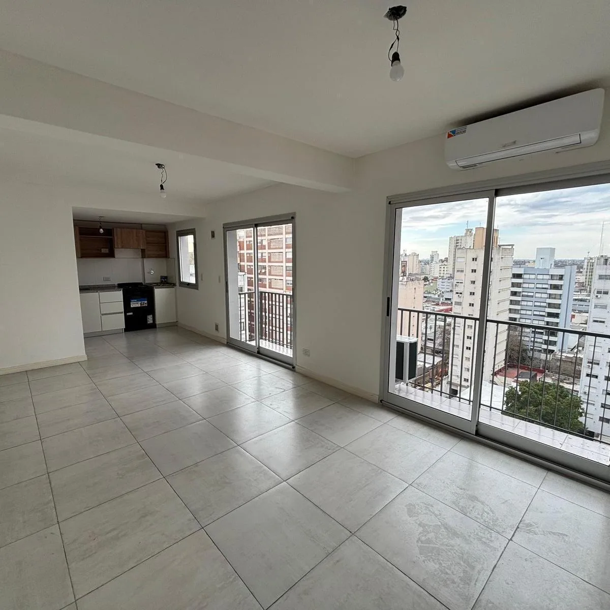 Monoambiente con cochera. Cuenta con estar con piso cerámico y balcón al contrafrente, cocina con amoblamiento bajo y sobre mesada, y baño completo con vanitory y bañera. La cochera es semicubierta. Alquiler por 2 años con ajuste trimestral por IPC, además de expensas y ABL.