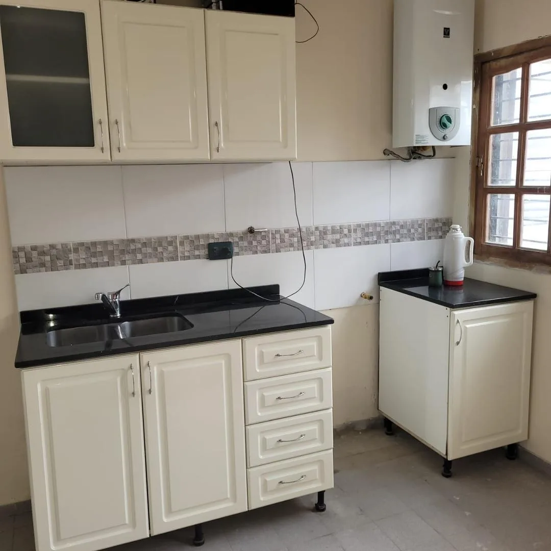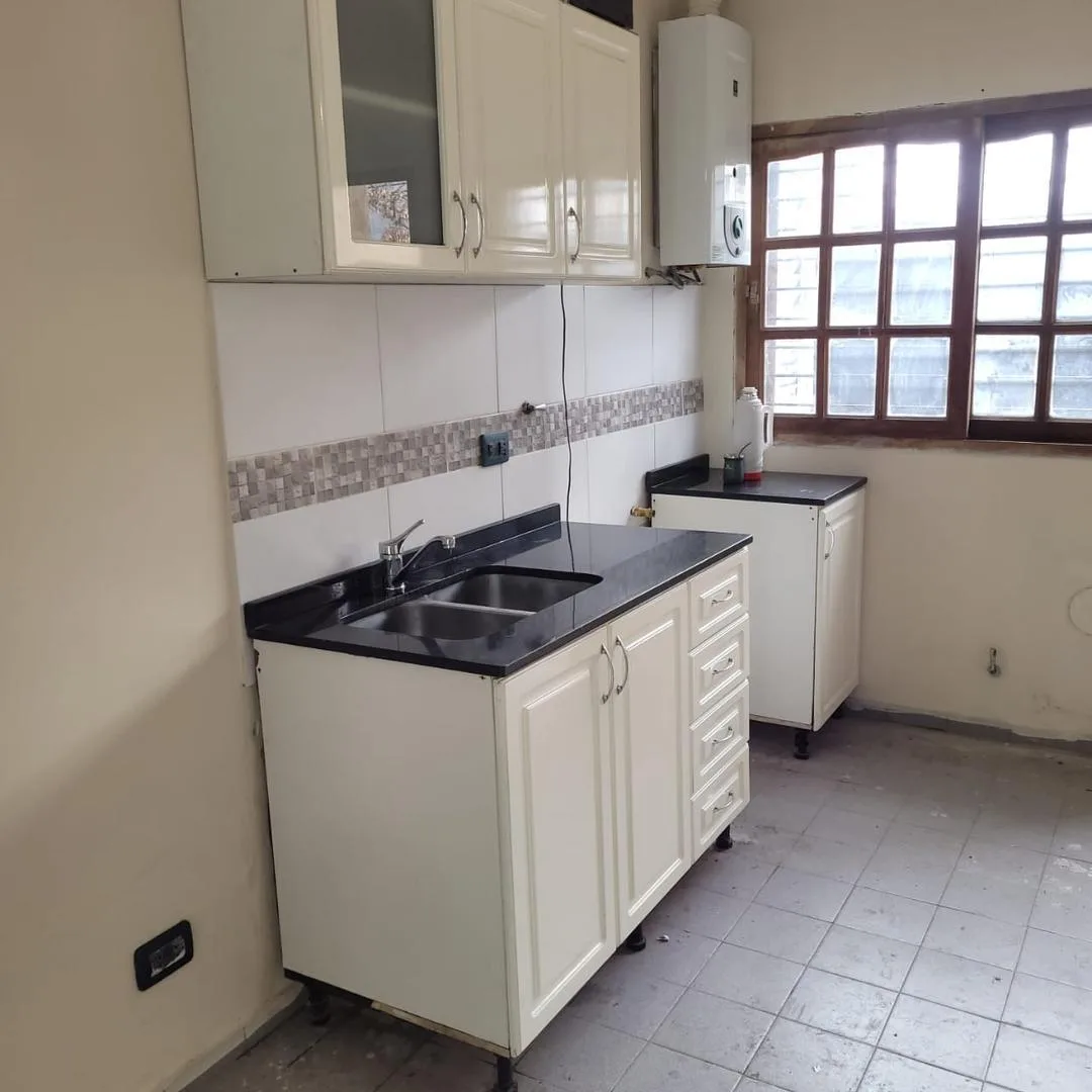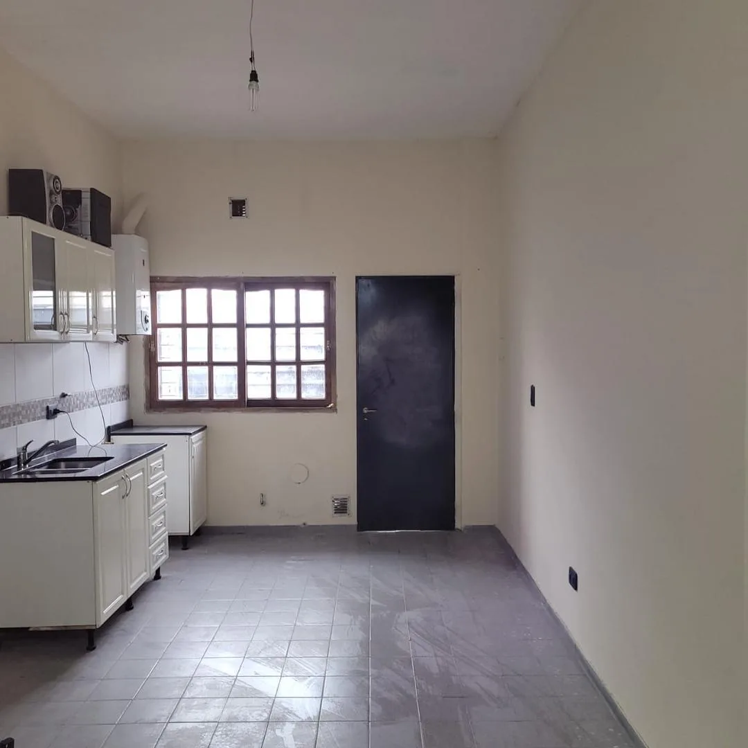 Monoambiente a estrenar al frente en planta baja, con frente de rejas. Incluye cocina con muebles bajo y sobre mesada, mesada de mármol con bacha doble de acero inoxidable y grifería monocomando (sin artefacto de cocina), calefón, living-comedor-dormitorio con piso cerámico y baulera, y baño completo con ducha. Patio con pileta de lavar e instalación para lavarropas, y espacio para estacionar un vehículo en la vereda. Alquiler $400.000 + servicios; no paga expensas. Contrato por 2 años con ajust