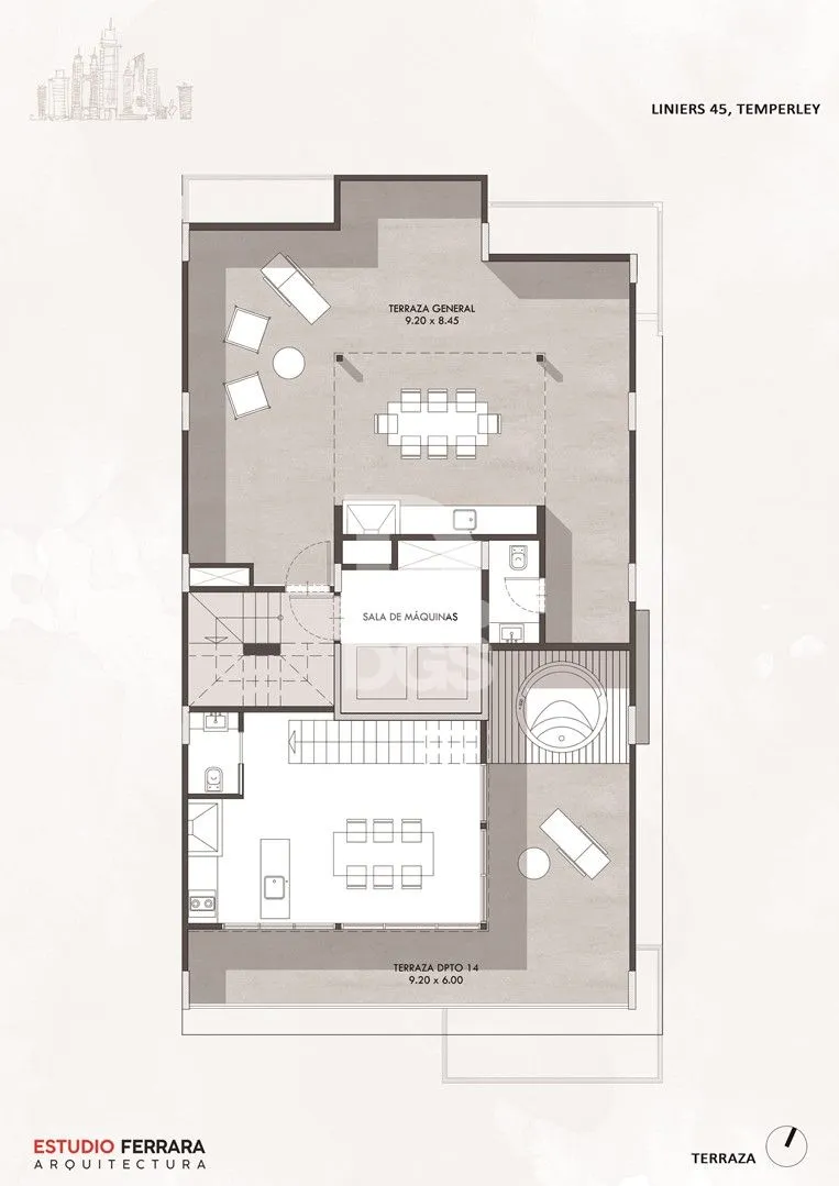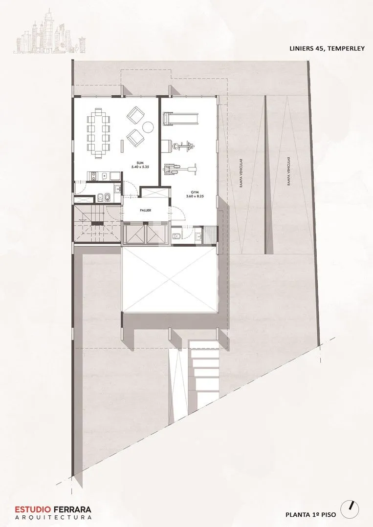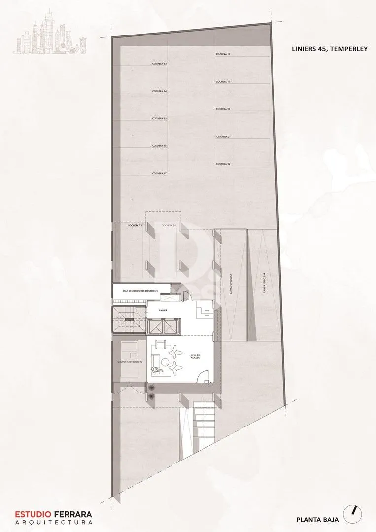 Departamento monoambiente de 29,10 m² cubiertos en Temperley, con balcón al contrafrente de 3 m² y orientación norte. Baño completo con cuadro de ducha. Se entrega con horno y anáfe eléctrico, aire acondicionado frío/calor, cortina black-out e interiores de placard; en el baño hay mampara de blindex y grifería negra. El edificio cuenta con SUM, gimnasio, cerradura electromagnética, y grupo electrógeno y cámaras de seguridad en gestión. Carpintería exterior de PVC con DVH, porcelanato en baño y e