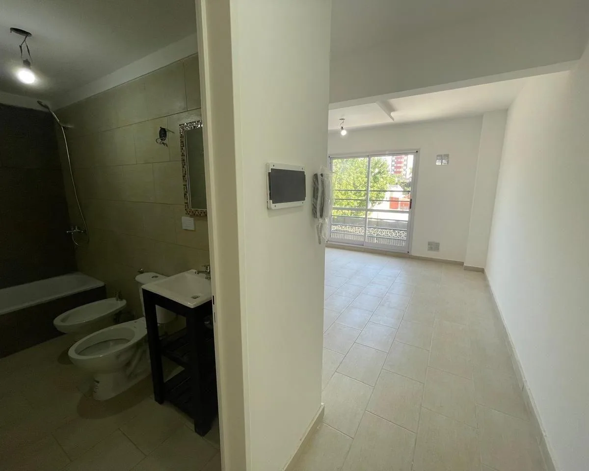 Departamento monoambiente a estrenar con terraza privada y cochera. Incluye cocina a gas, aire acondicionado frío-calor, termotanque eléctrico y baño completo. La cochera es fija descubierta y la terraza está en la azotea del edificio. El edificio cuenta con laundry. A 300 metros de la estación de Tempeley.