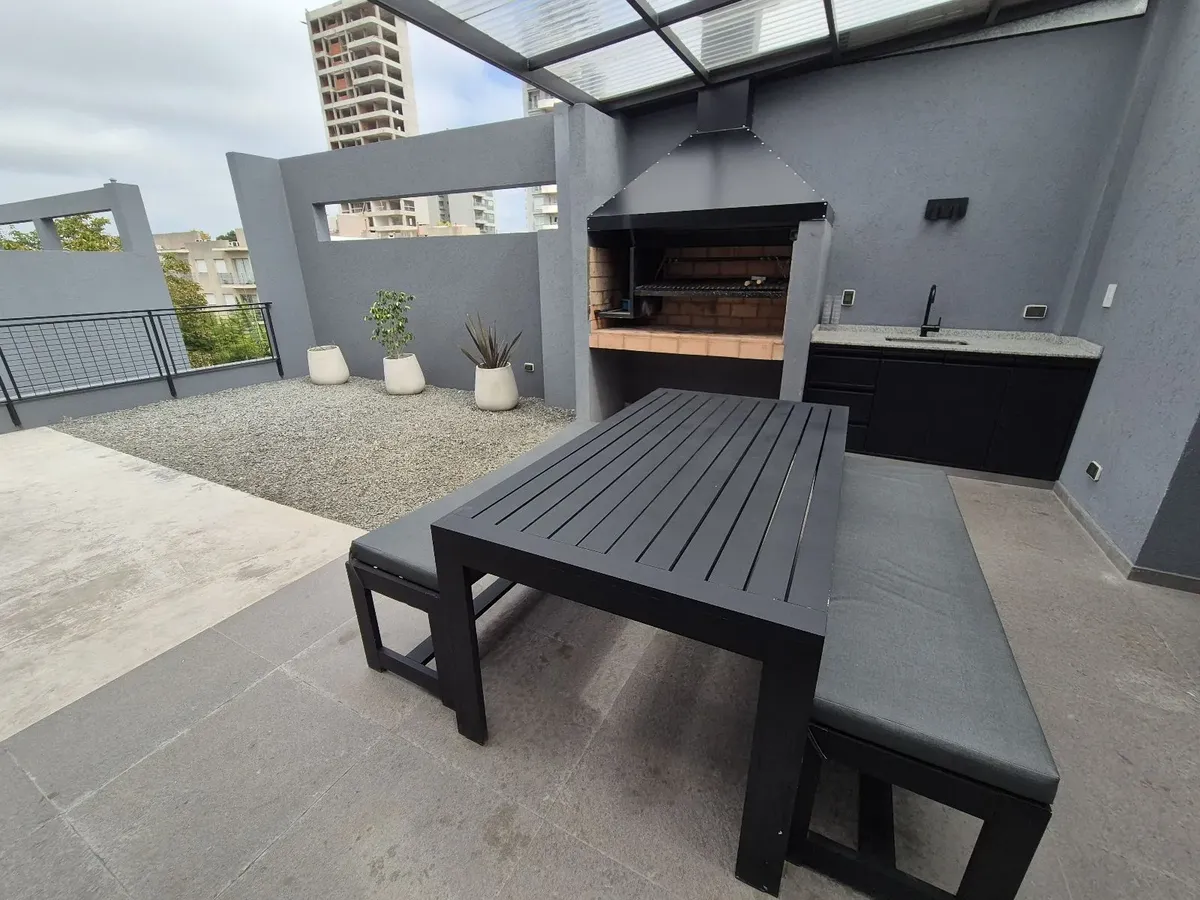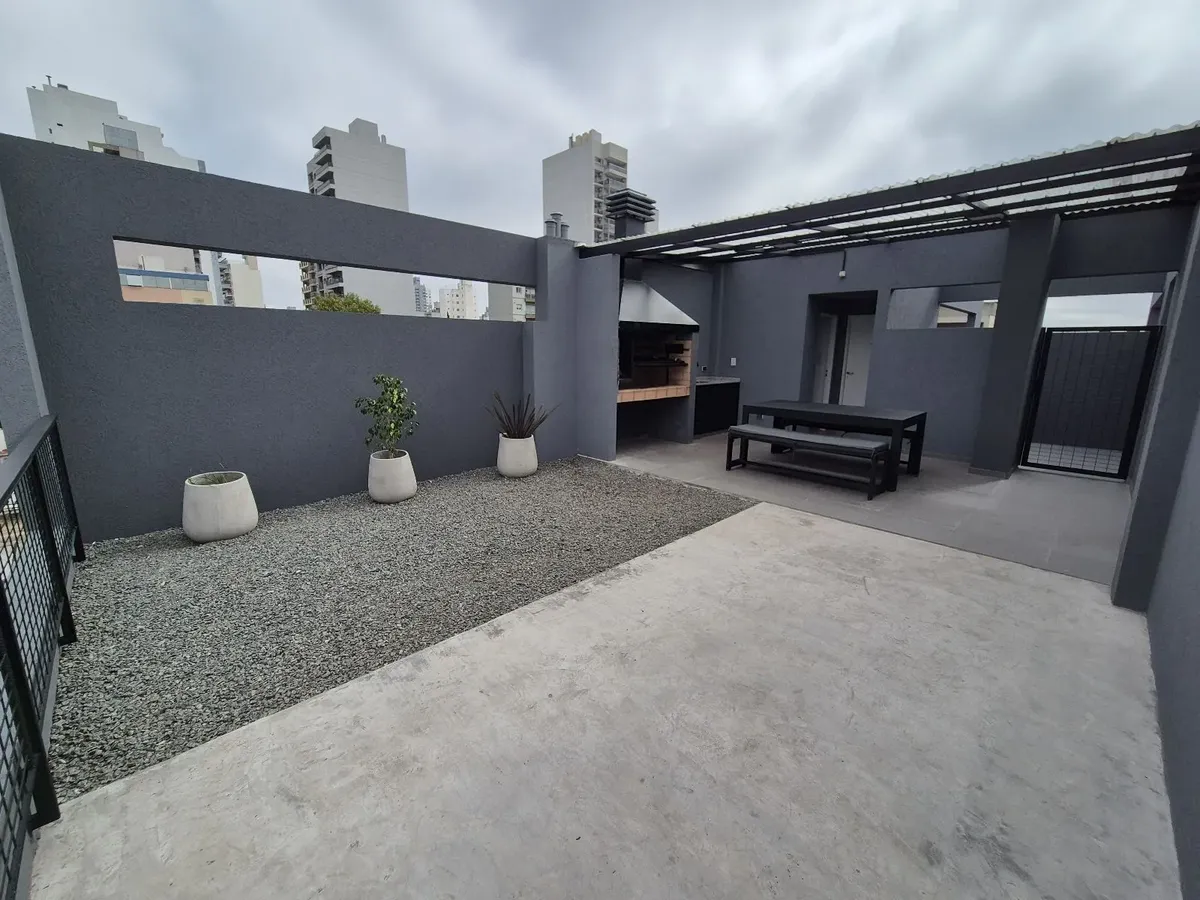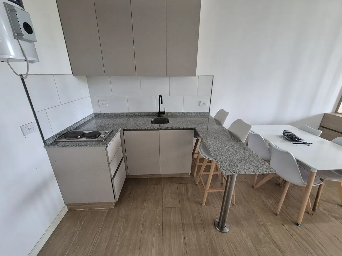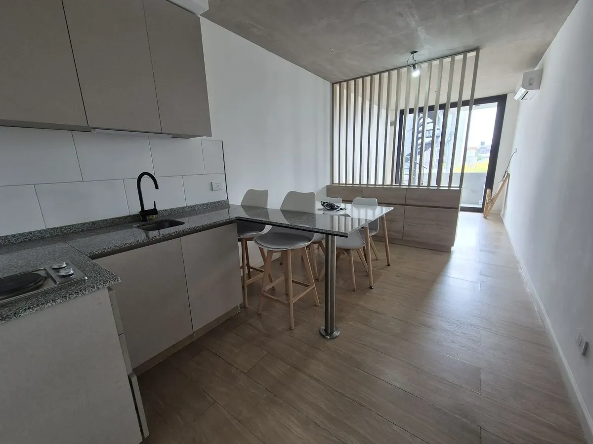 Monoambiente en alquiler de Banfield Este, en 3er piso al frente, con balcón y terraza propia. Cuenta con ambiente principal con pisos de porcelanato, cocina integrada con muebles bajo mesada, alacena y desayunador, anafe y termo eléctrico. Tiene un mueble divisor con espacio de guardado, baño completo con ducha y aberturas DVH. El edificio dispone de ascensor y una terraza de uso común con SUM y parrilla; el contrato es por 2 años con aumento trimestral por IPC. Expensas, servicios y Tasa de Se